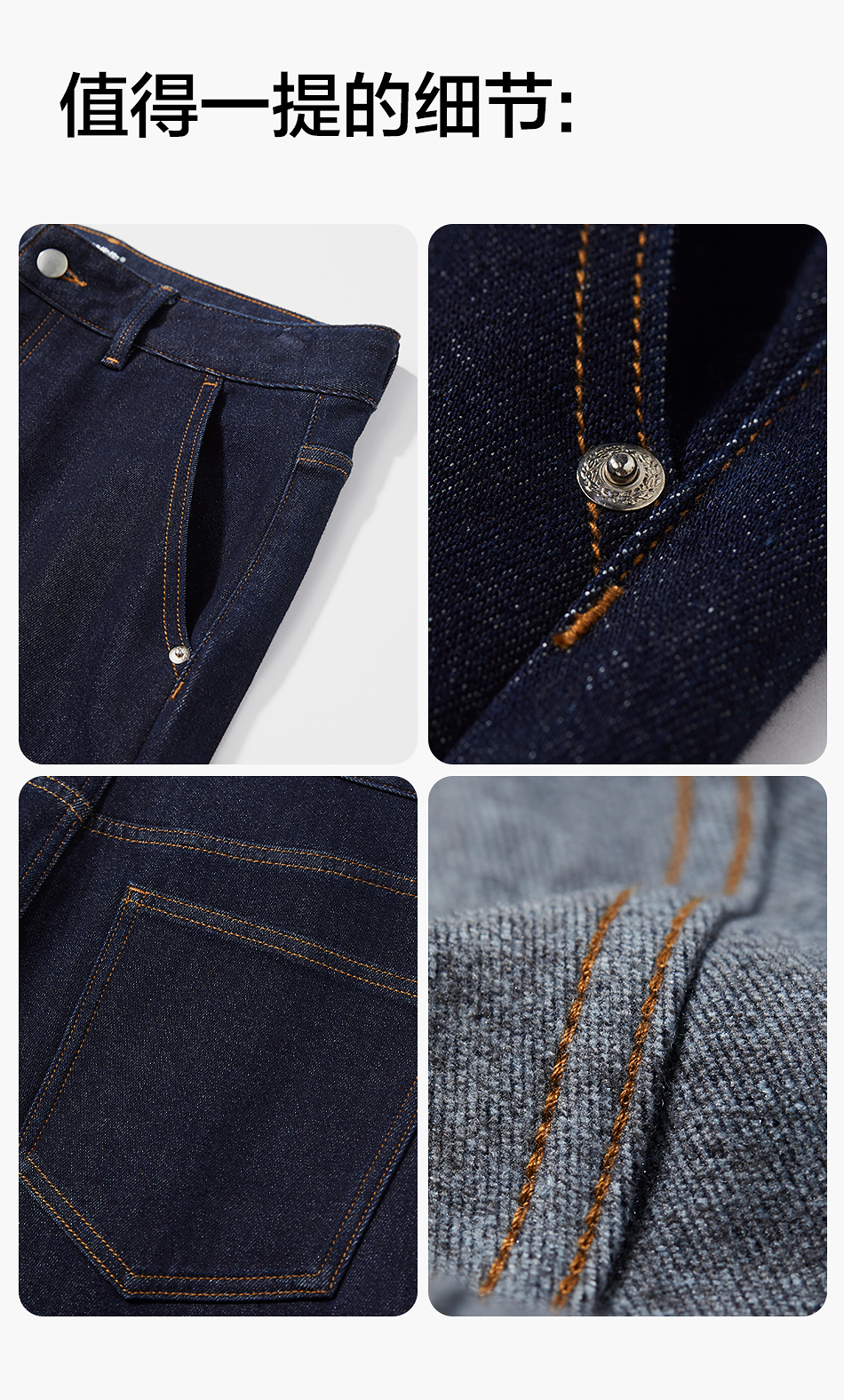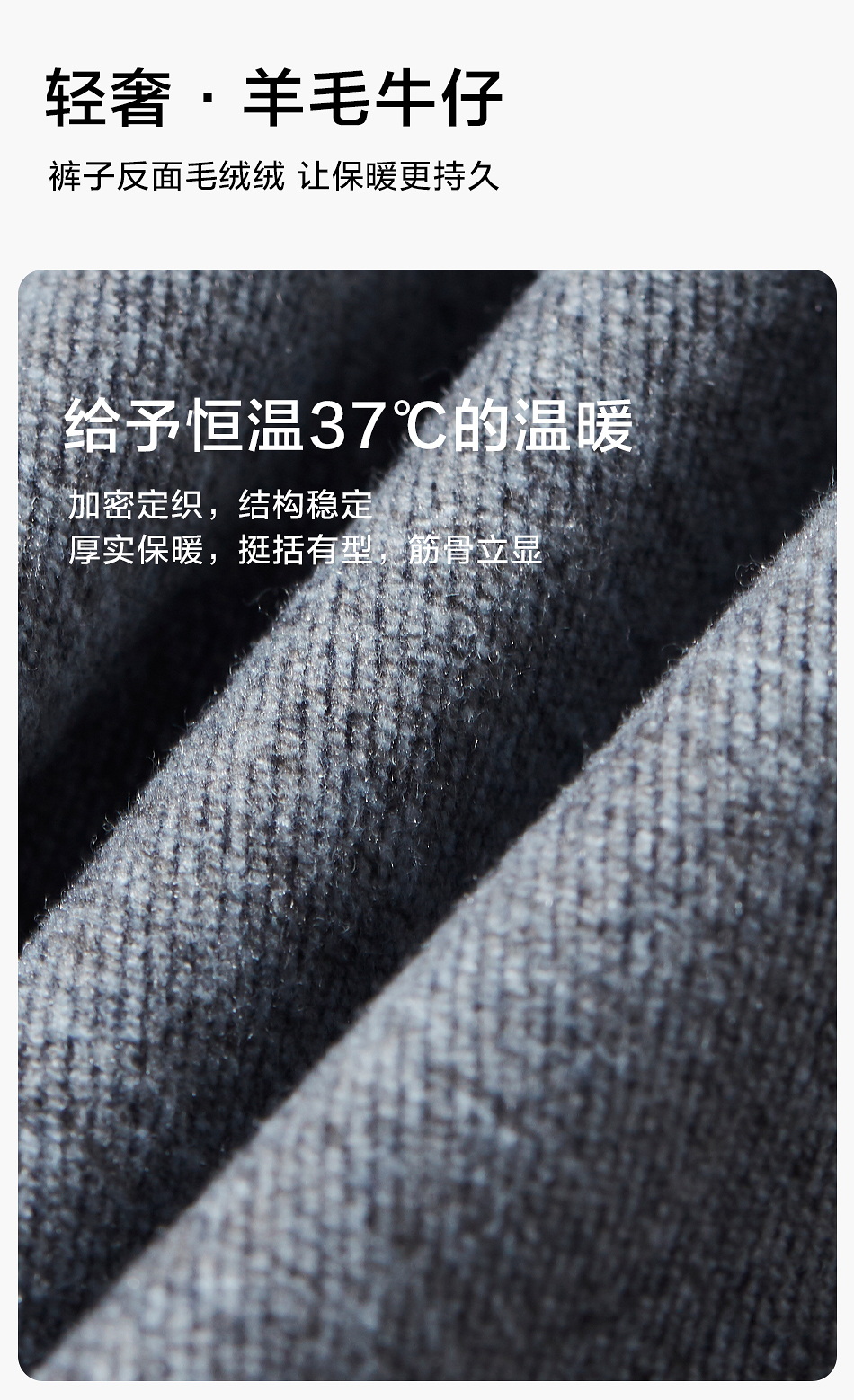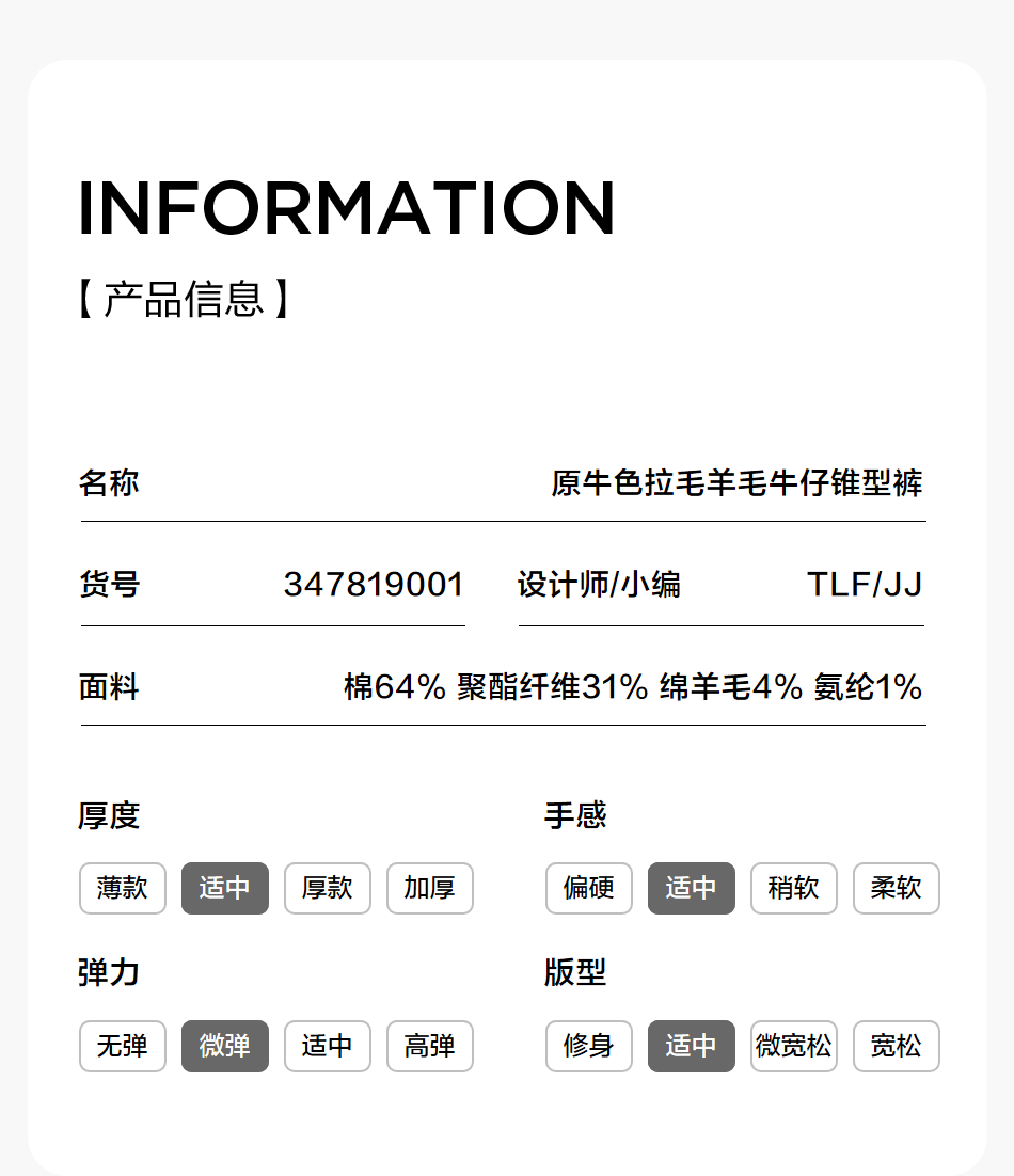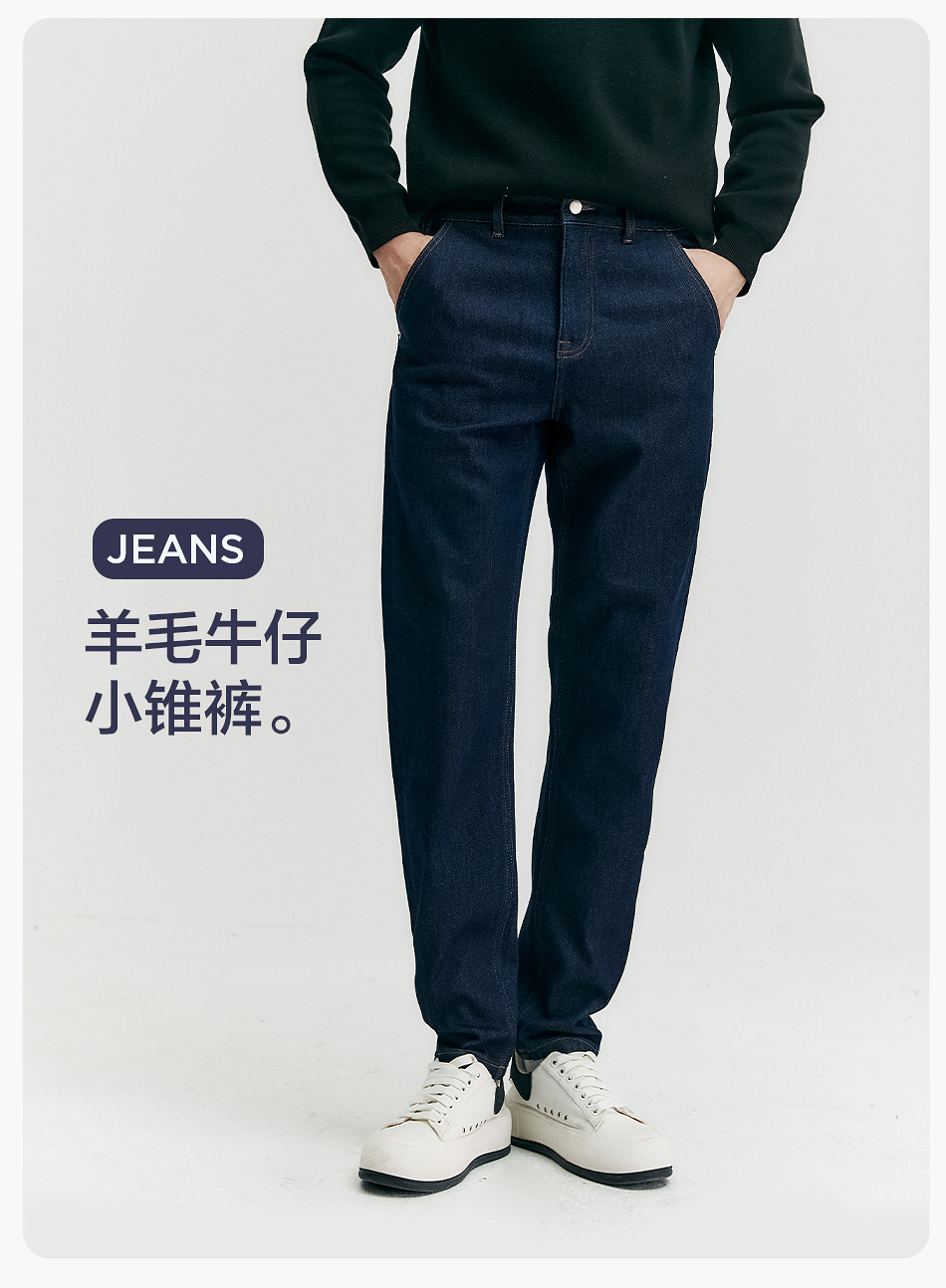 棉仓347819001-原牛色拉毛羊毛牛仔锥型裤