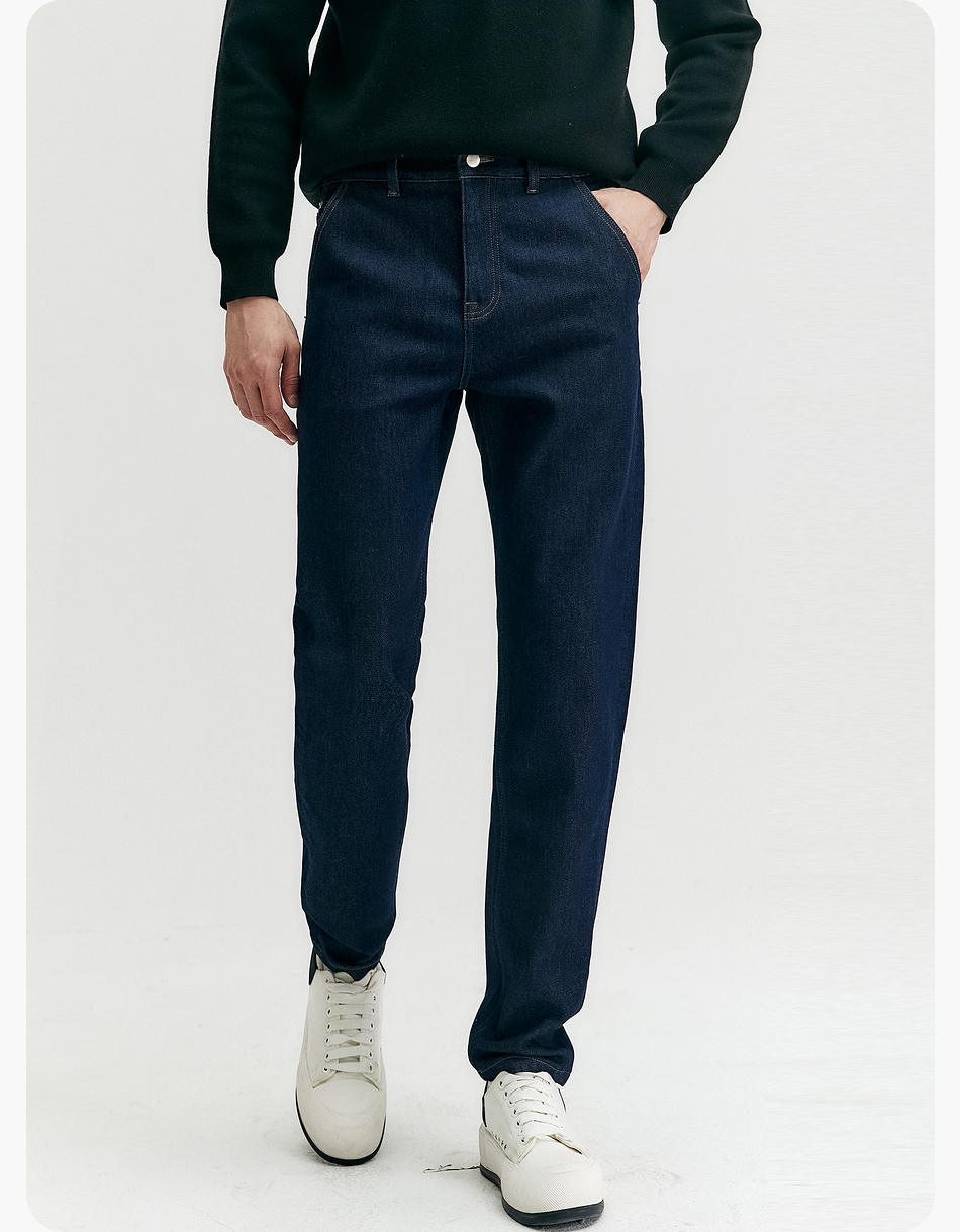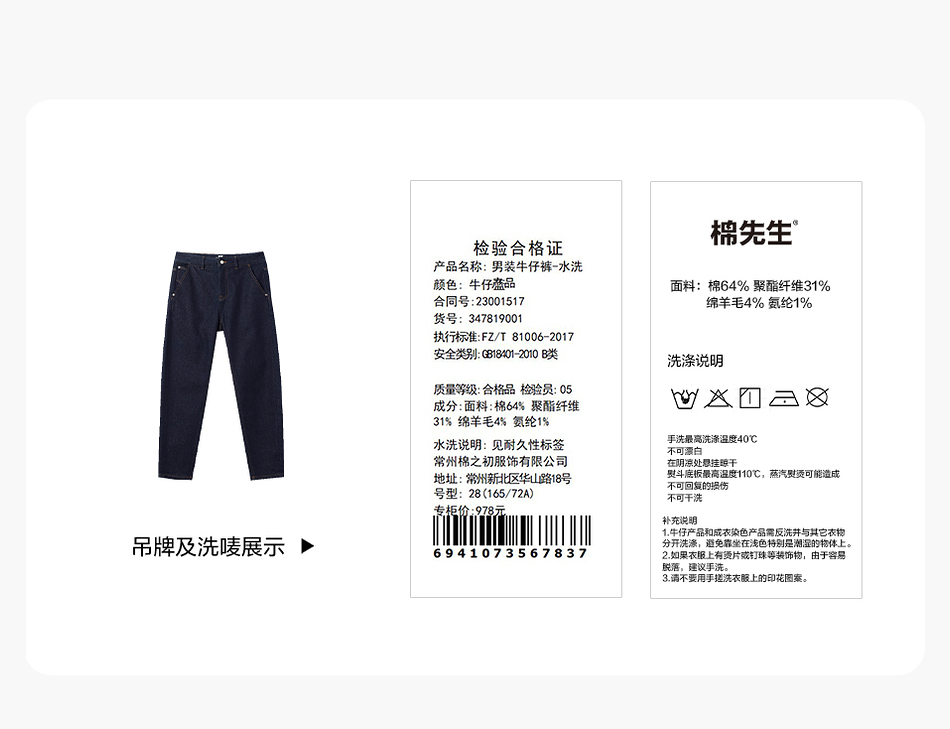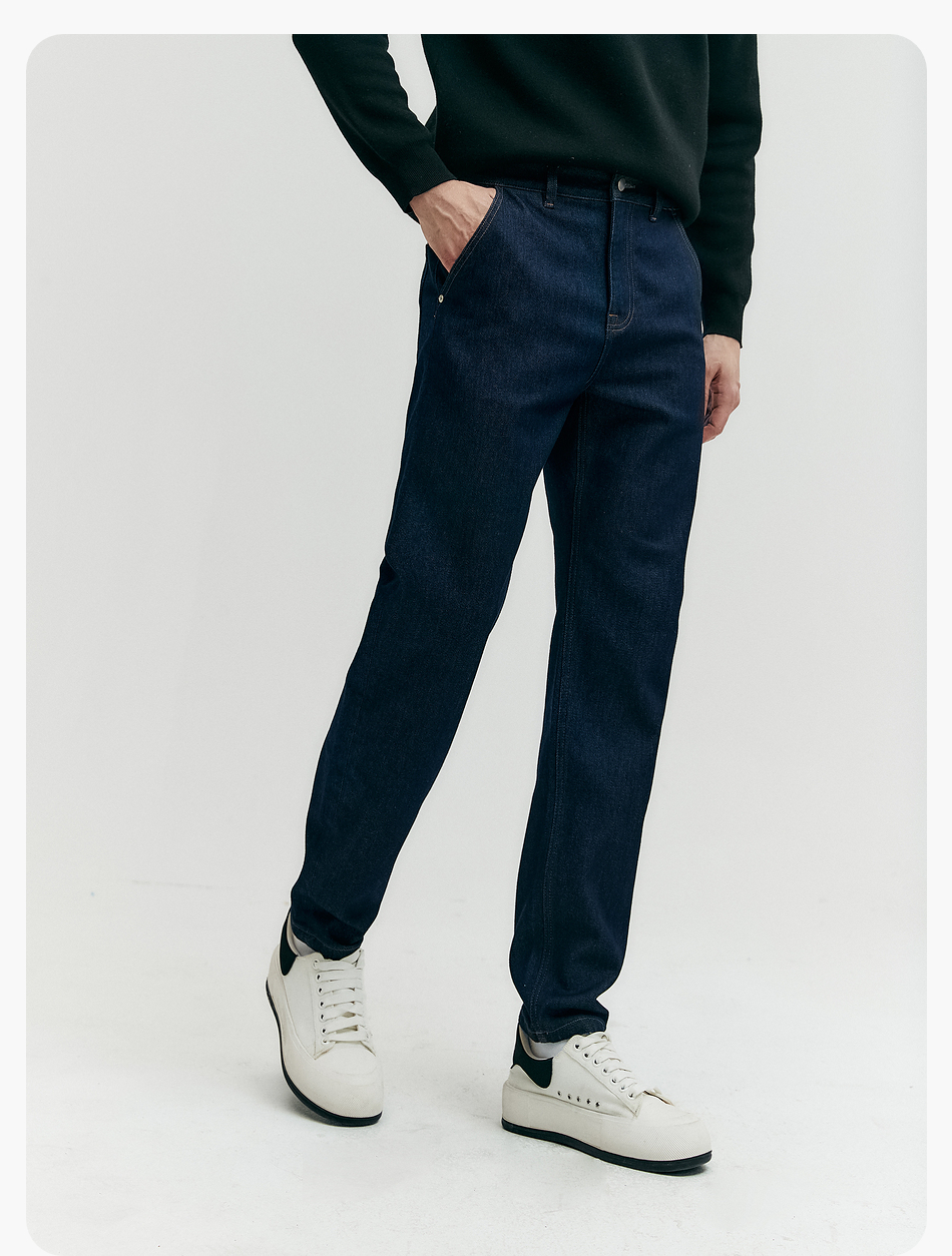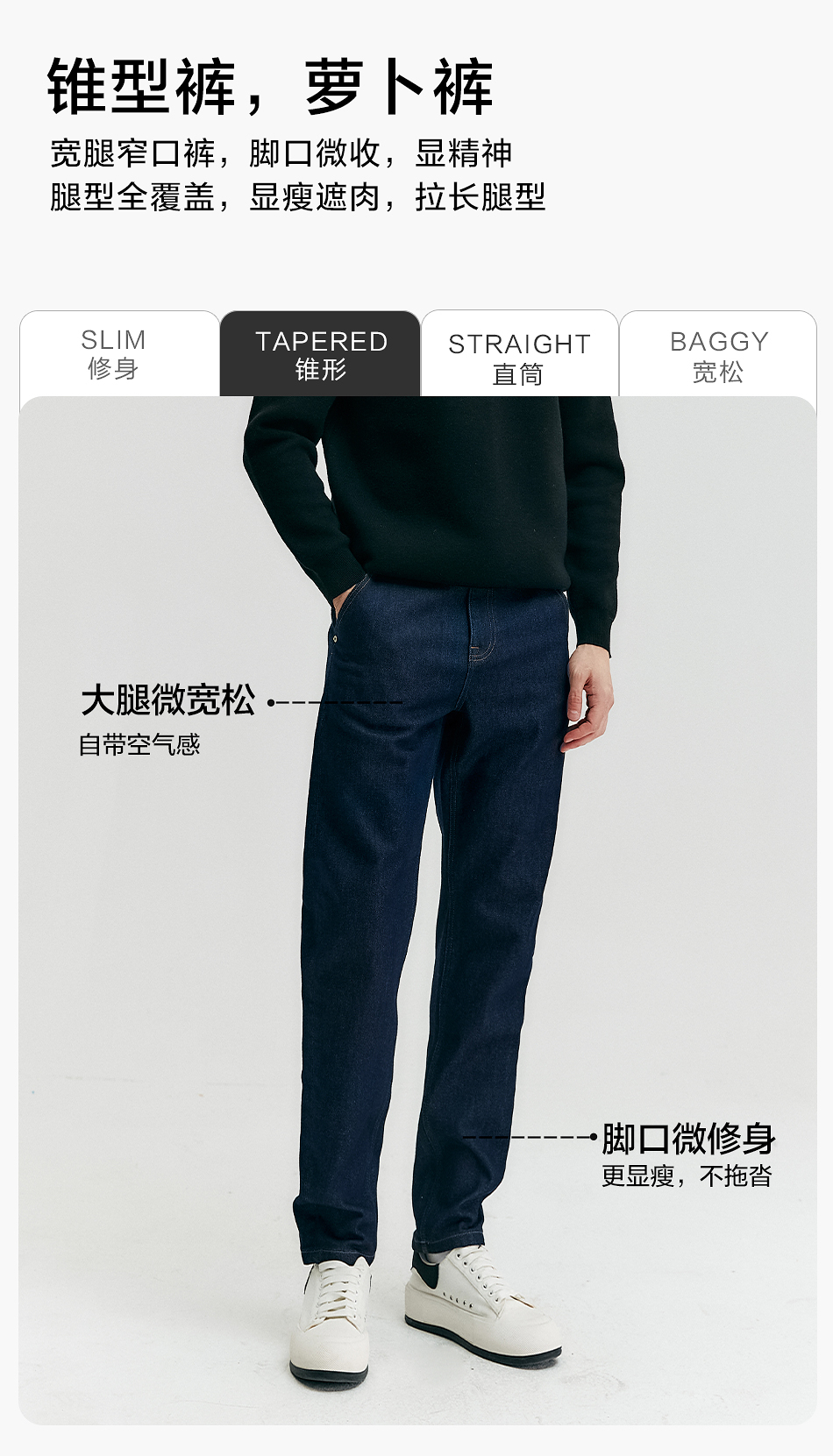 棉仓347819001-原牛色拉毛羊毛牛仔锥型裤