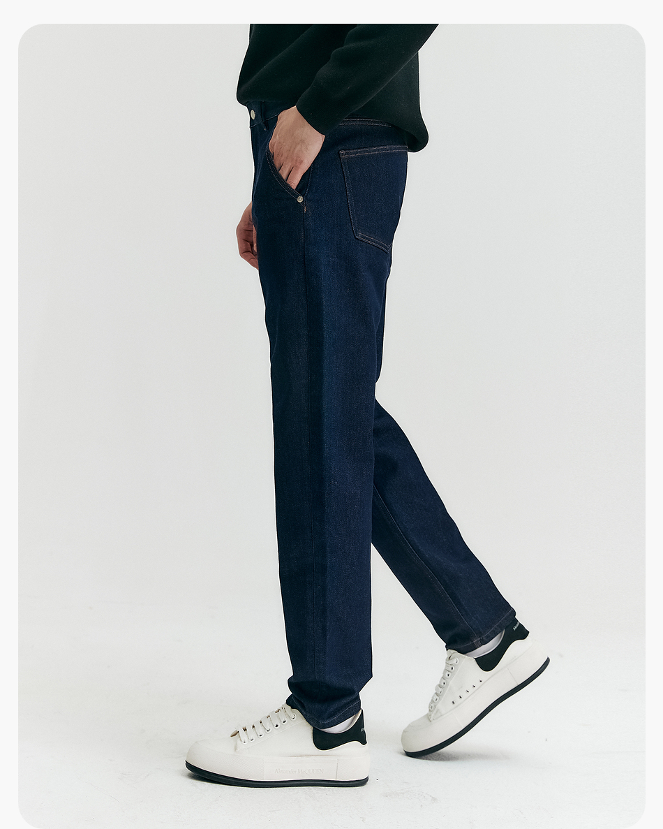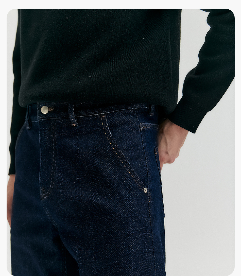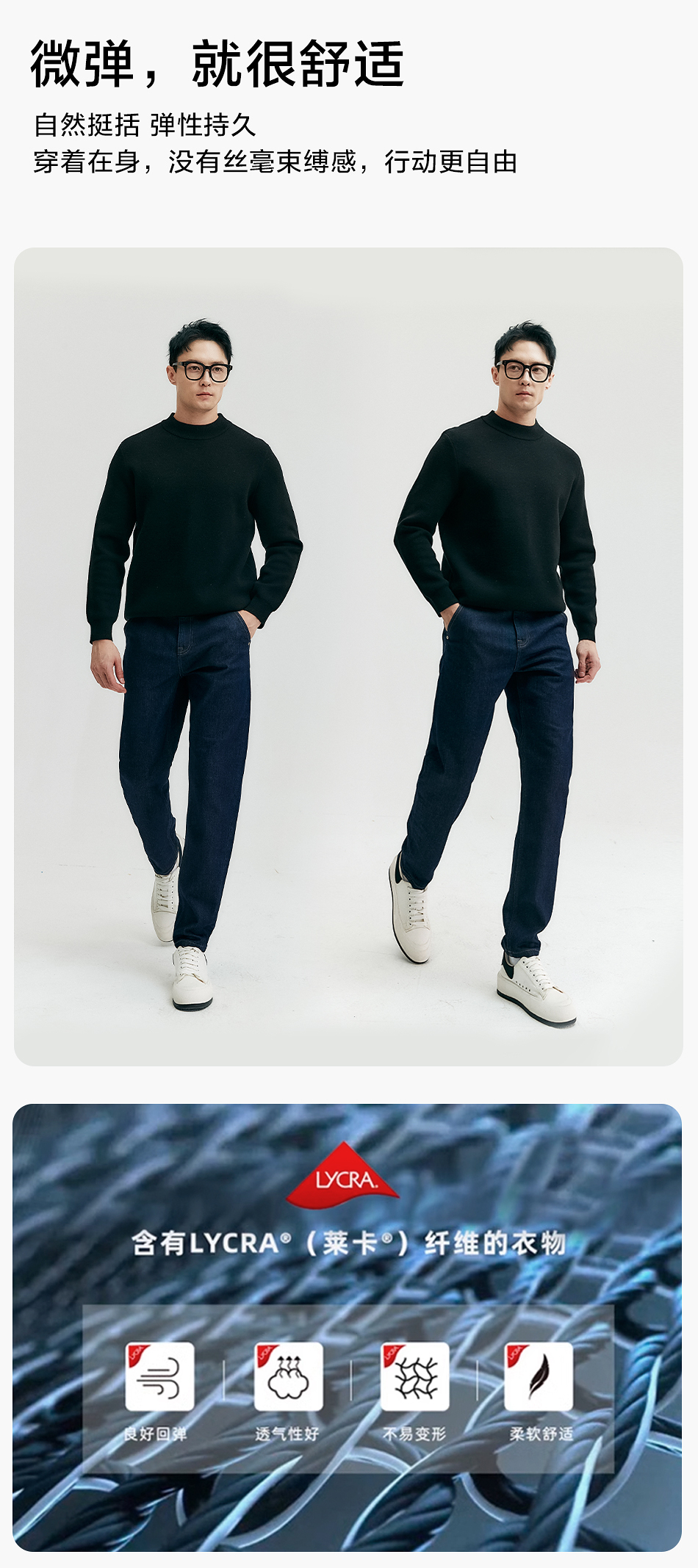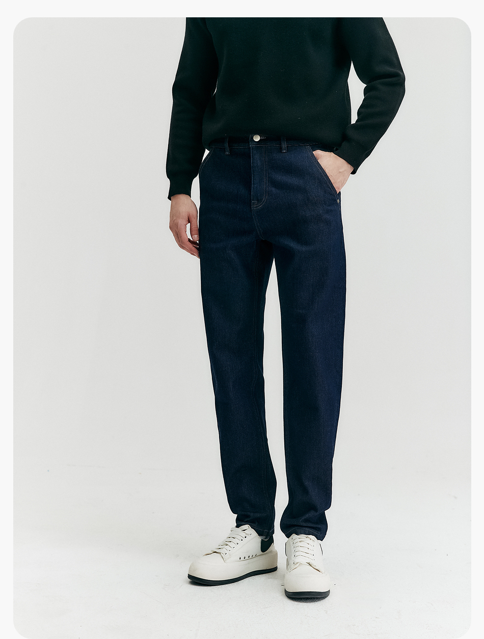 棉仓347819001-原牛色拉毛羊毛牛仔锥型裤