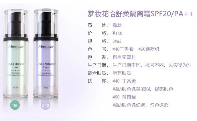 【美妆】 梦妆Mamonde 花怡舒柔隔离霜 妆前乳 防辐射 防晒 遮瑕