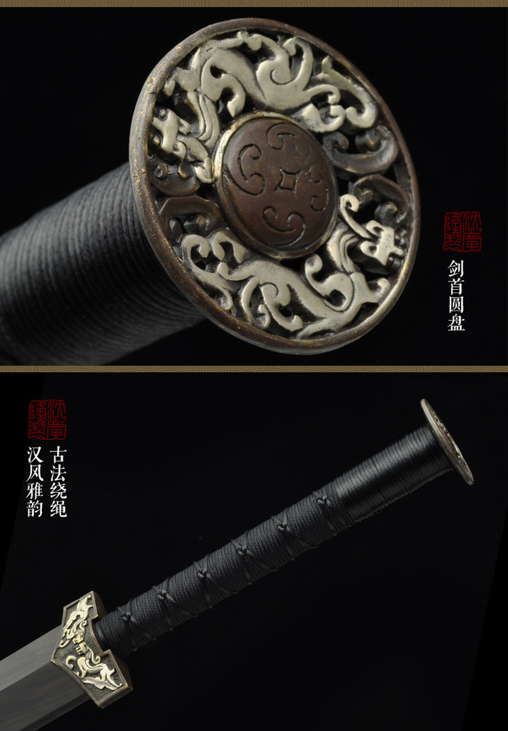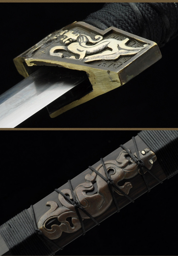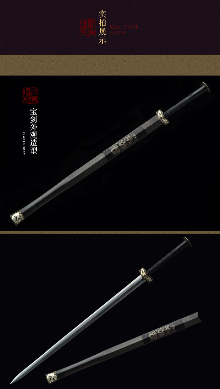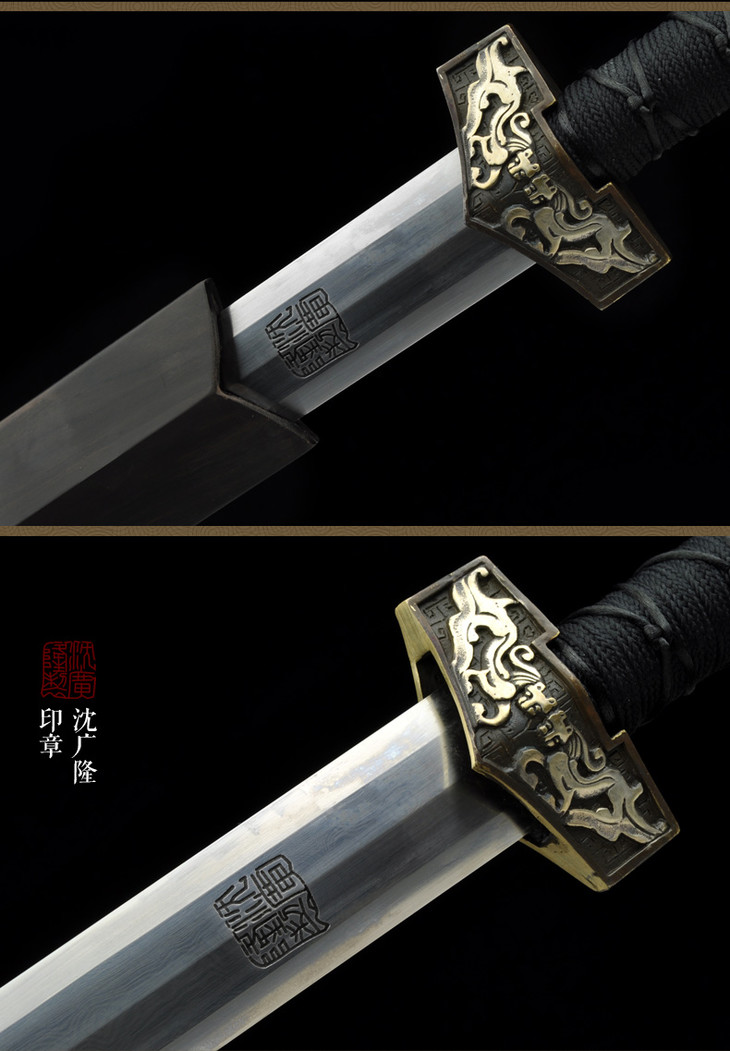 壁虎汉剑 八面汉剑花纹钢黑檀木龙泉沈广隆剑铺宝剑 传统收藏宝剑 工艺品 未开刃