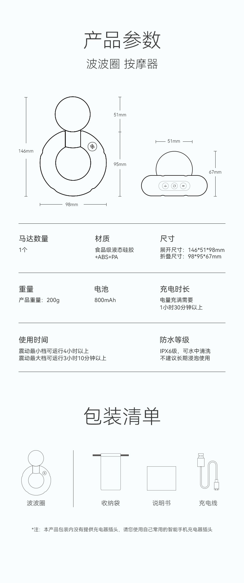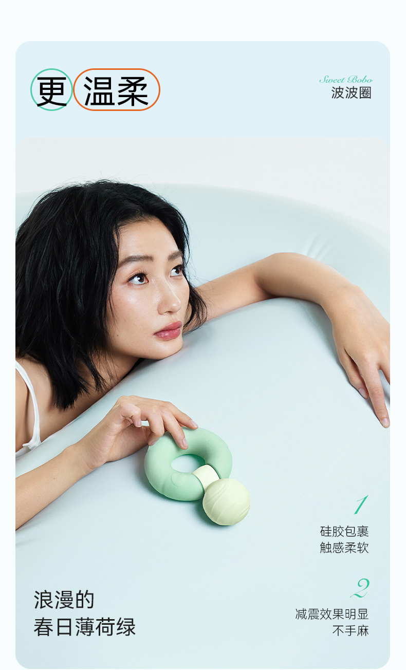 重点是,颜值也非常在线哦!薄荷绿的小圈圈,搭配机身通体包裹食品级液态硅胶,搭配专属收纳袋,无论是居家使用,还是外出随行携带,都毫无压力!
