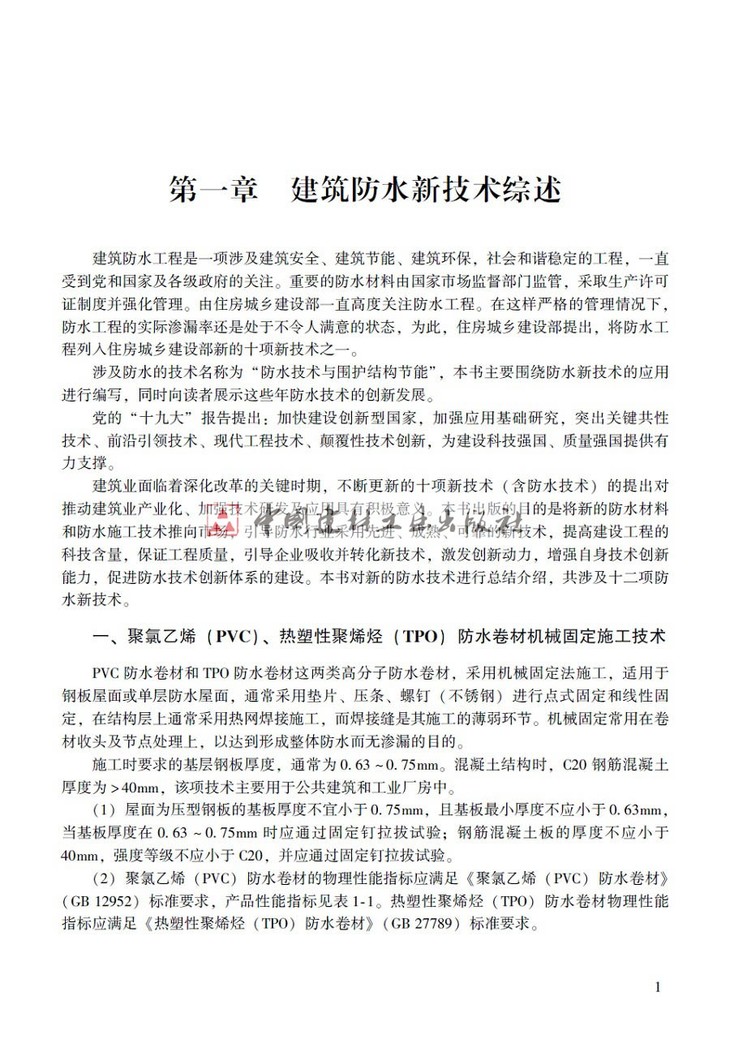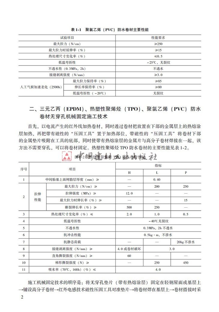 一、 聚氯乙烯 (PVC)、 热塑性聚烯烃 (TPO) 防水卷材机械固定施工技术