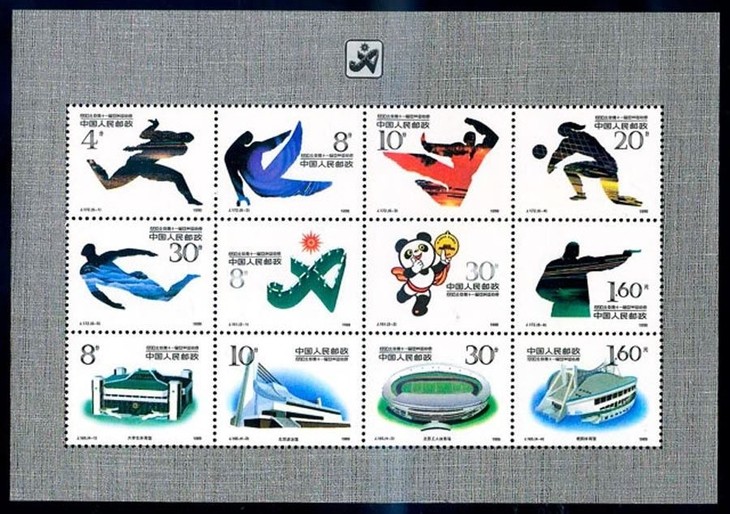 发行日期:1990年9月22日 影写版。P11*11.5 小全张规格:190mm*130mm 设计者:姜伟杰、李庆发 印刷厂:北京邮票厂 特点:这枚小全张将3组亚运邮票设计在一起。 |