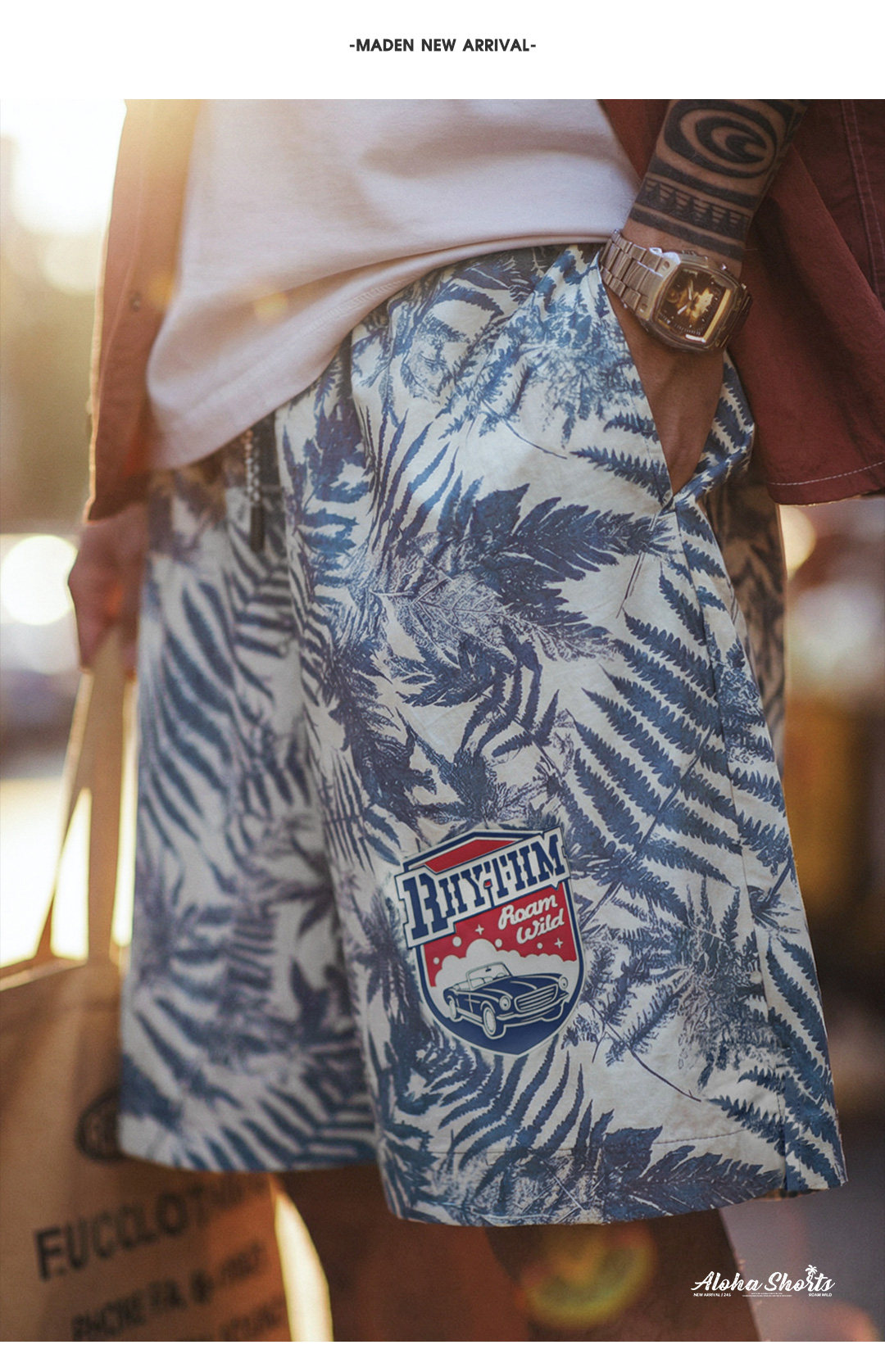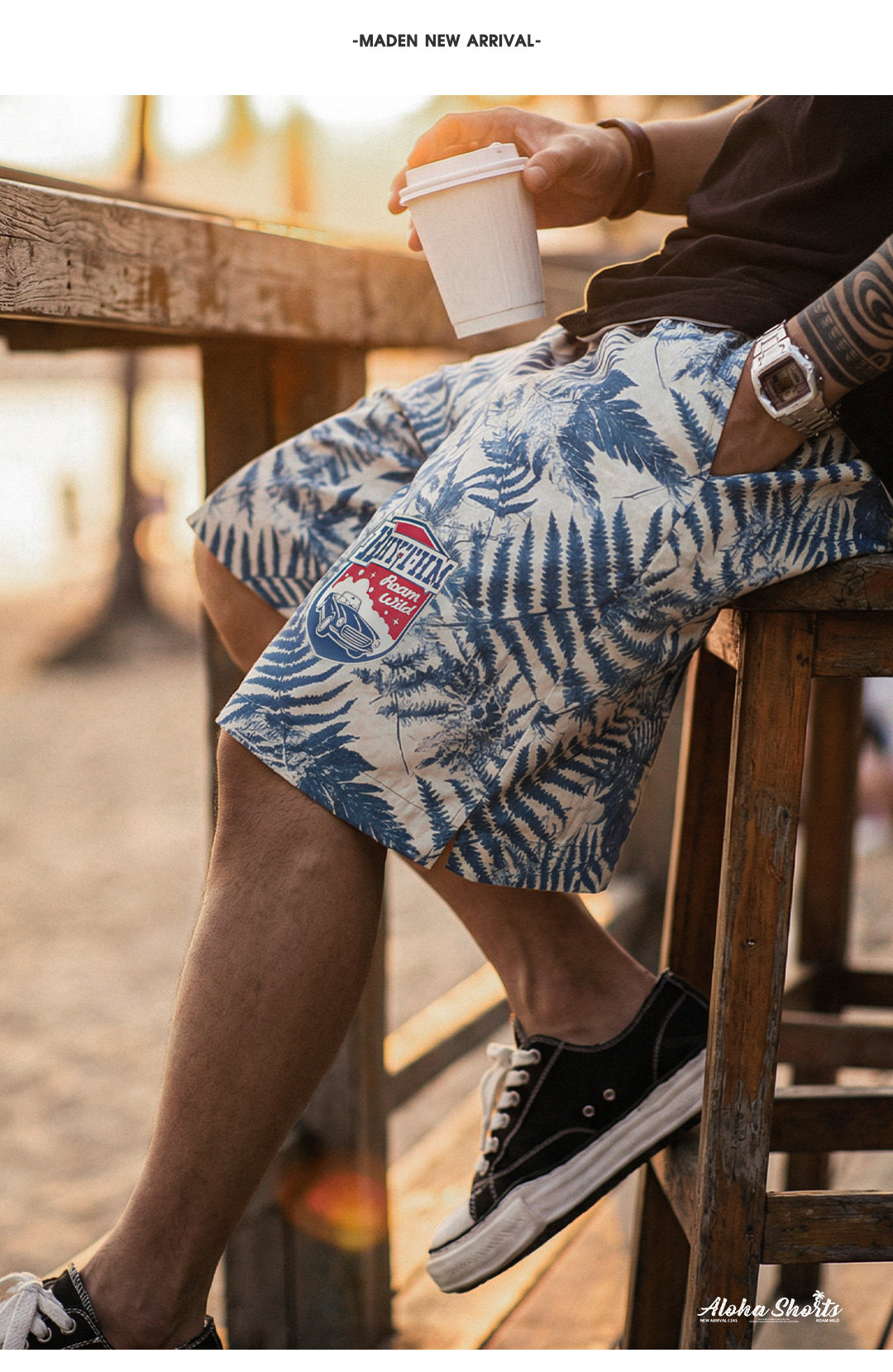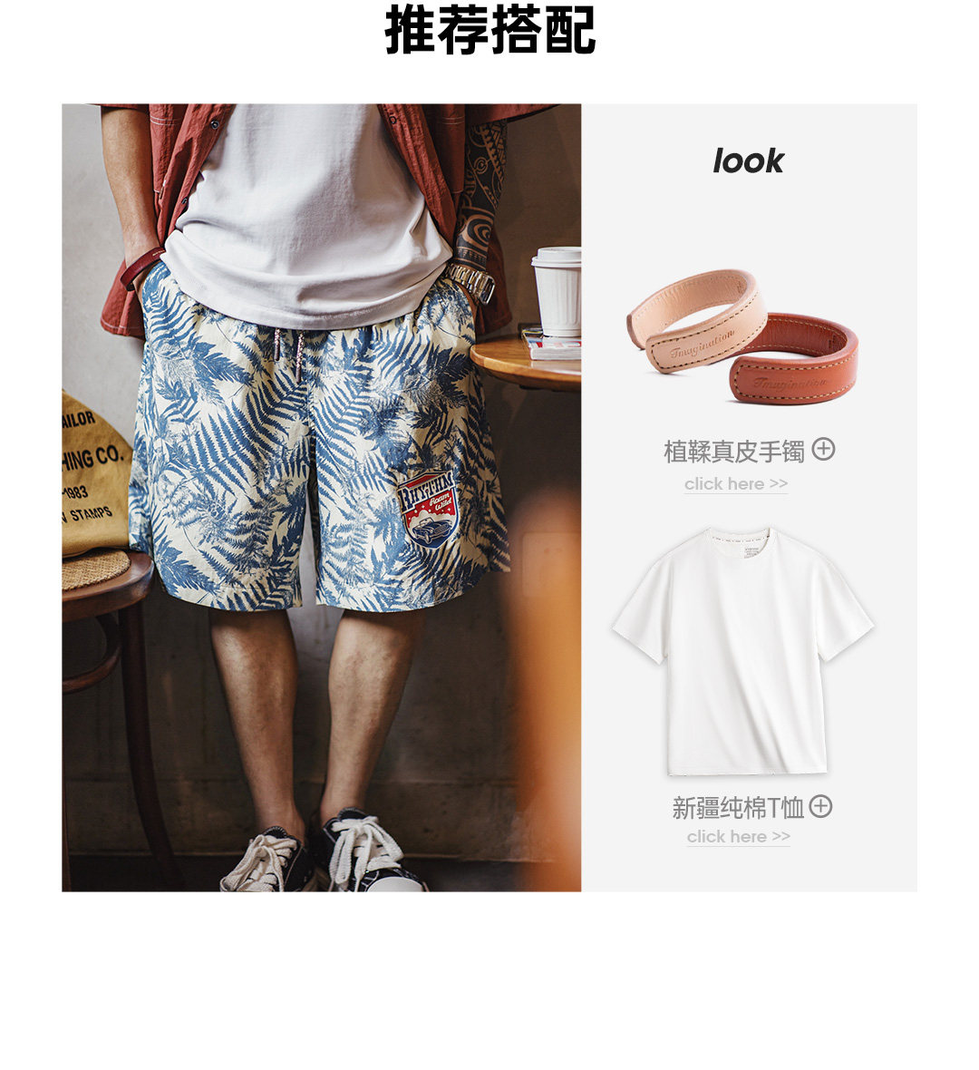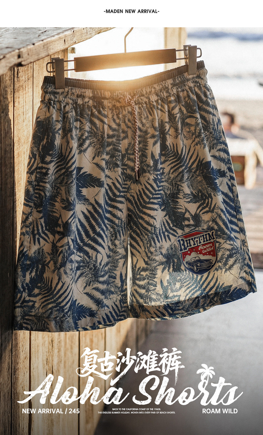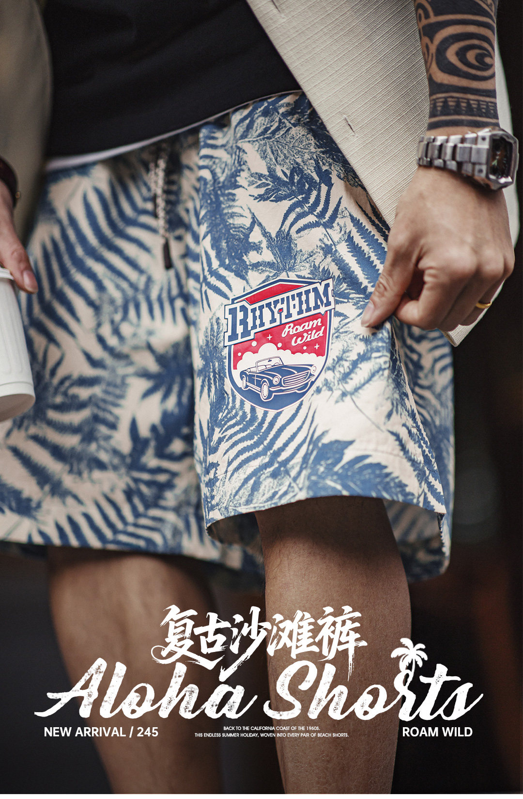 马登工装美式印花沙滩裤海边度假短裤宽松薄款外穿休闲五分裤男夏