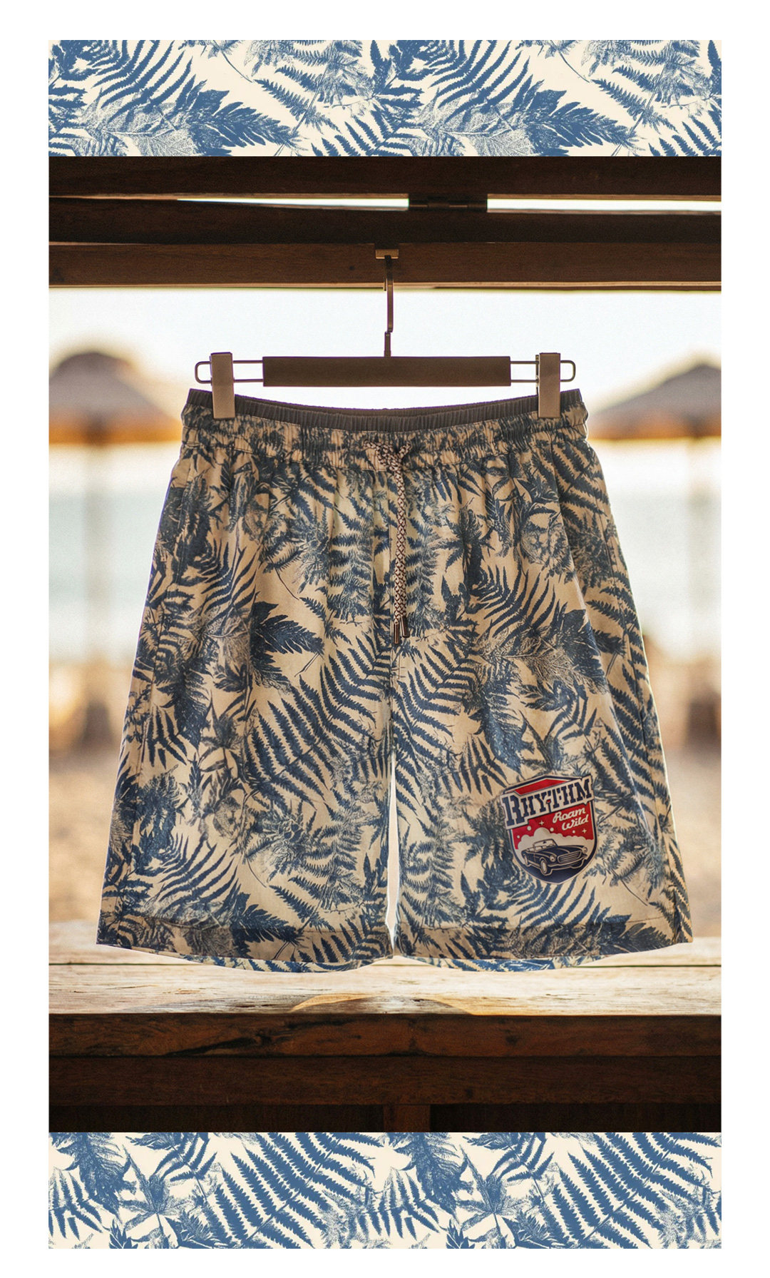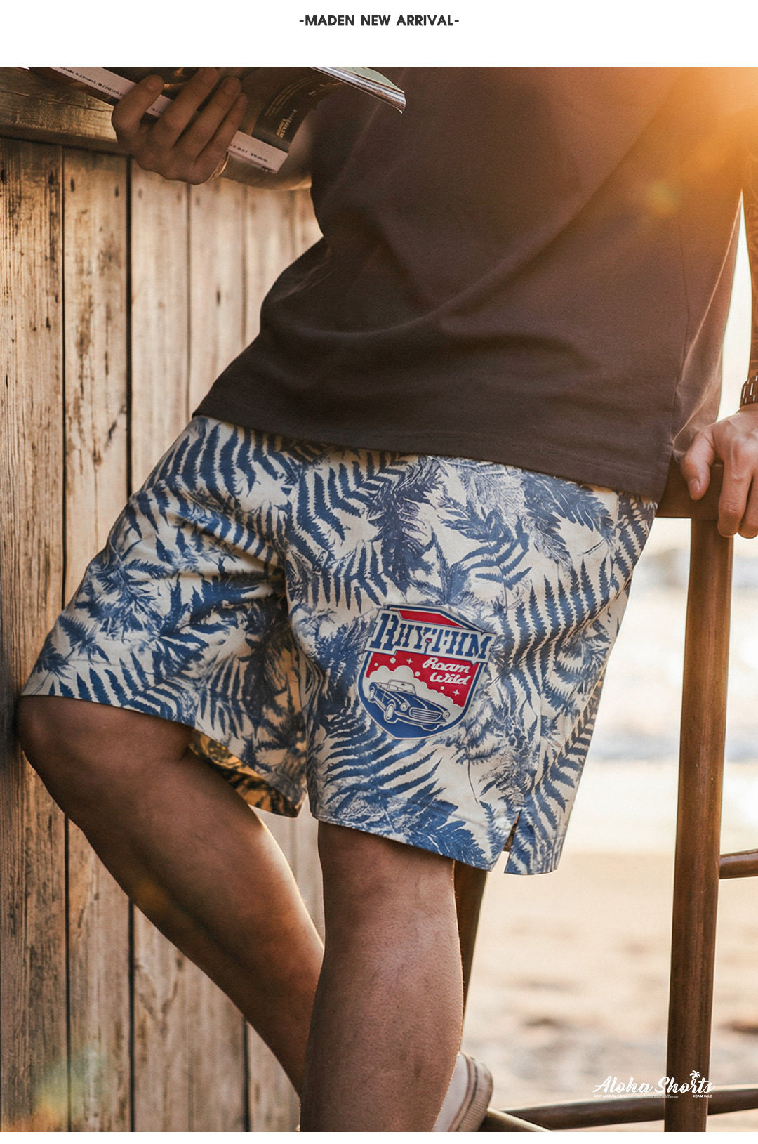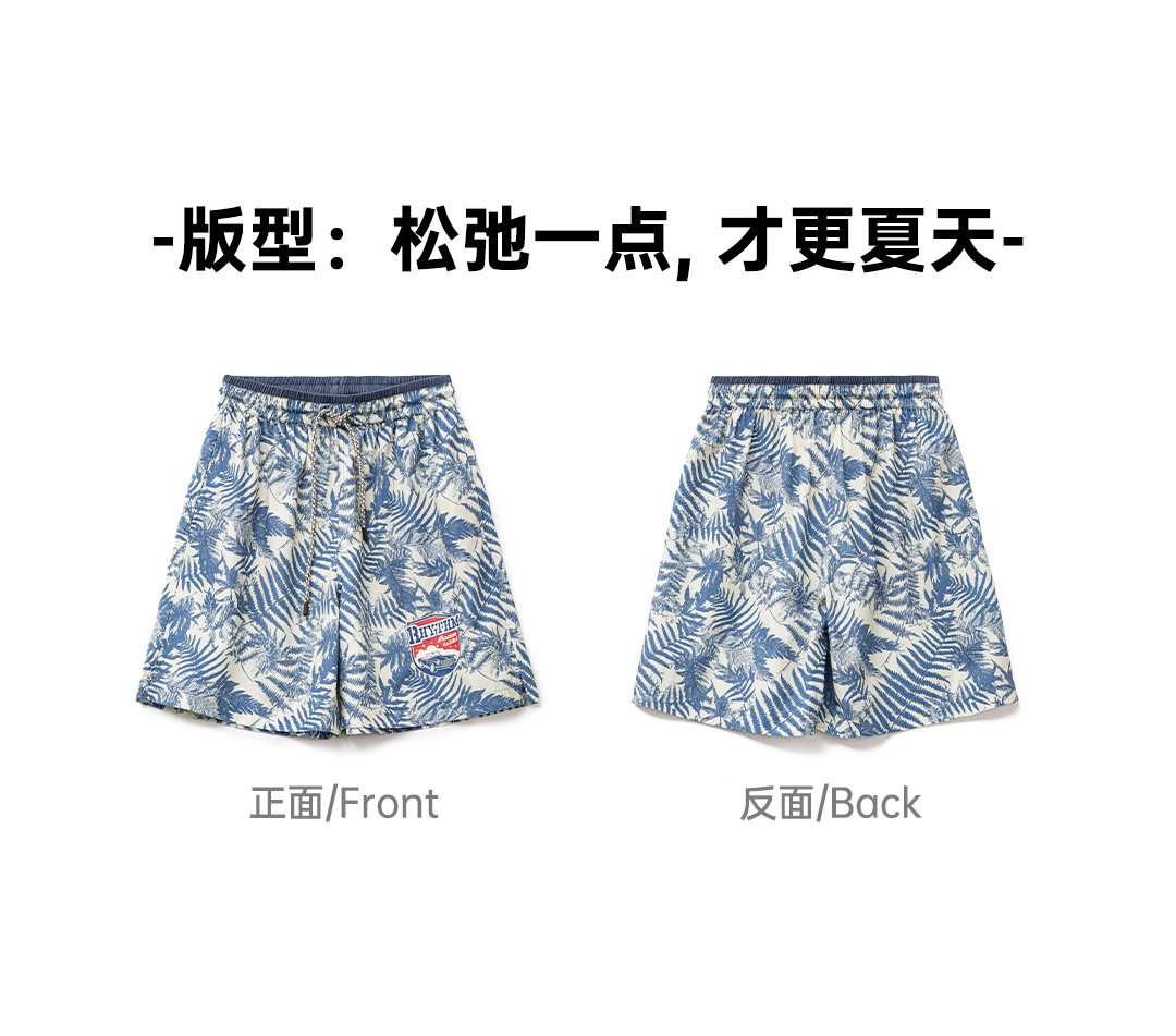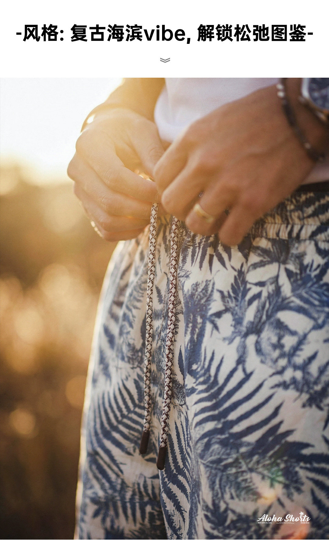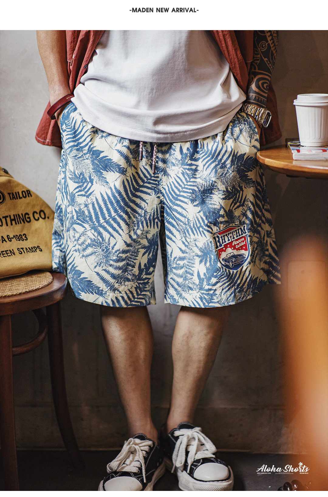 马登工装美式印花沙滩裤海边度假短裤宽松薄款外穿休闲五分裤男夏