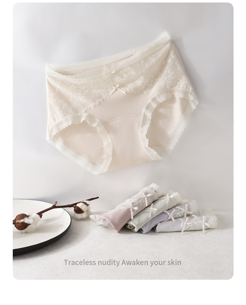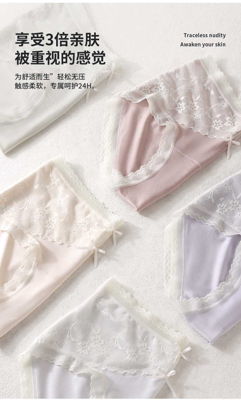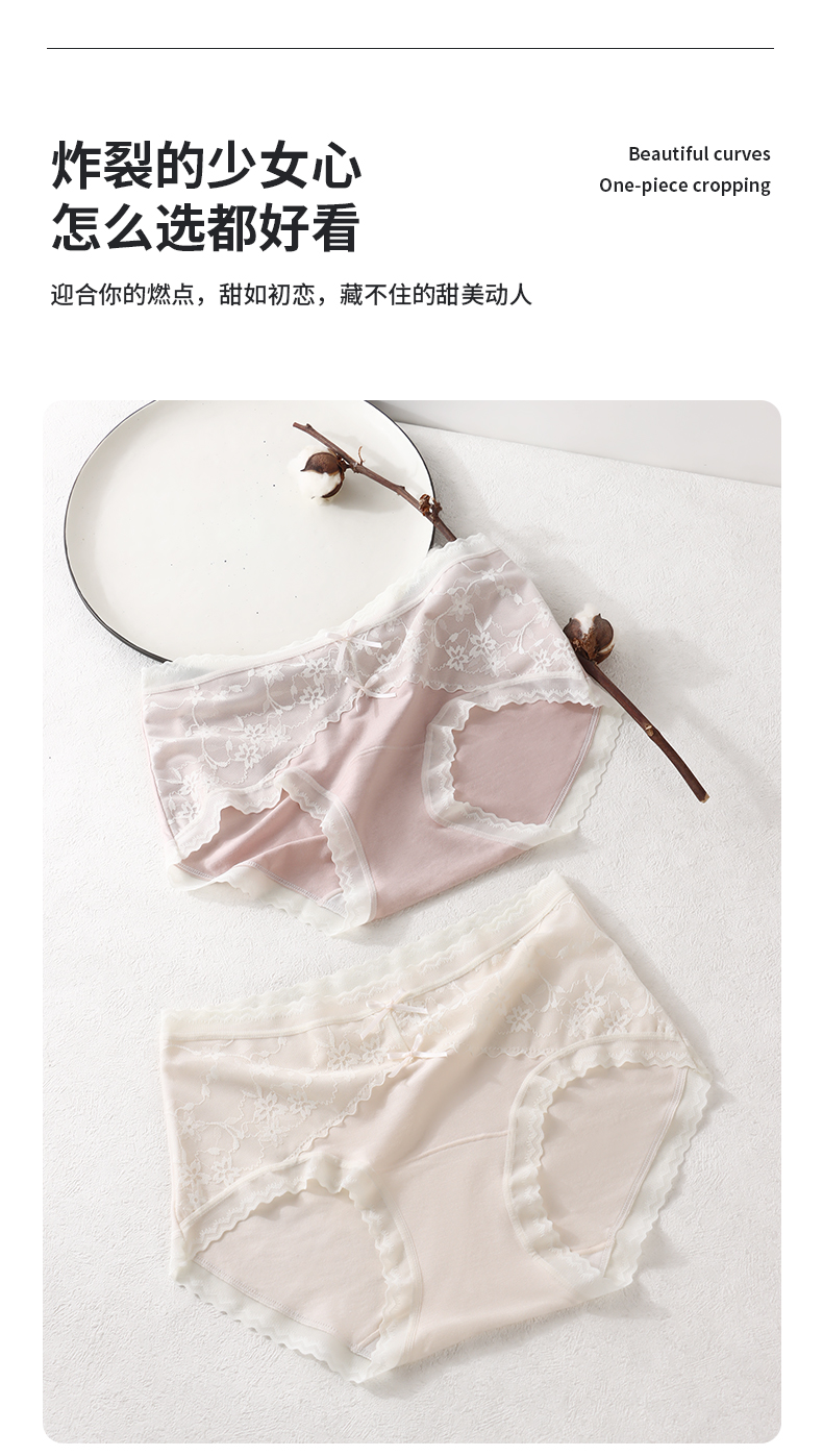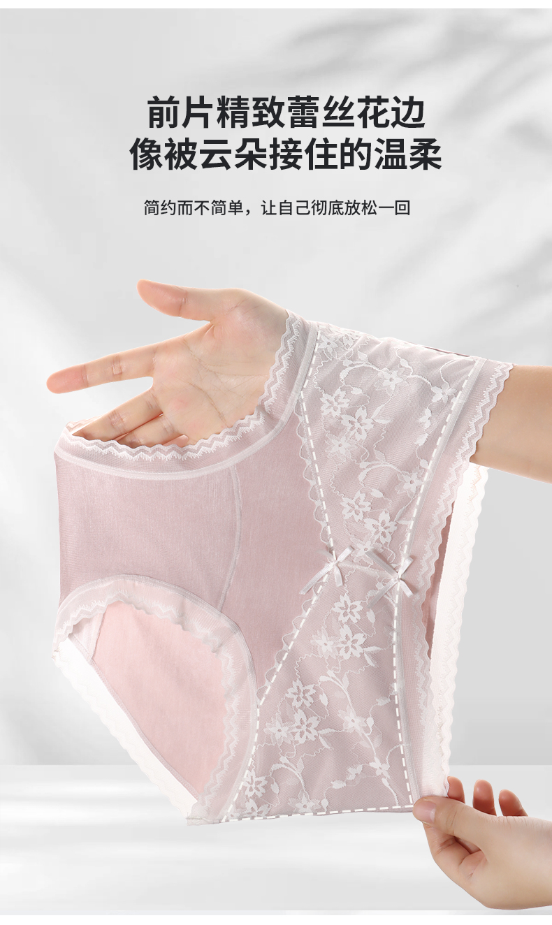 「AILISCOCO长绒棉蕾丝内裤」新疆长绒棉亲肤 加长底档防潮不摩擦 前片蕾丝美观别致