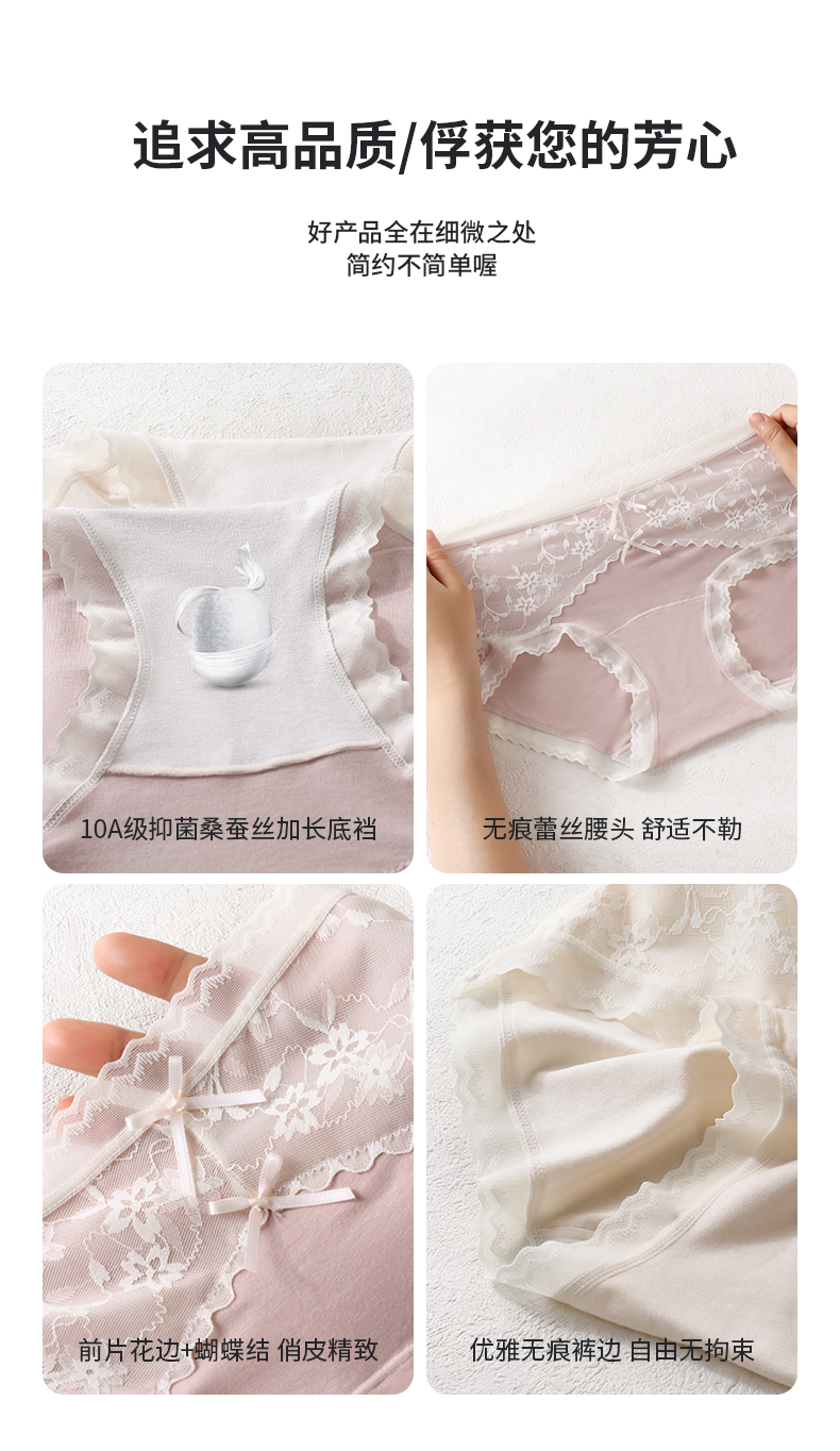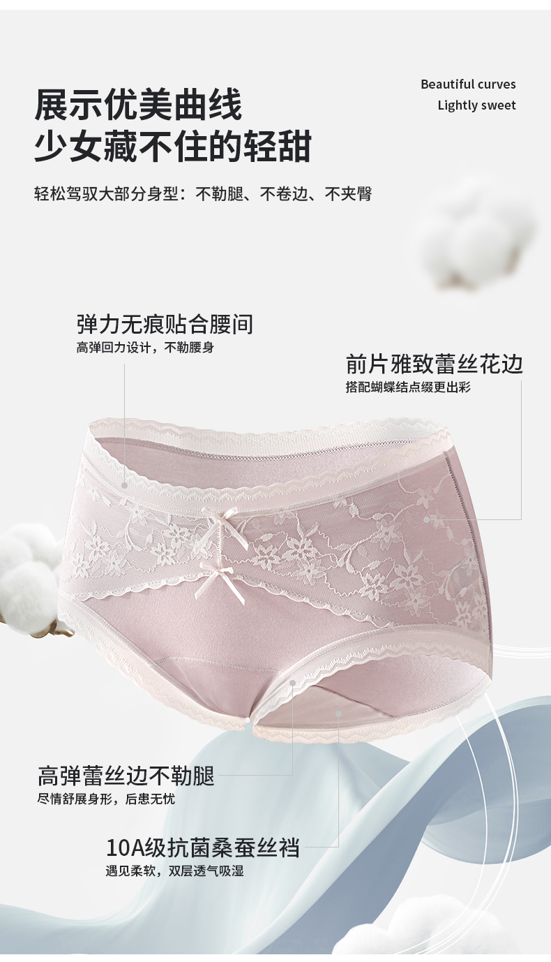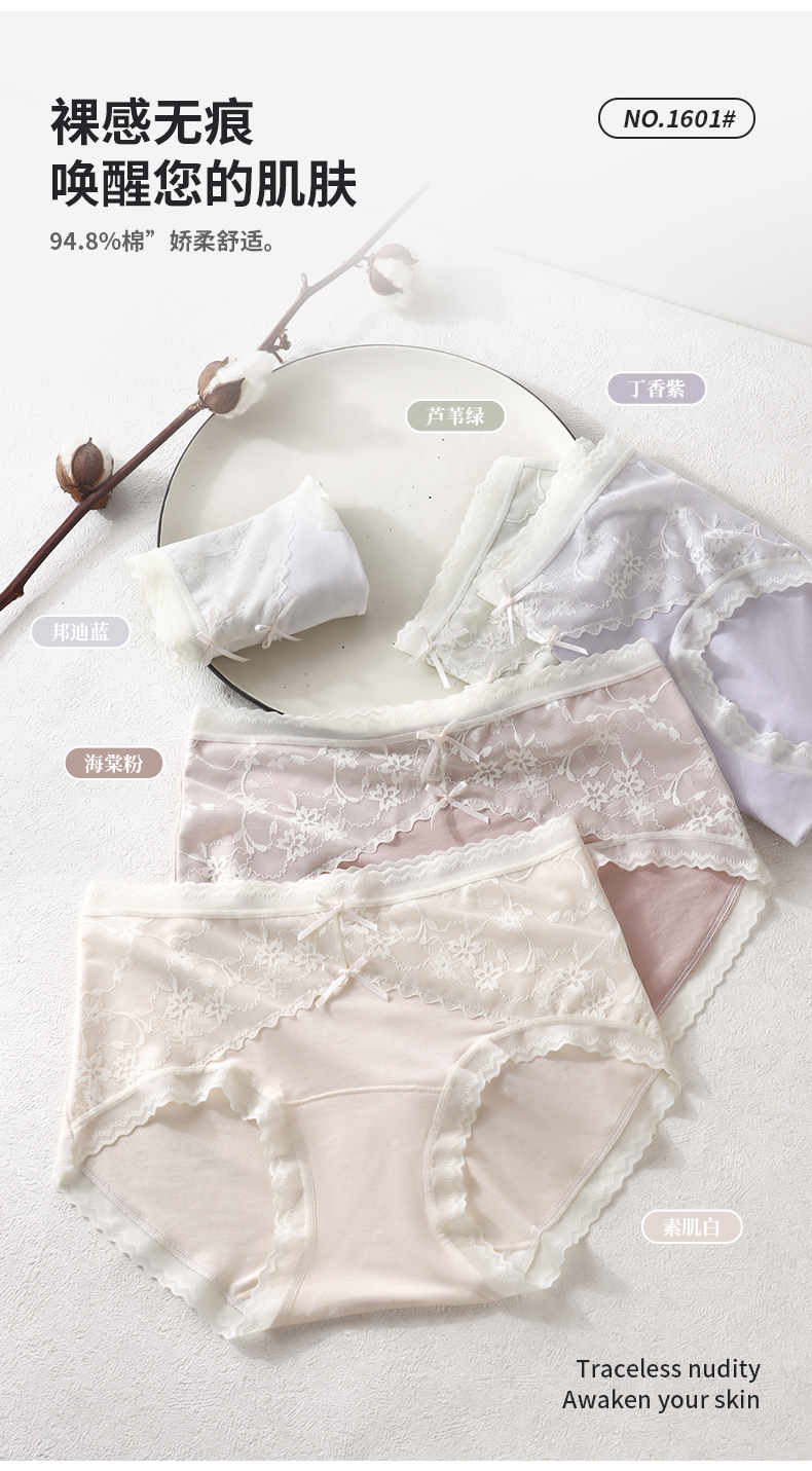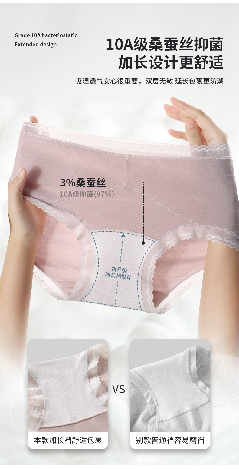 「AILISCOCO长绒棉蕾丝内裤」新疆长绒棉亲肤 加长底档防潮不摩擦 前片蕾丝美观别致