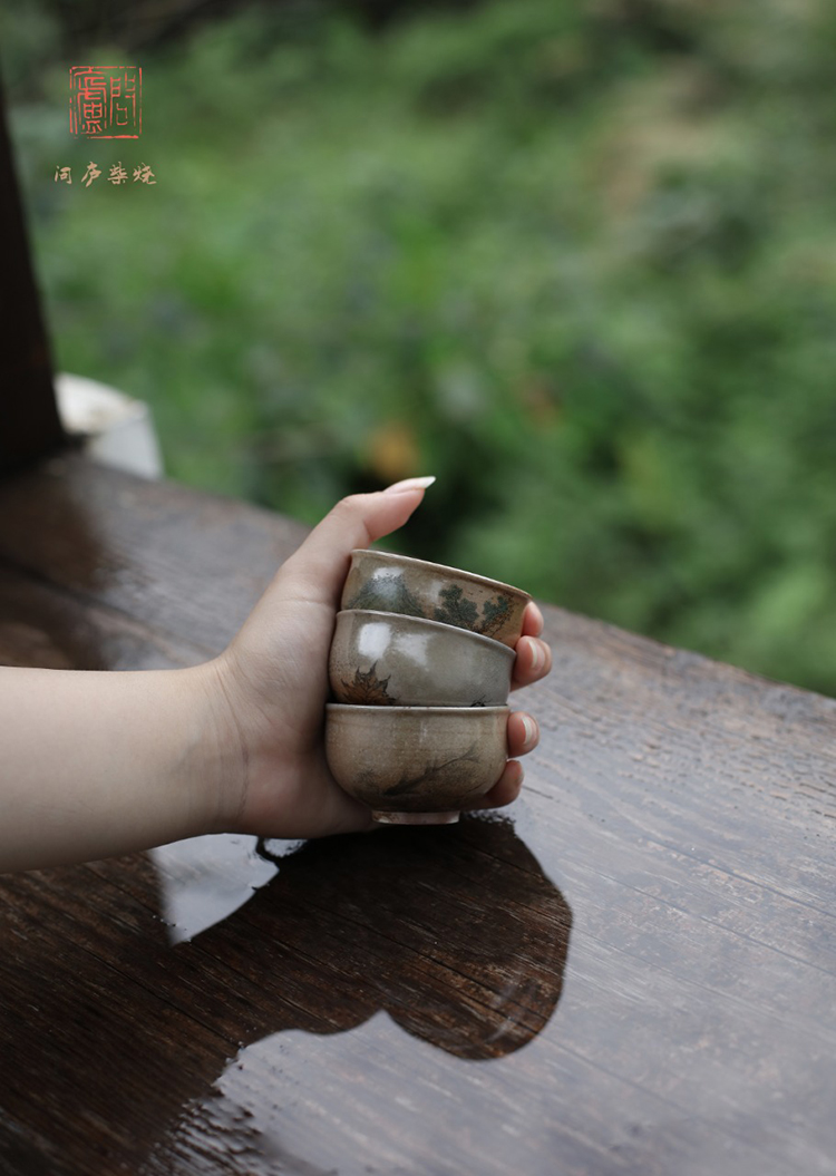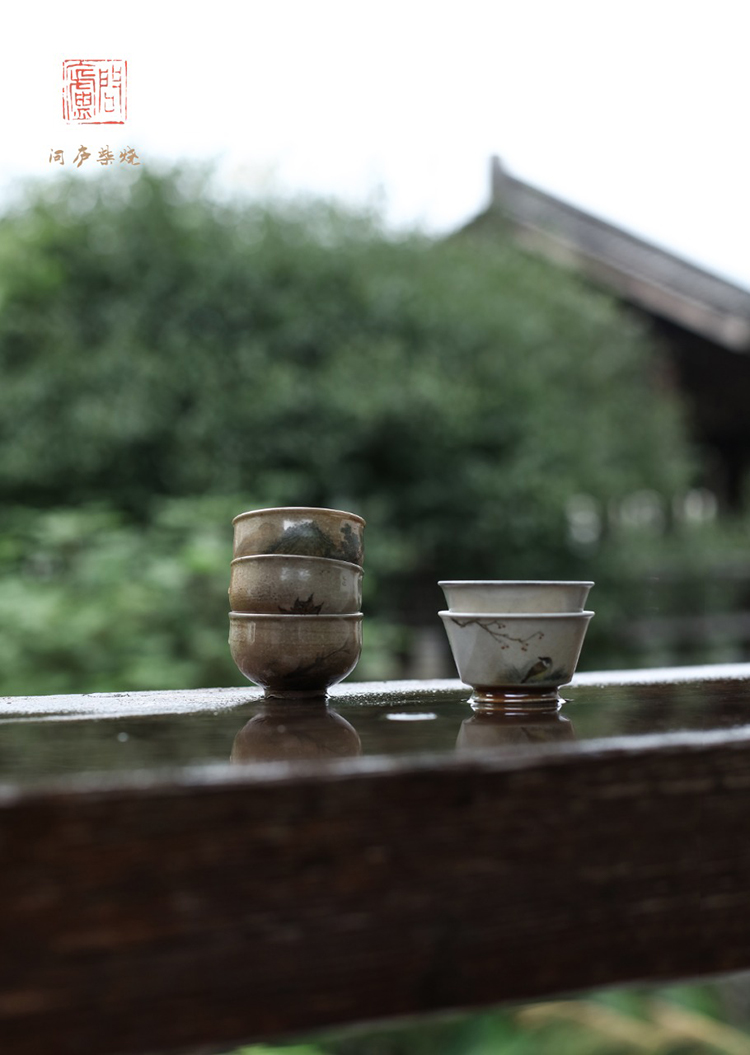 问庐柴烧手绘野鸭 手绘鱼草 茶杯(缺货)