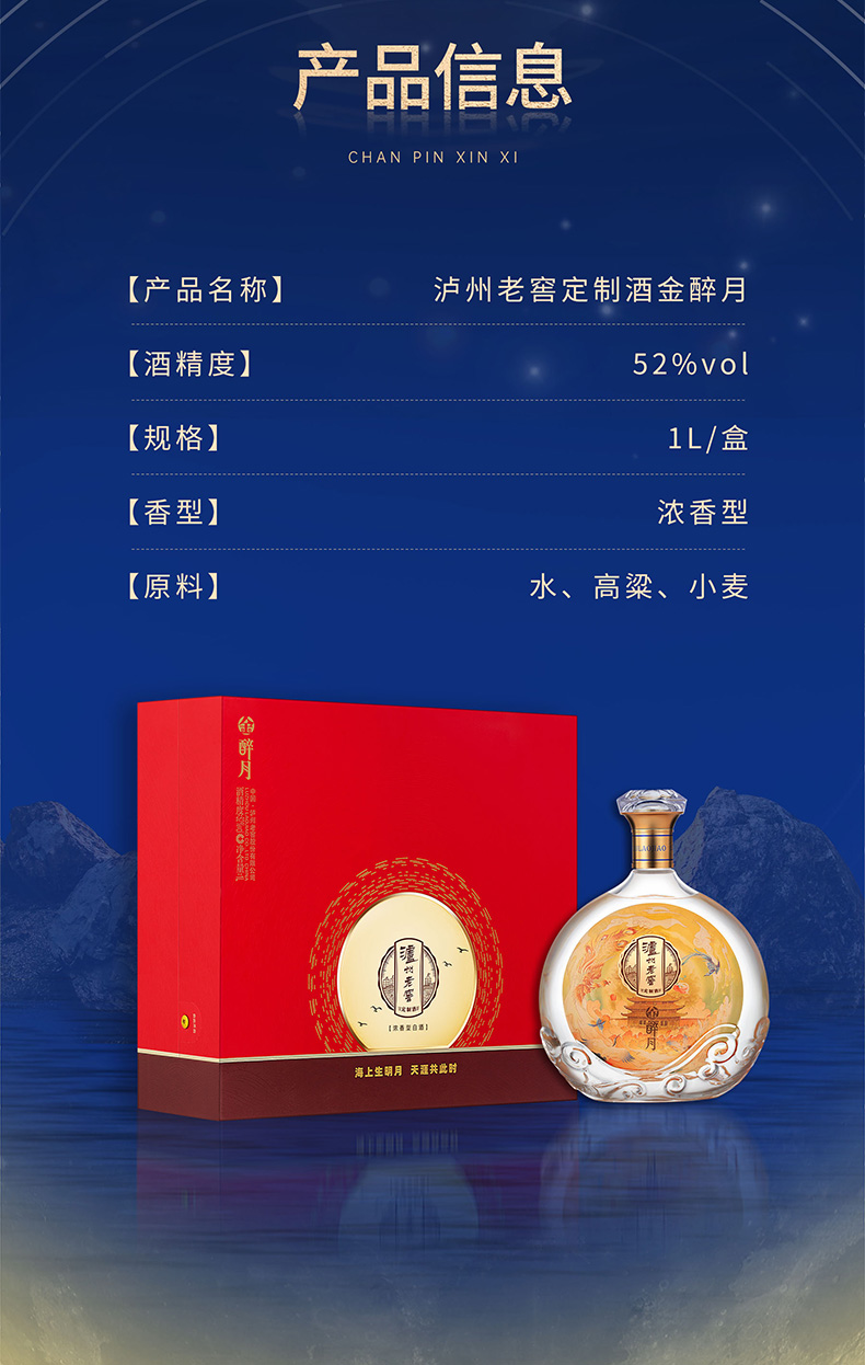 52度 泸州老窖定制酒金醉月礼盒1L 泸州老窖官方旗舰店