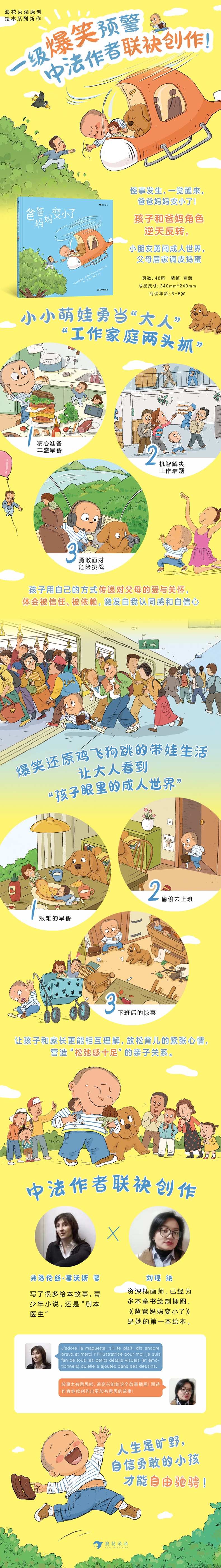 爆笑还原鸡飞狗跳的带娃生活,展现家长们的“盔甲”和“软肋”。意外突降,爸爸妈妈变身迷你小人,吵吵闹闹。饿了,哭了,不停地玩耍、玩耍、玩耍……爸爸妈妈在故事中看到自己,让小朋友看到爸爸妈妈不为人知的“压力”,体会被治愈。