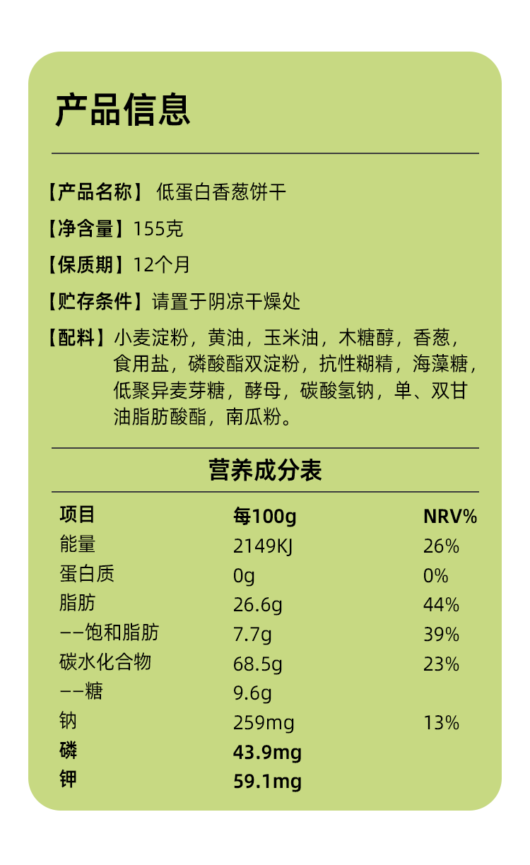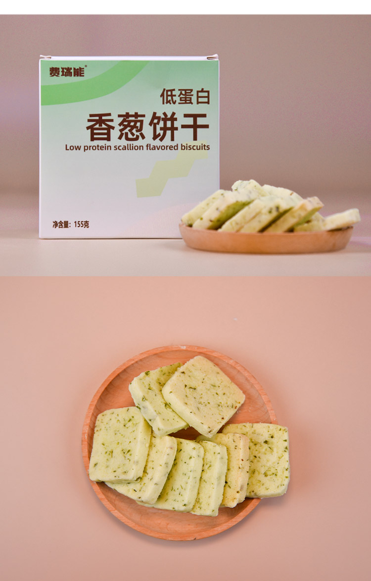 费瑞能低蛋白葱香饼干零食饼干盒装155g