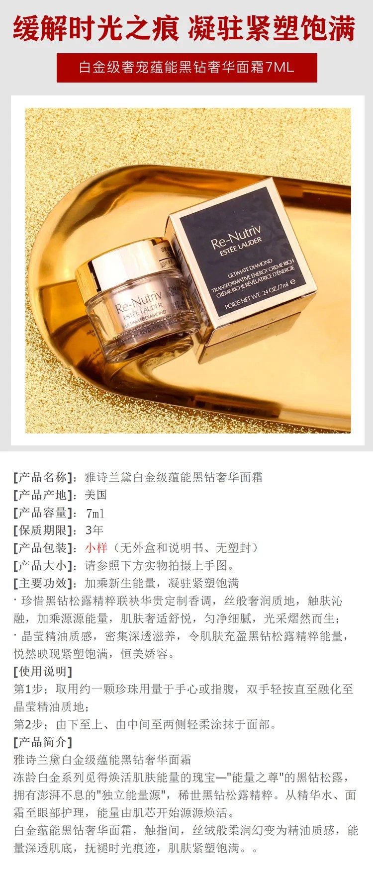 美国 雅诗兰黛 白金级蕴能黑钻奢华滋养面霜7ml 黑钻松露精华紧致塑颜 到26年1-3月