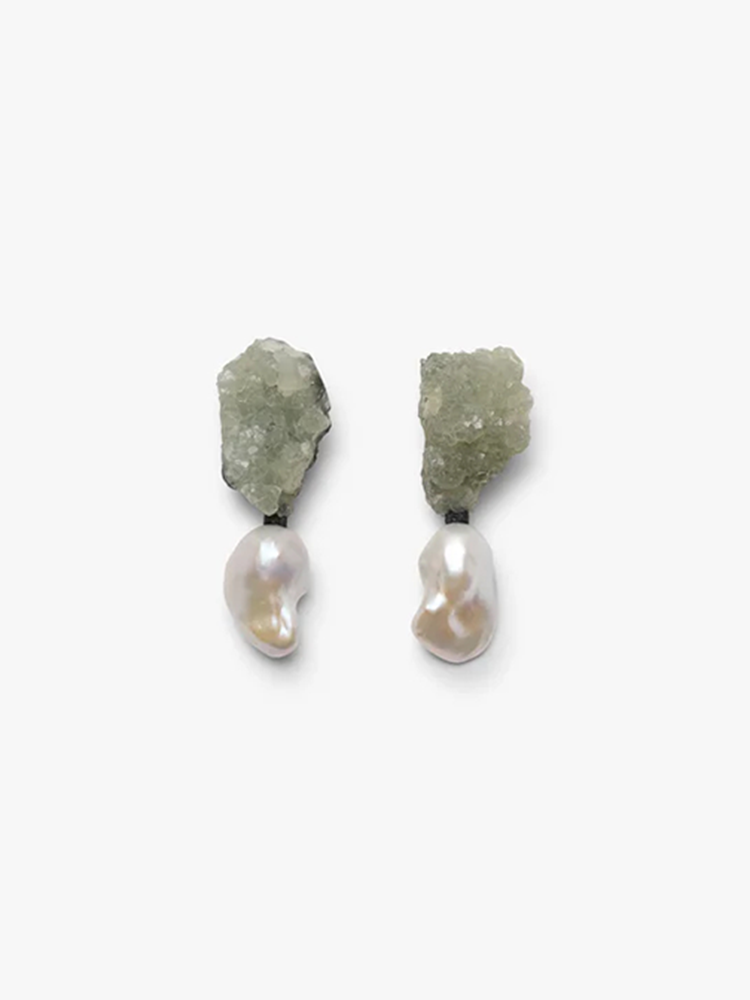 订购8周到|MONIES-OOAK-巴洛克珍珠 葡萄石 耳夹(无需耳洞)[丹麦设计师]