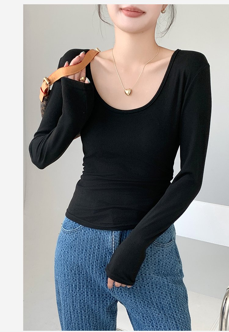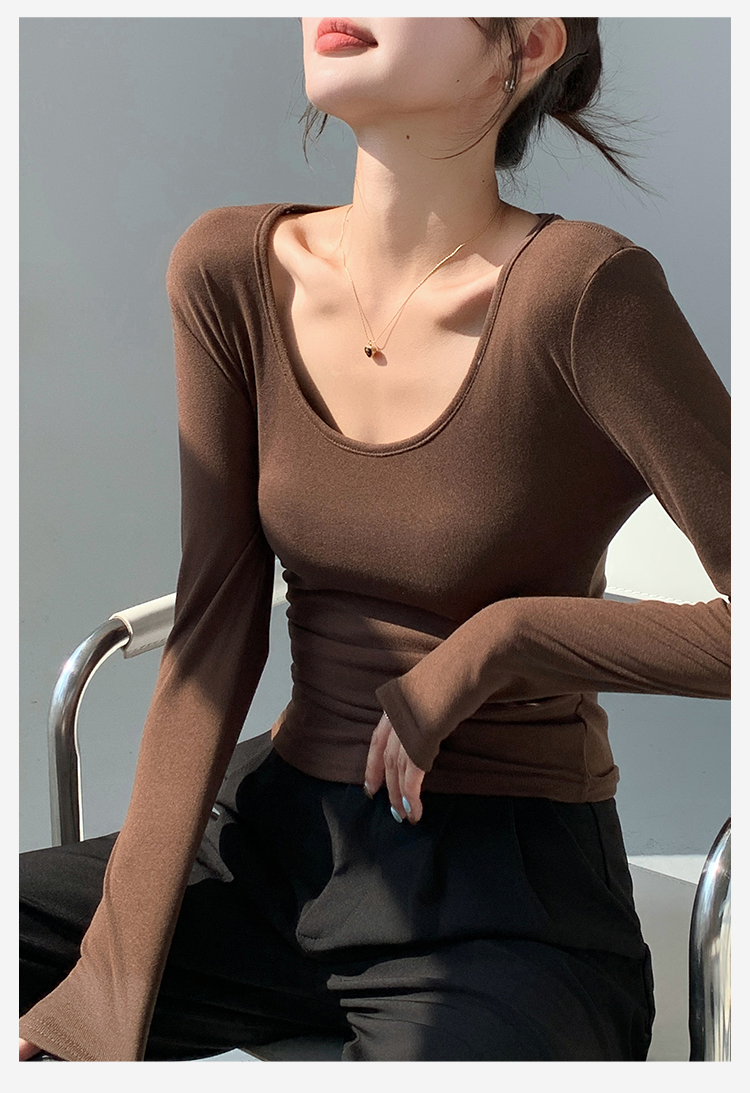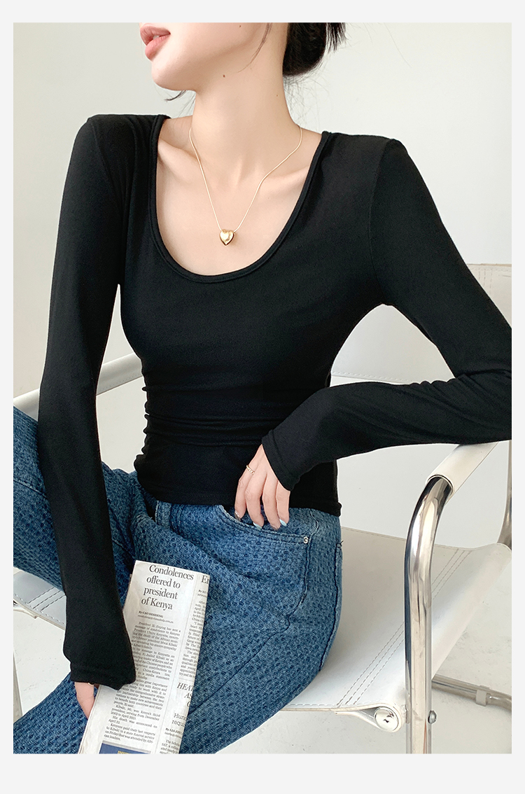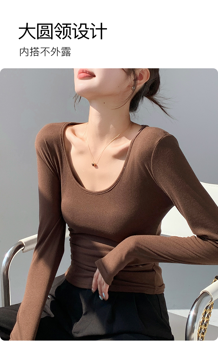 秋季新款【复古大U领】时尚简约女式保暖上女内搭西装可外穿打底257基础大圆领打底衫
