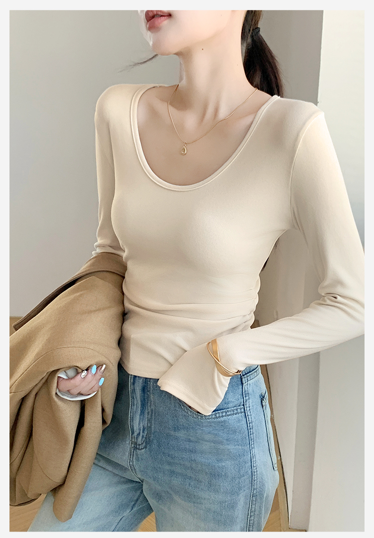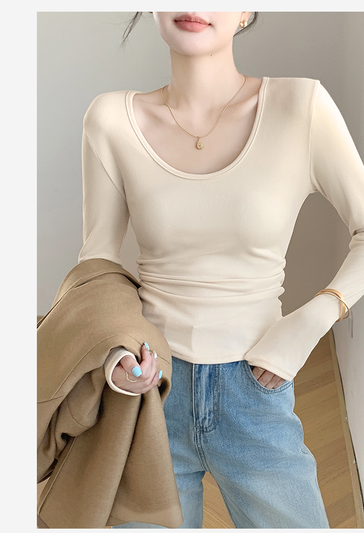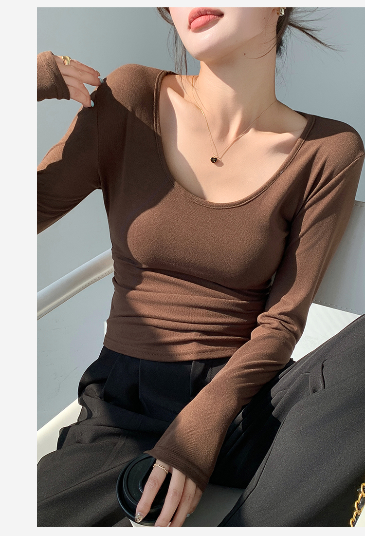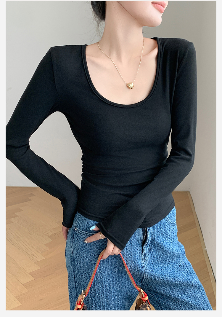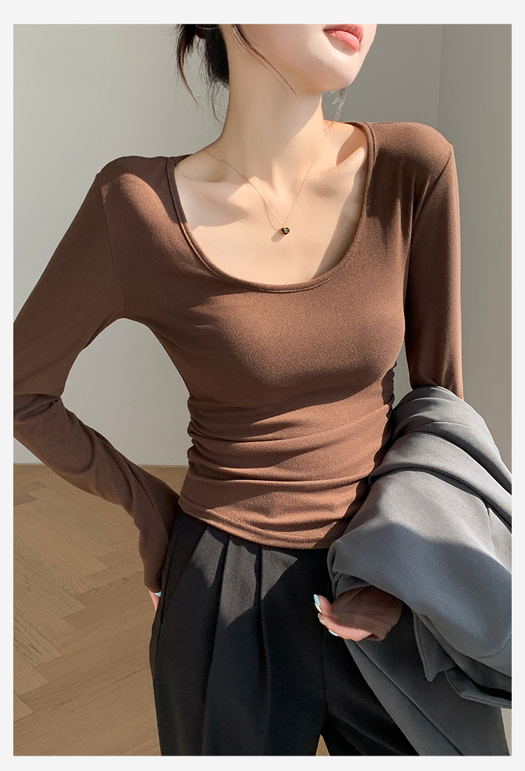 秋季新款【复古大U领】时尚简约女式保暖上女内搭西装可外穿打底257基础大圆领打底衫