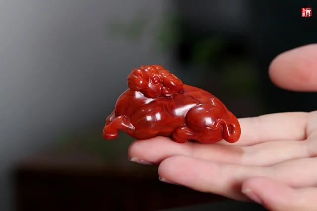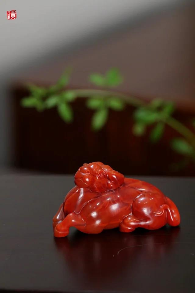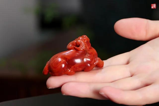 [ 扭转乾坤 ] 南红柿子红卧牛摆件