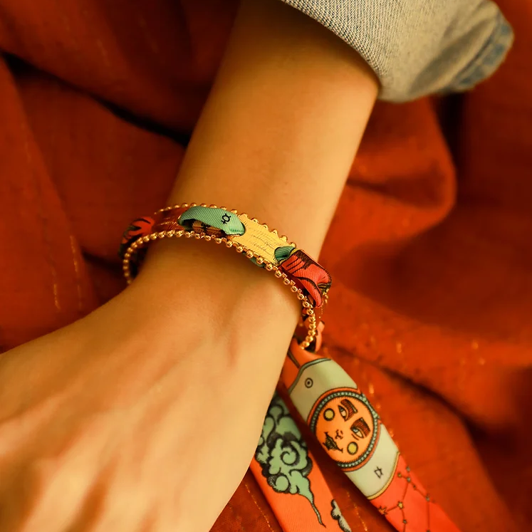 北京仓|AN-NEE-Diva-双子座 2cm丝巾 手镯(金色)[法国设计师]