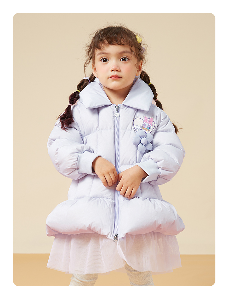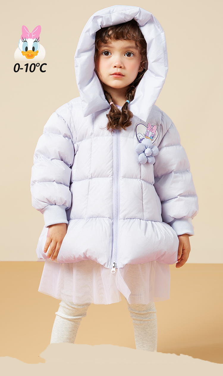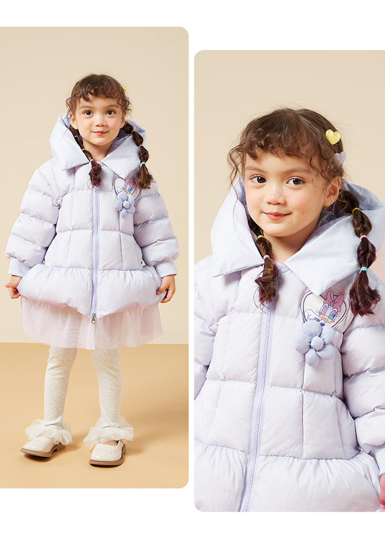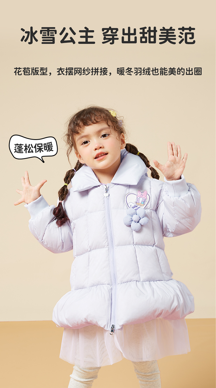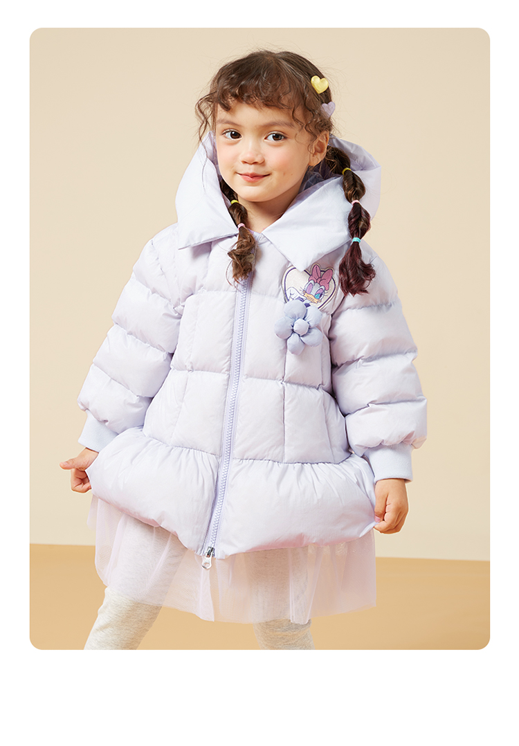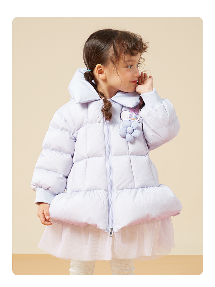 迪士尼童装女童羽绒服2冬季黛丝花朵花苞网纱拼接连帽外套234S1842