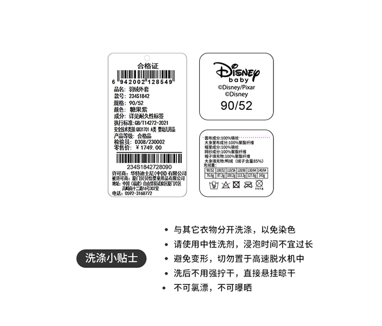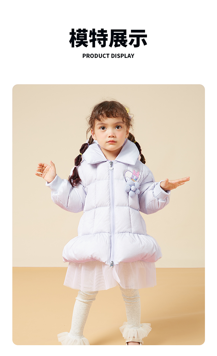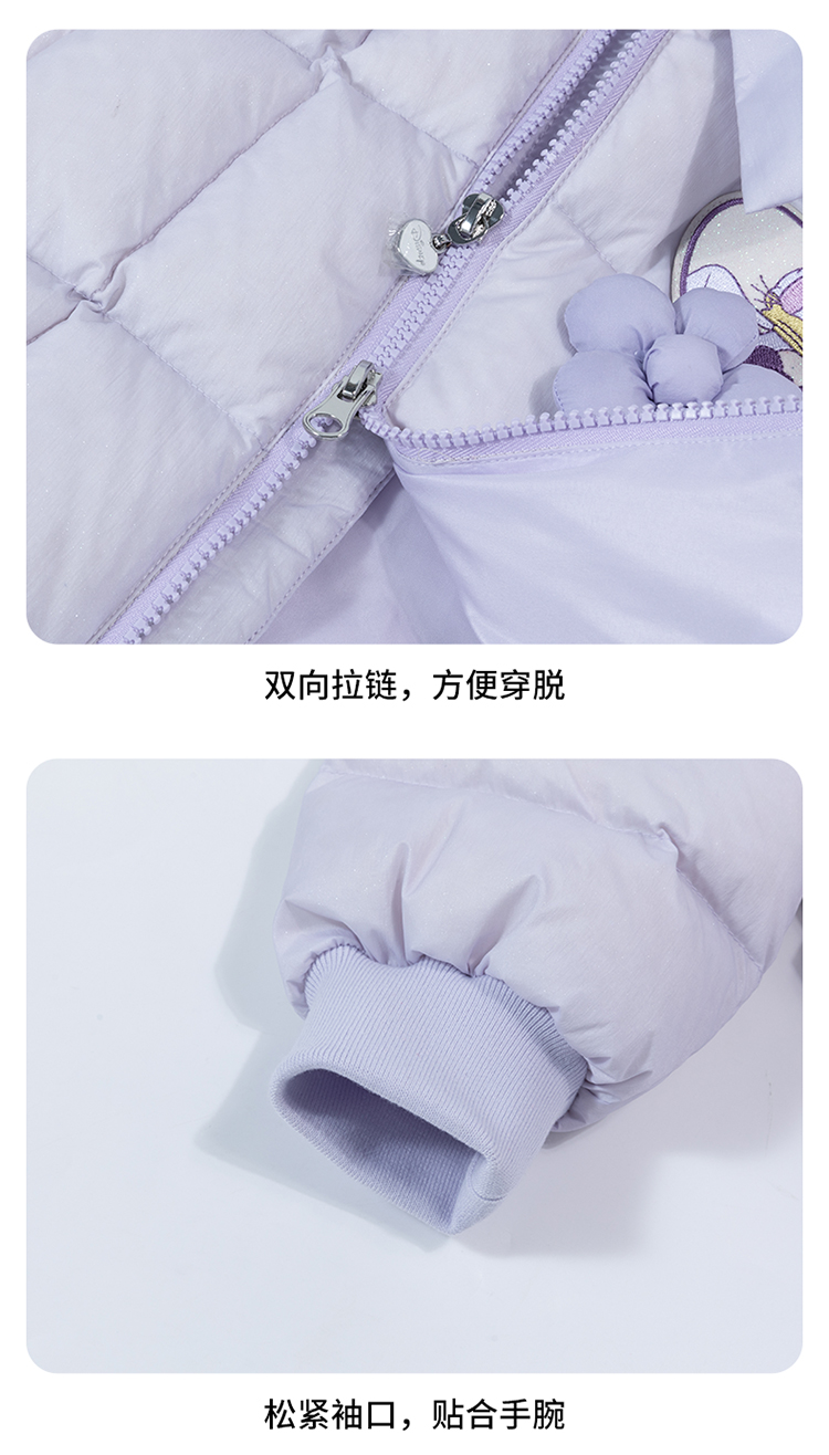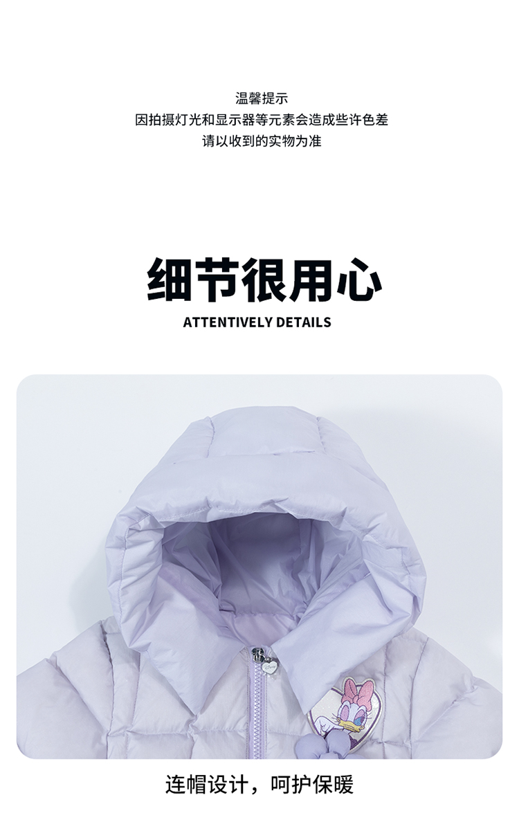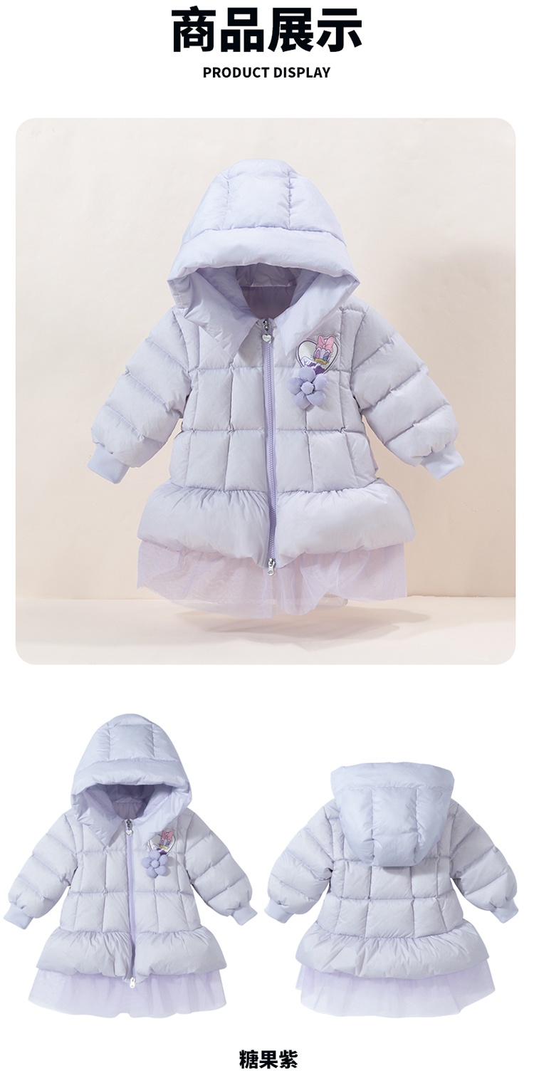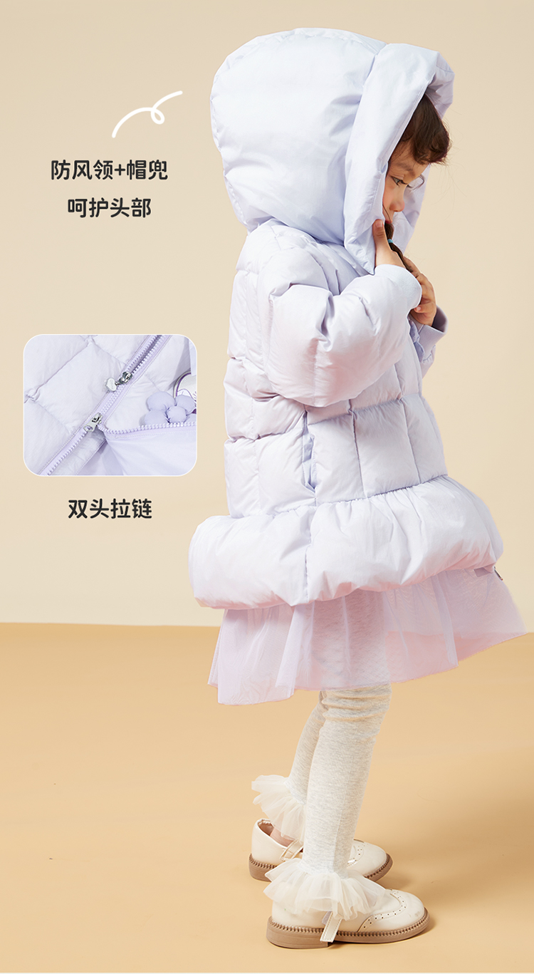 迪士尼童装女童羽绒服2冬季黛丝花朵花苞网纱拼接连帽外套234S1842
