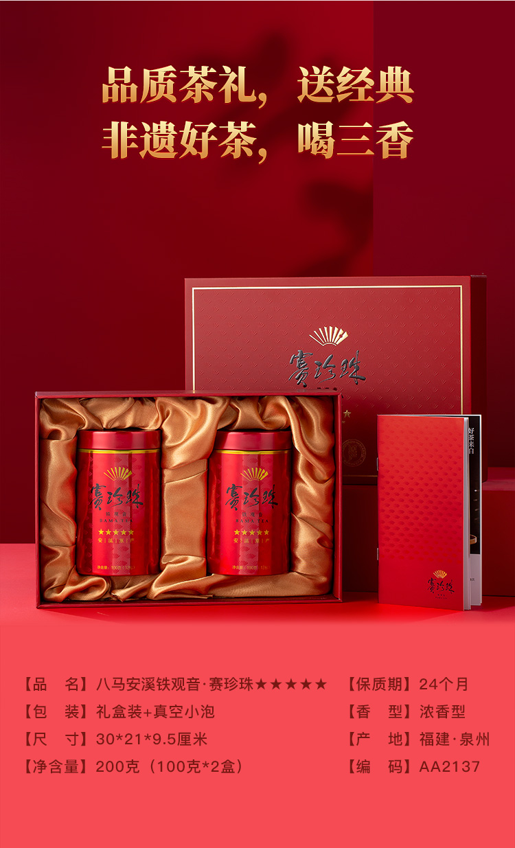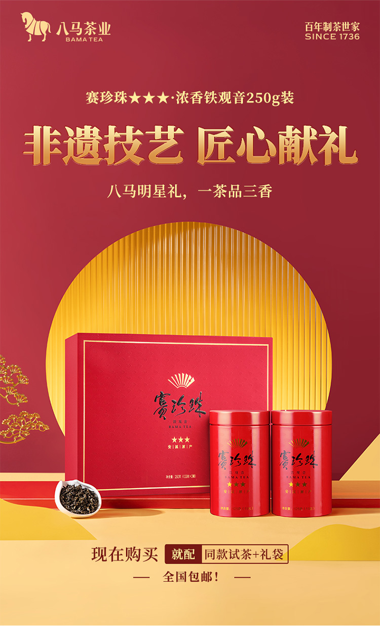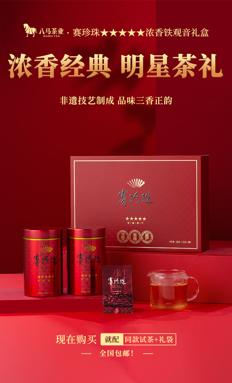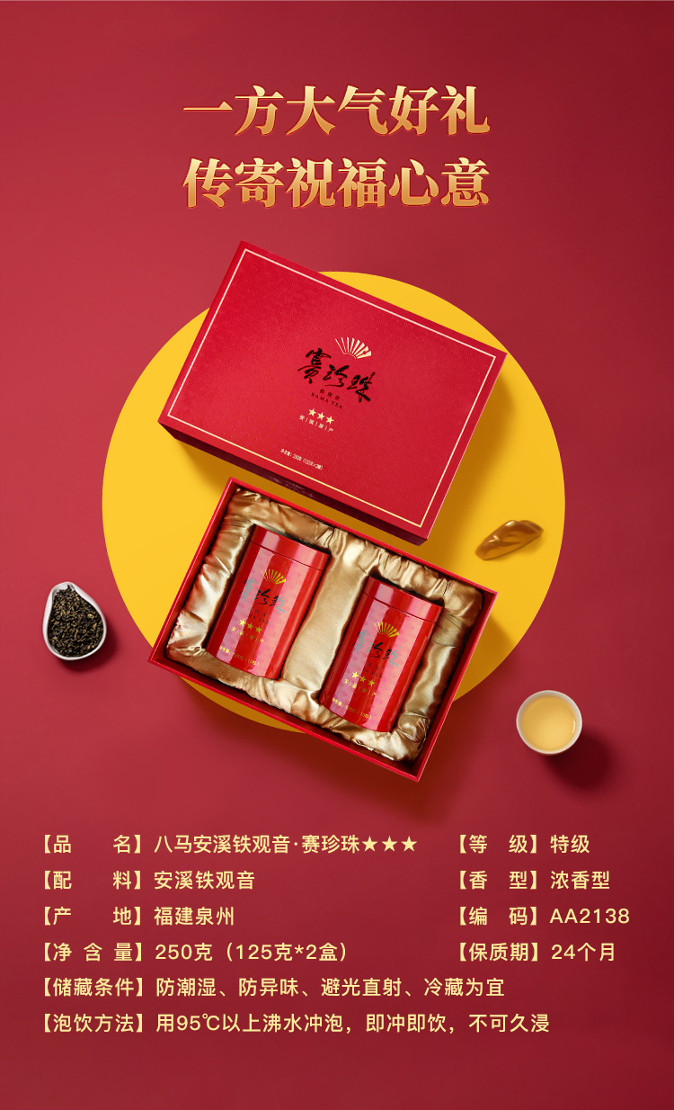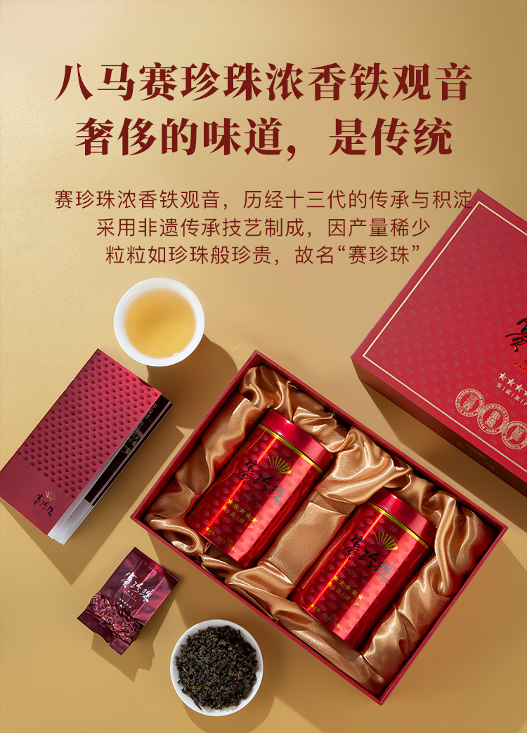 八马茶业|赛珍珠系列安溪特级铁观音浓香型茶叶乌龙茶赛珍珠三星五星礼盒装