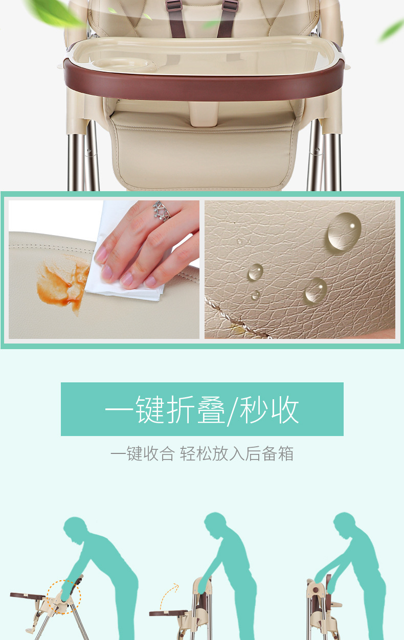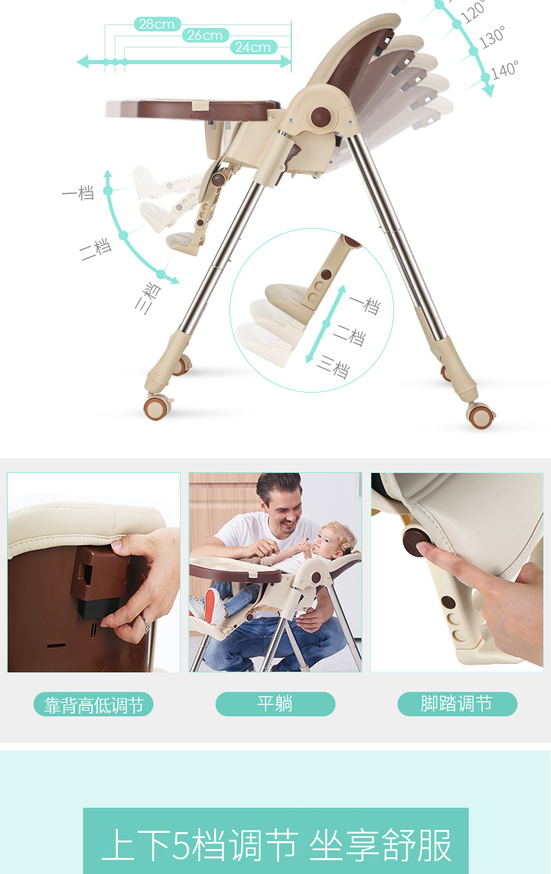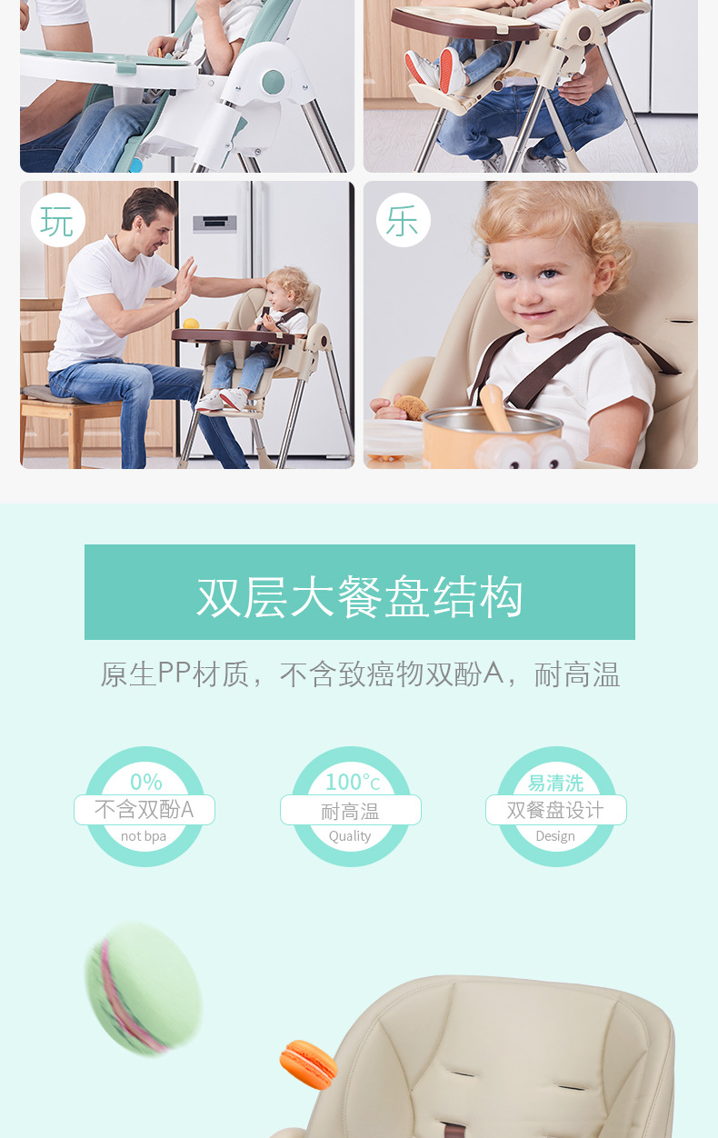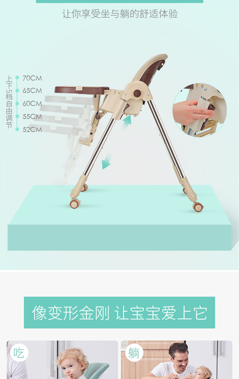 儿童餐椅宝宝餐椅 多功能便携可折叠宝宝吃饭椅子可调档婴儿餐椅