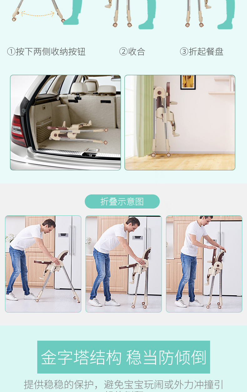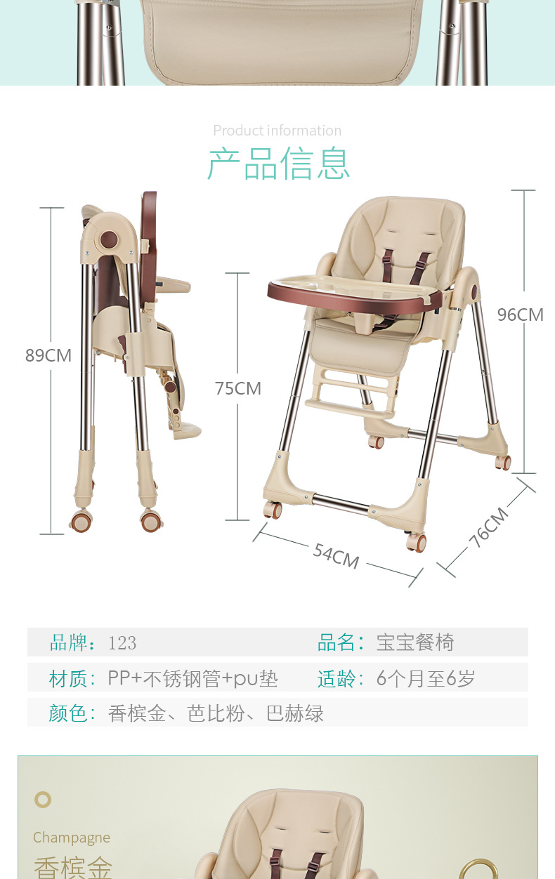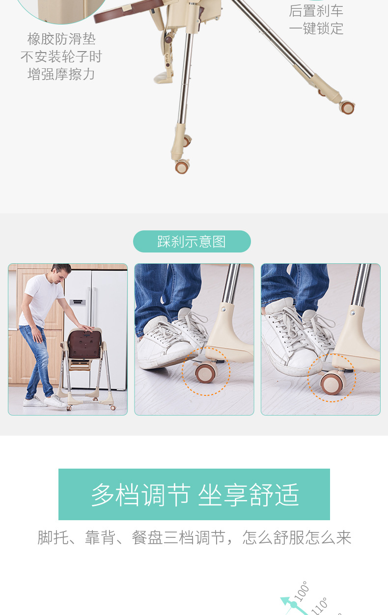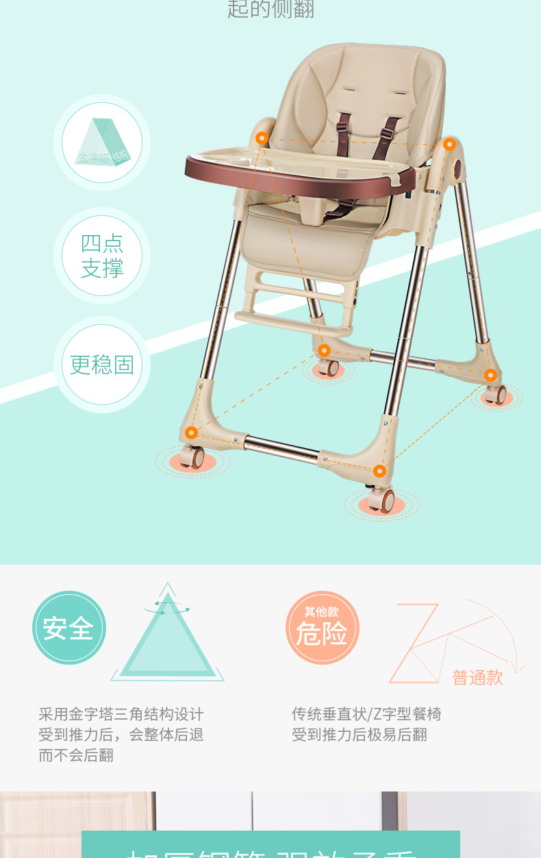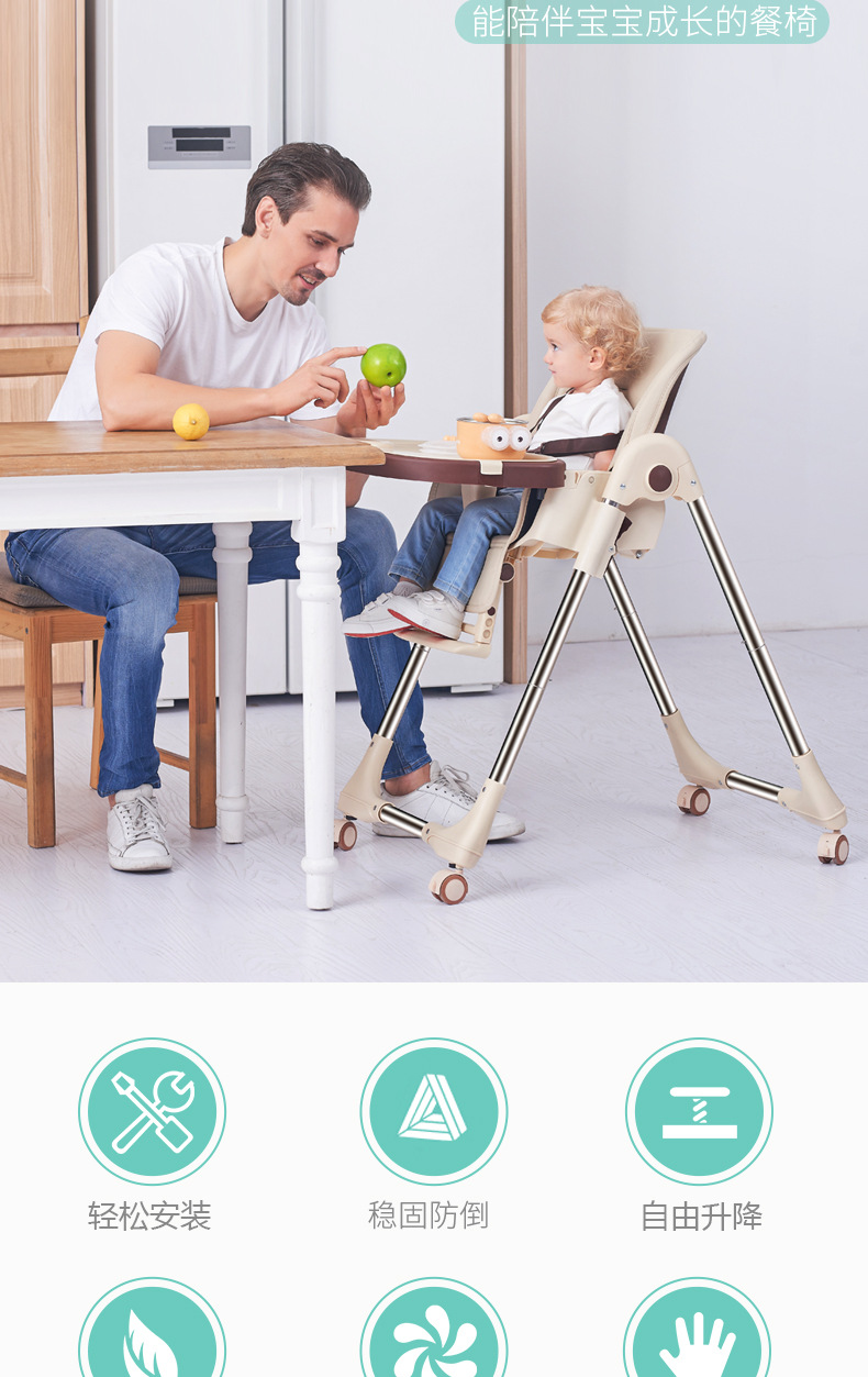 儿童餐椅宝宝餐椅 多功能便携可折叠宝宝吃饭椅子可调档婴儿餐椅
