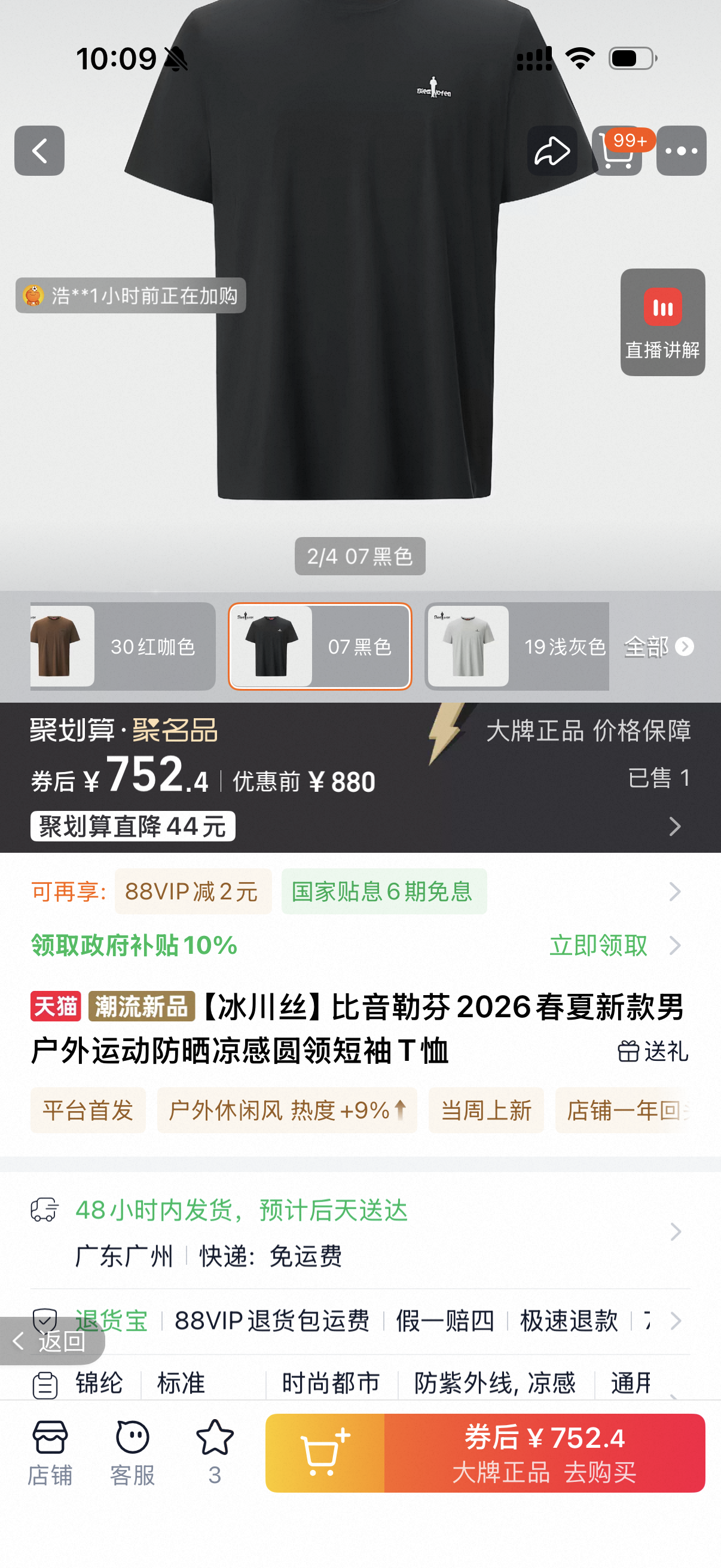 2026夏季新款 比音勒芬冷感科技圆领短袖T恤
