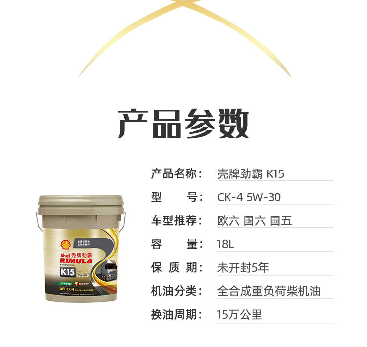 壳牌劲霸 柴机油 K15 5W-30 CK-4 4L 10-15万公里