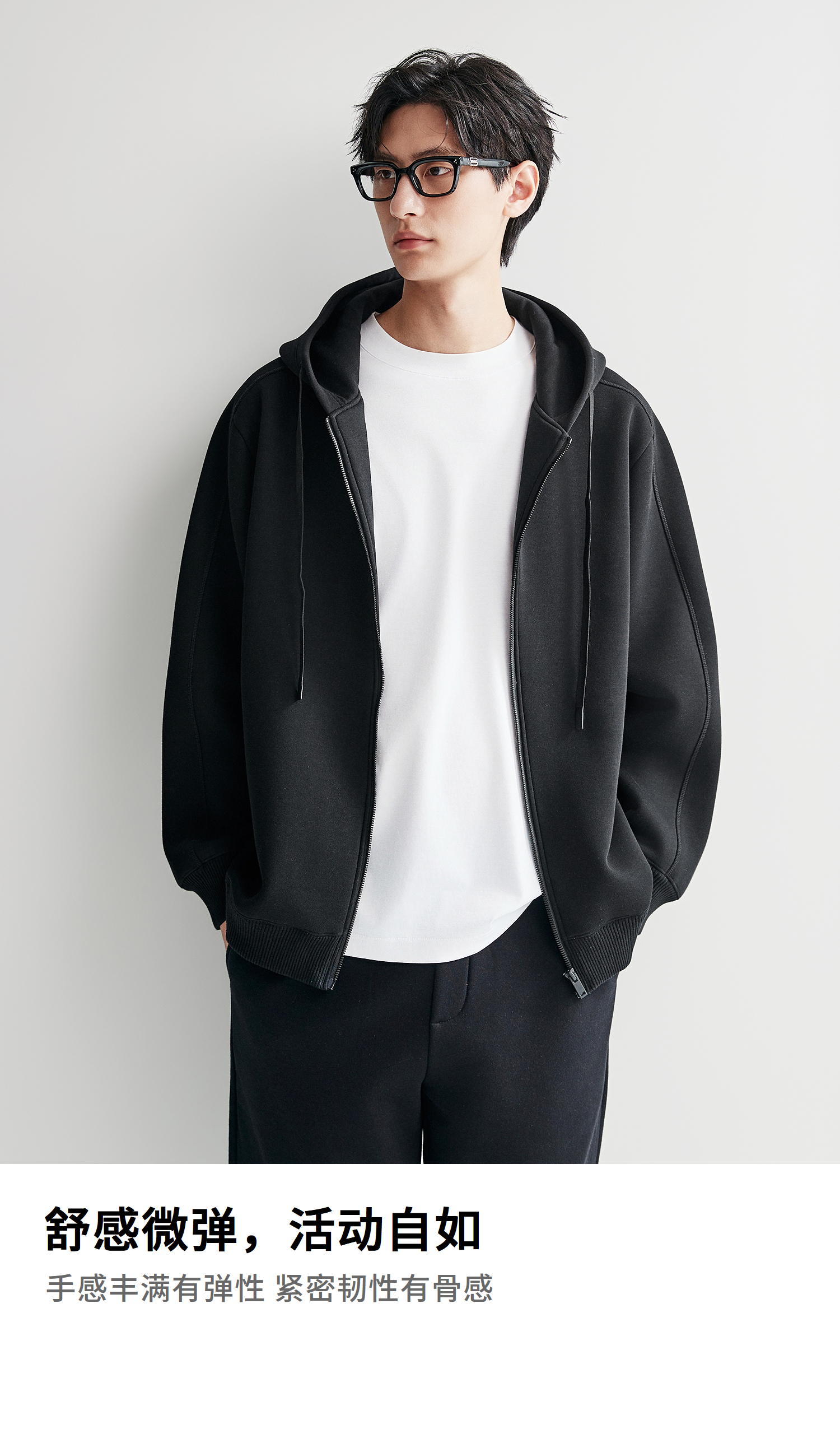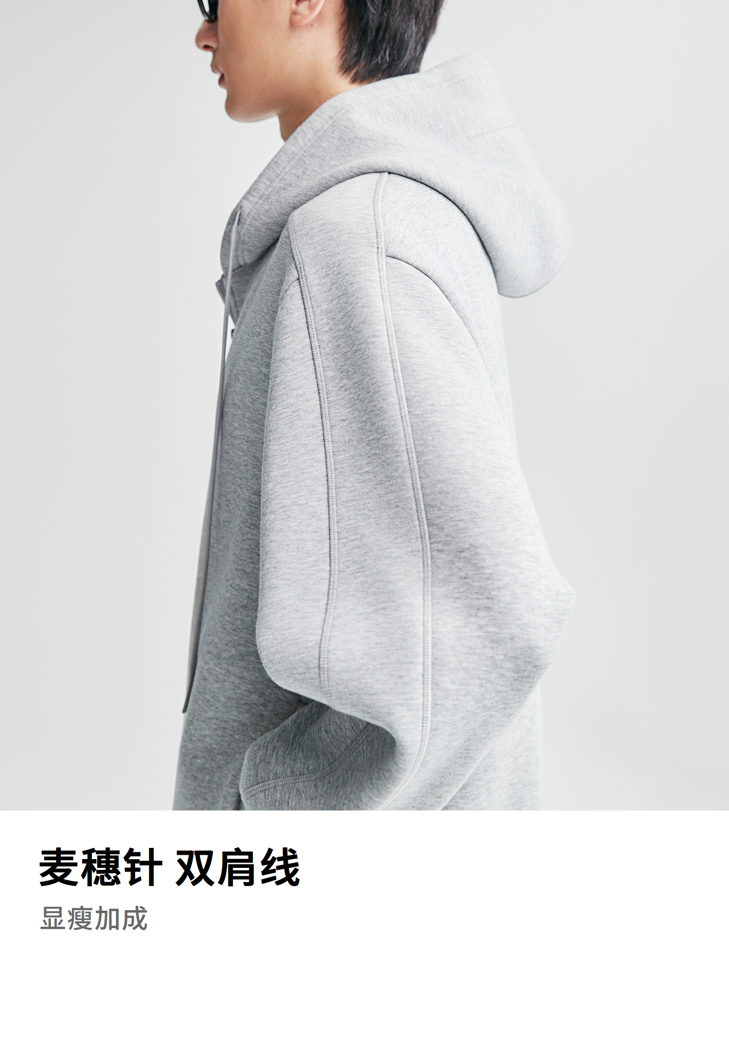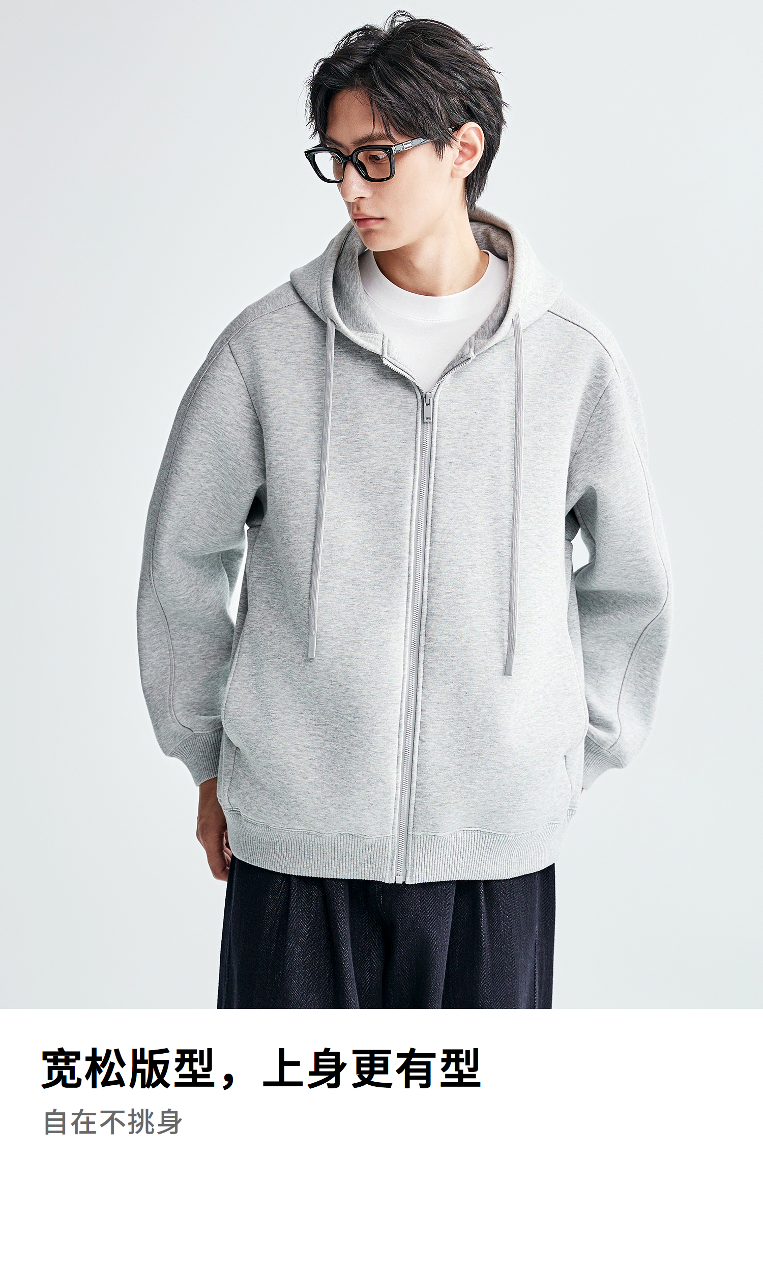 棉仓367808014-五明治复合摇粒绒宽松廓型连帽开衫卫衣