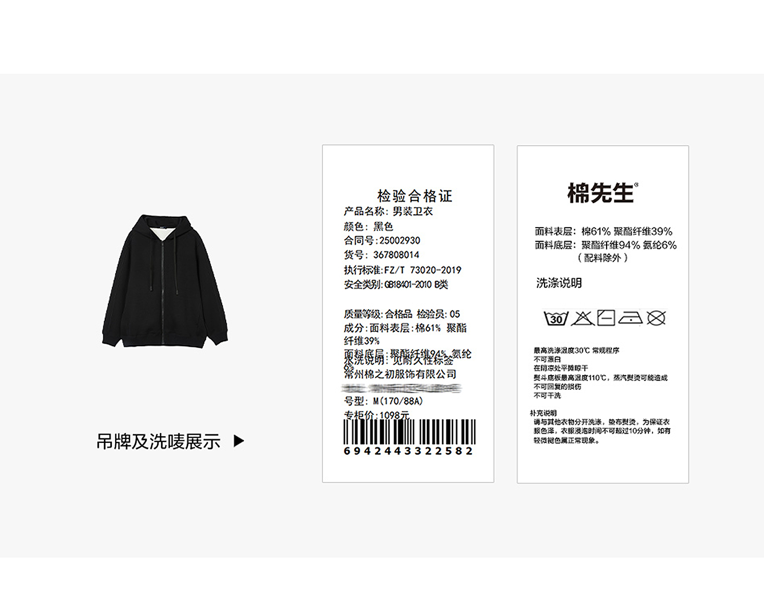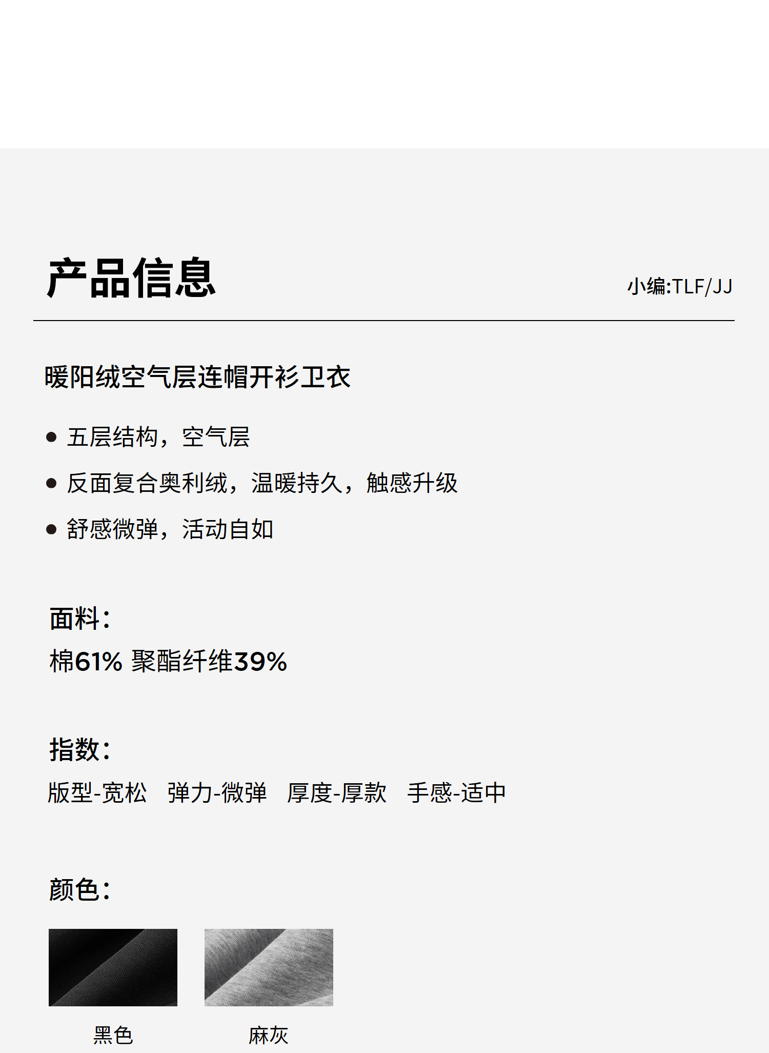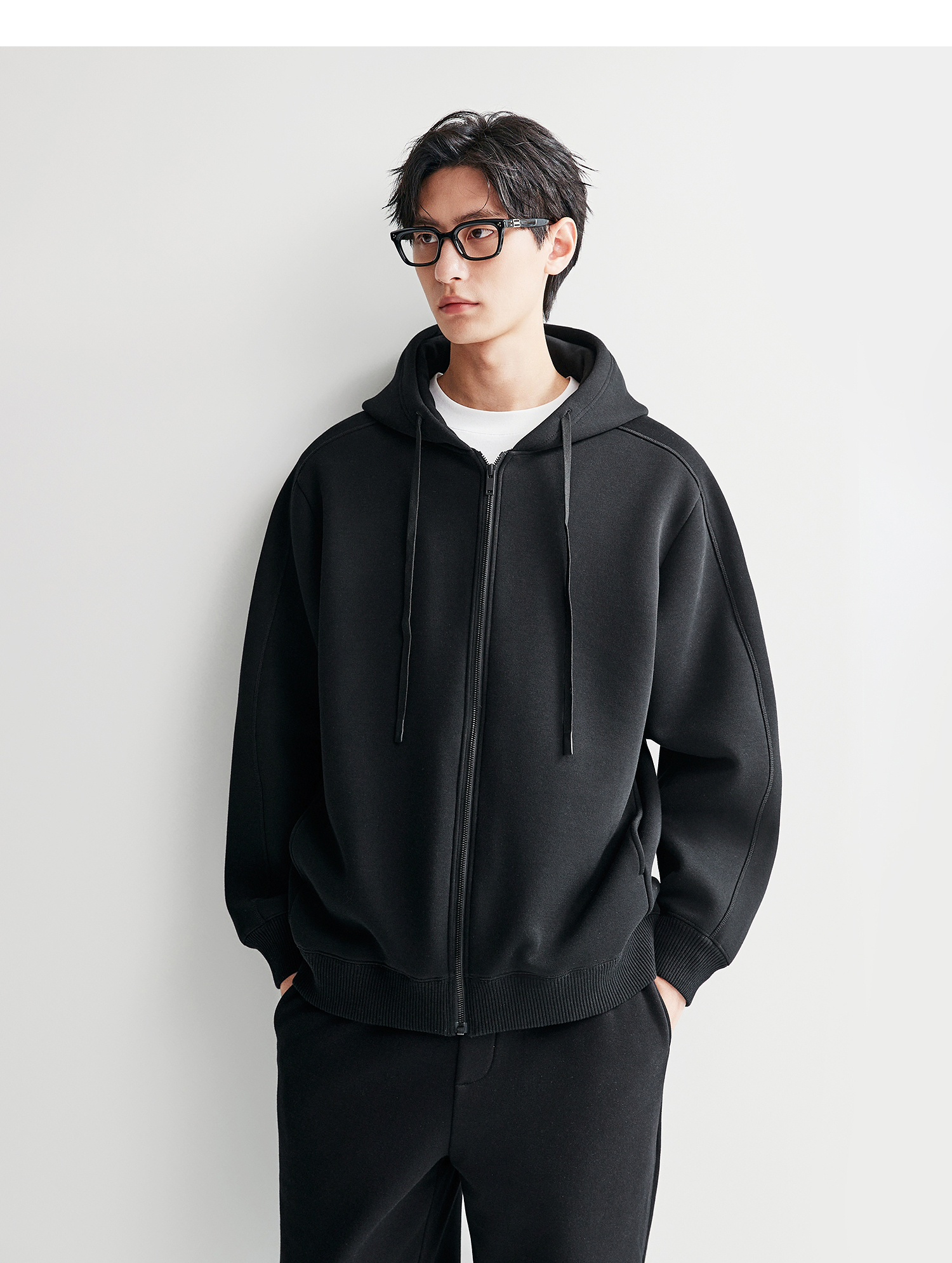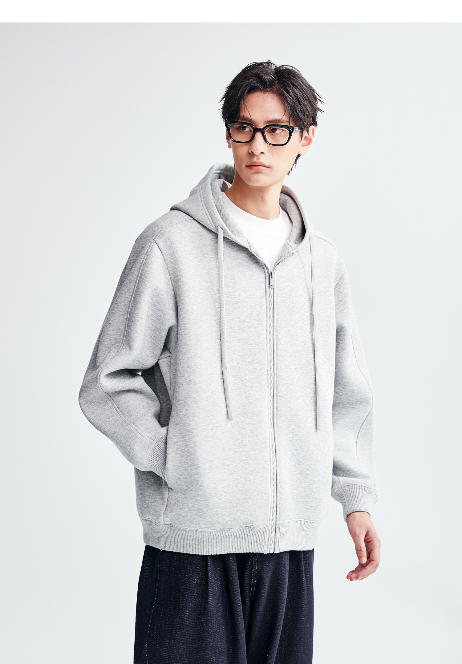 棉仓367808014-五明治复合摇粒绒宽松廓型连帽开衫卫衣