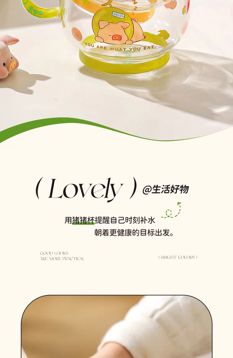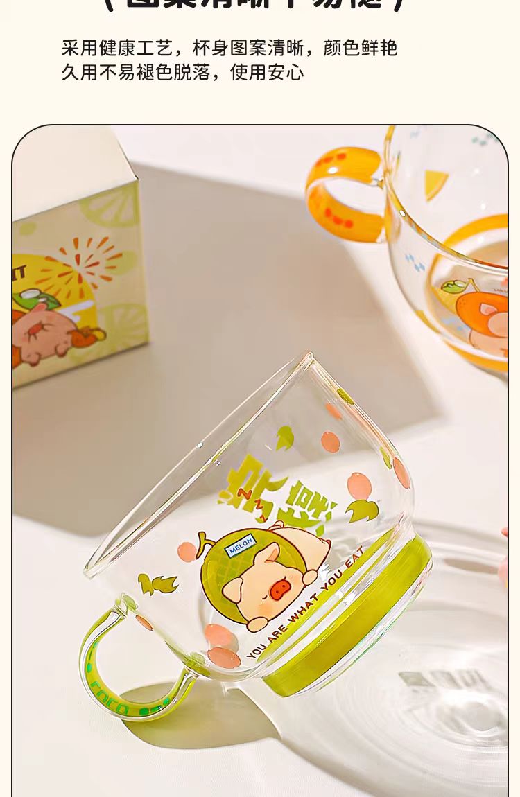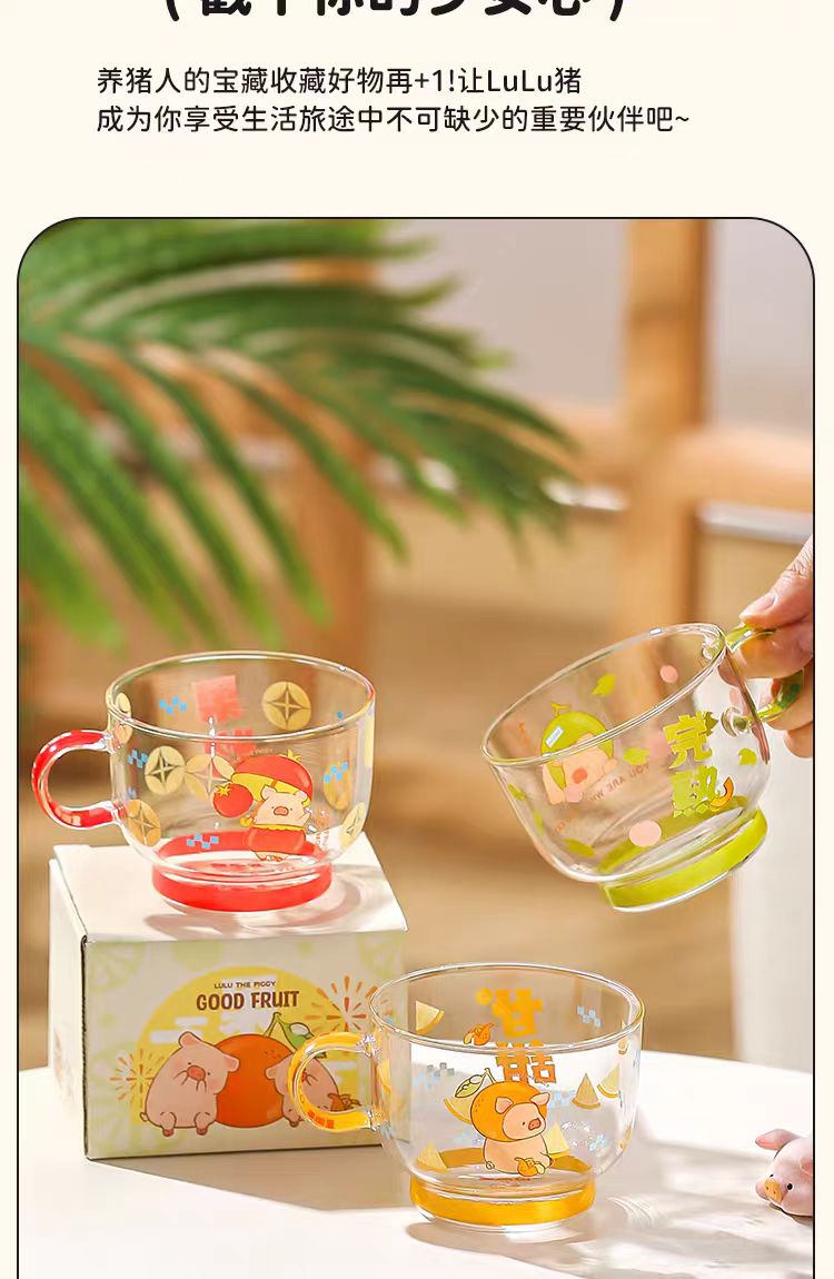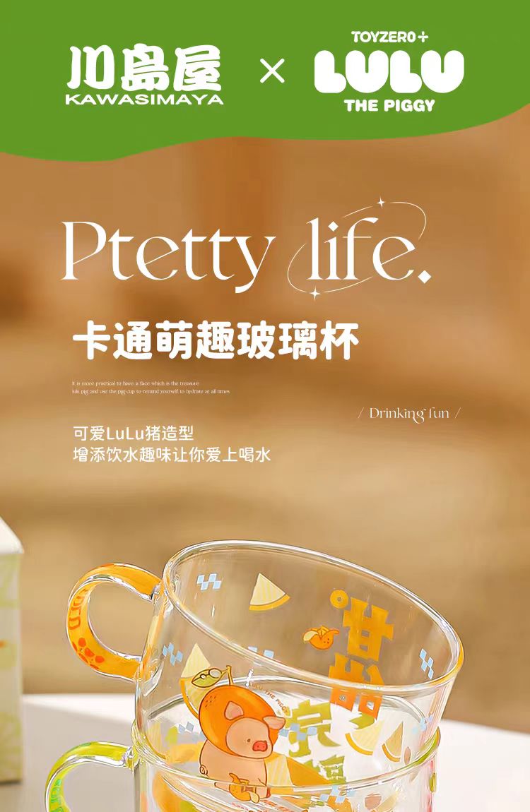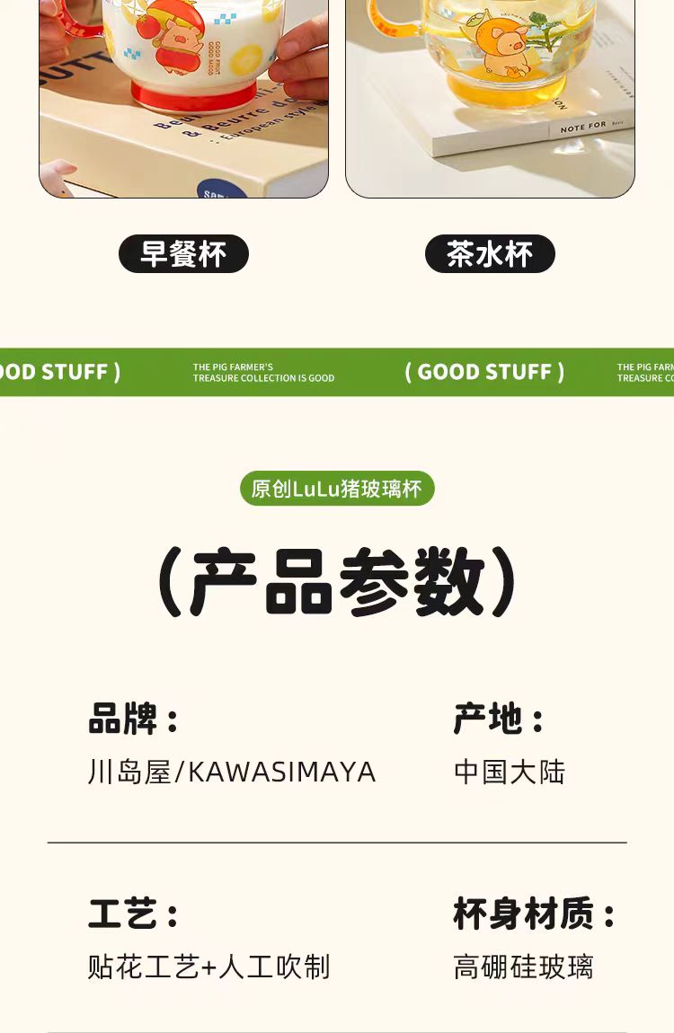 4楼Eubelle欧蓓 川岛屋&lulu猪联名 可爱玻璃杯380ml 果汁牛奶杯早餐杯 活动价:32.8元