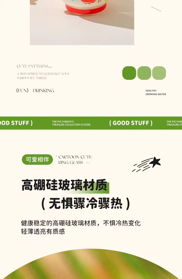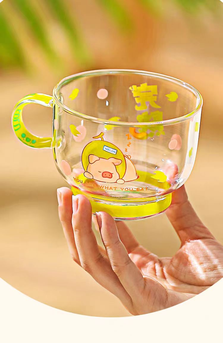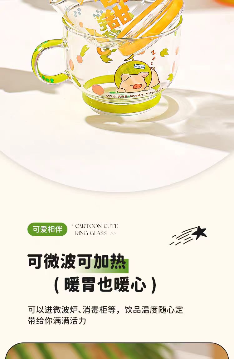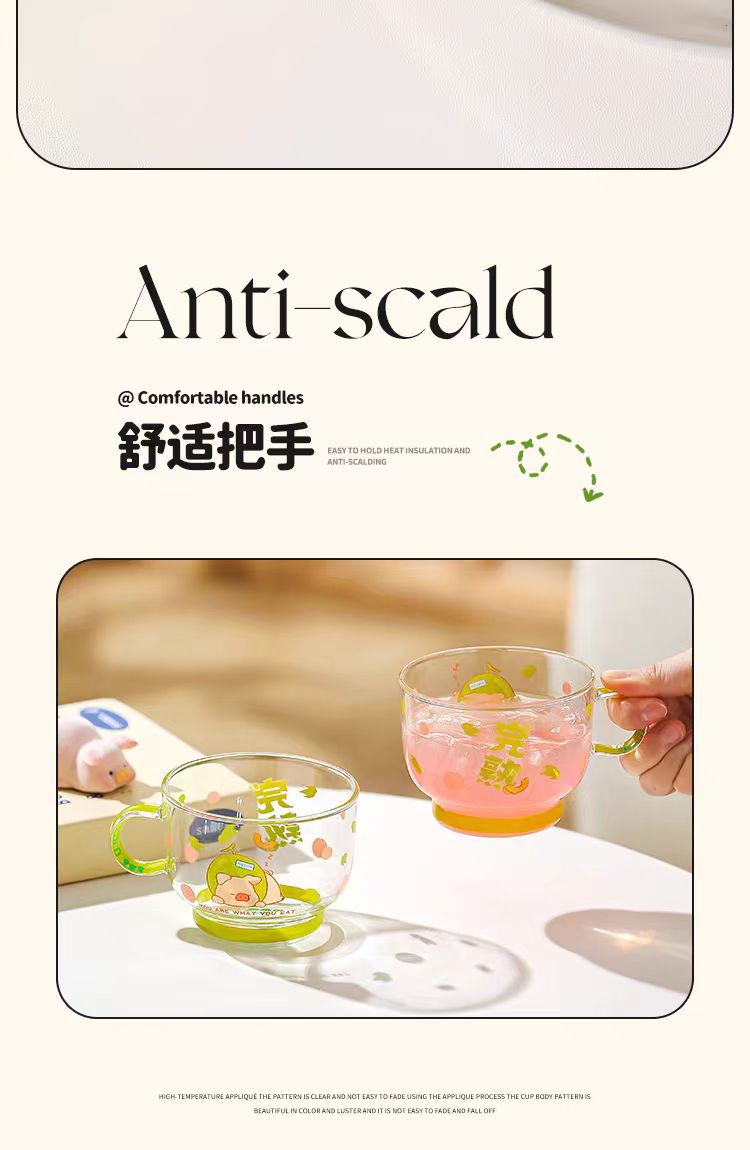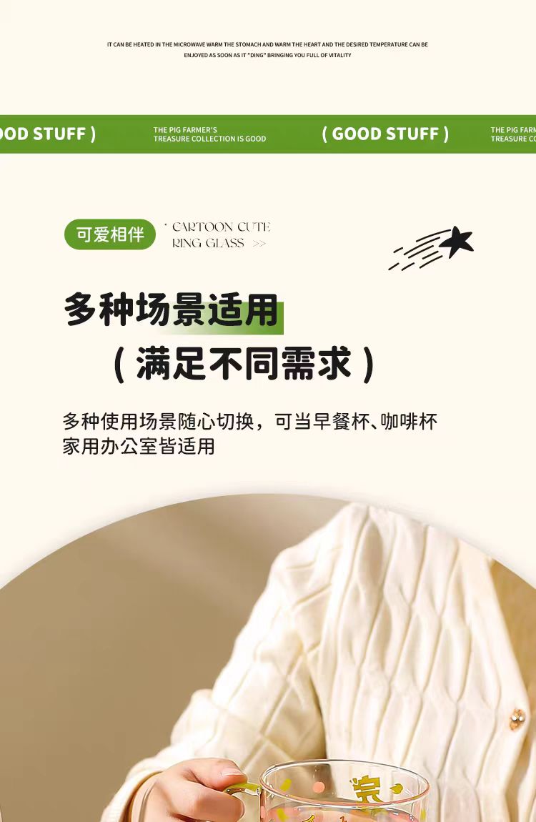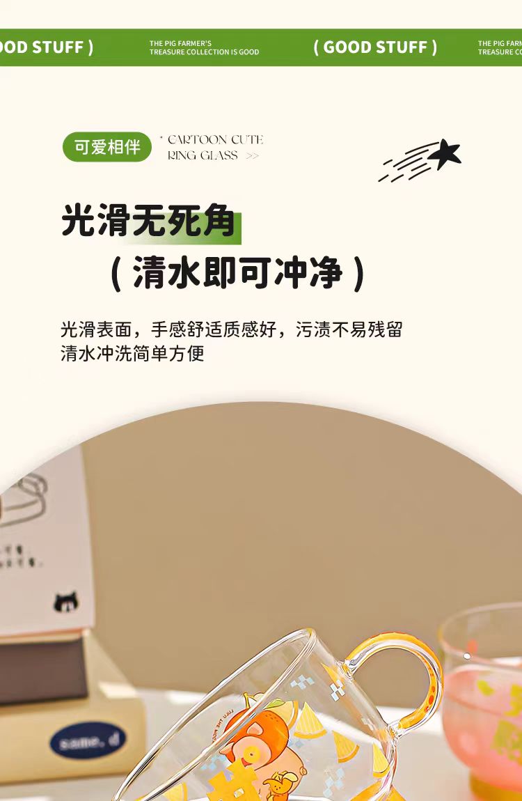 4楼Eubelle欧蓓 川岛屋&lulu猪联名 可爱玻璃杯380ml 果汁牛奶杯早餐杯 活动价:32.8元