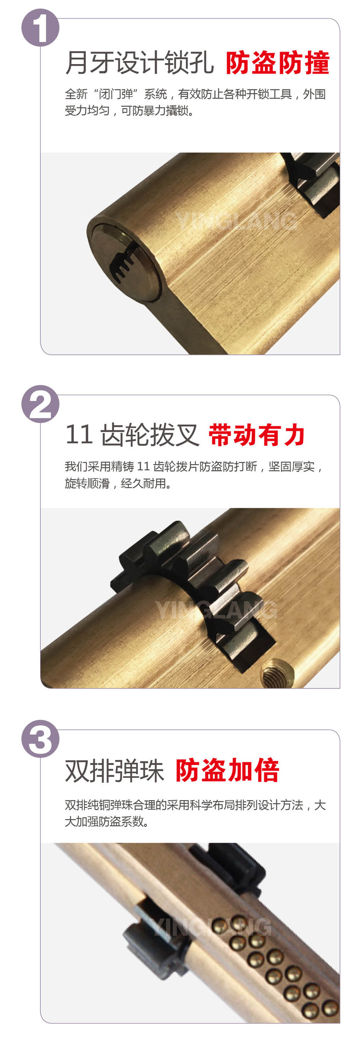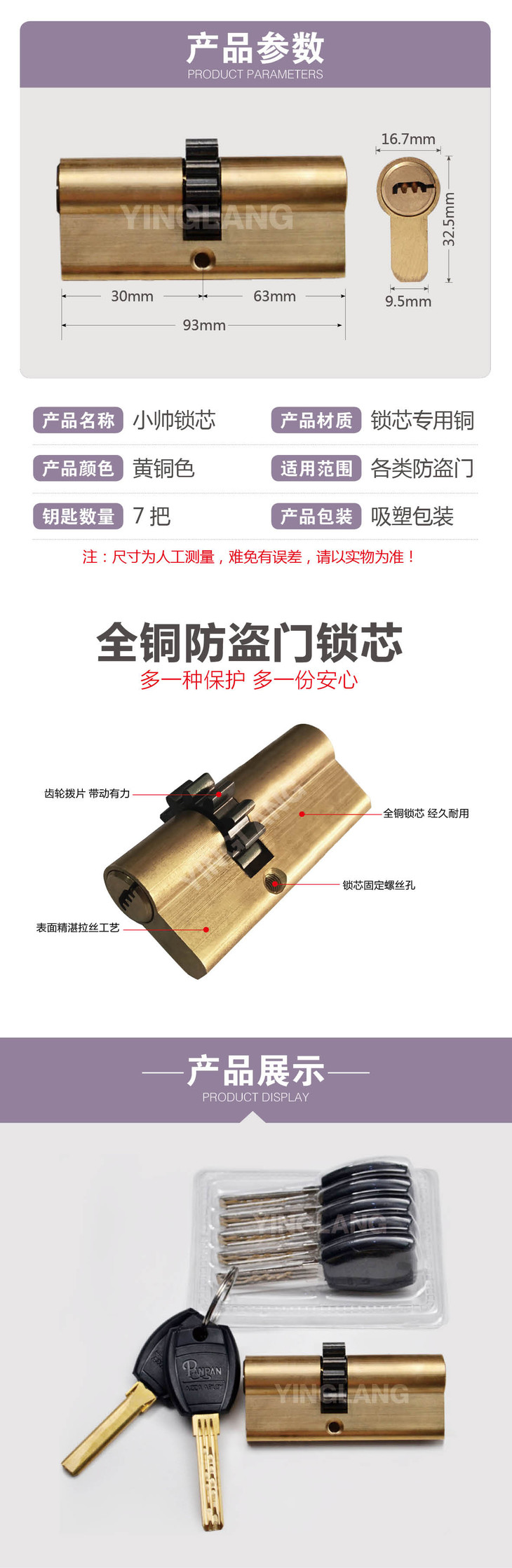 〖7271〗双排月牙小帅锁芯(93偏)