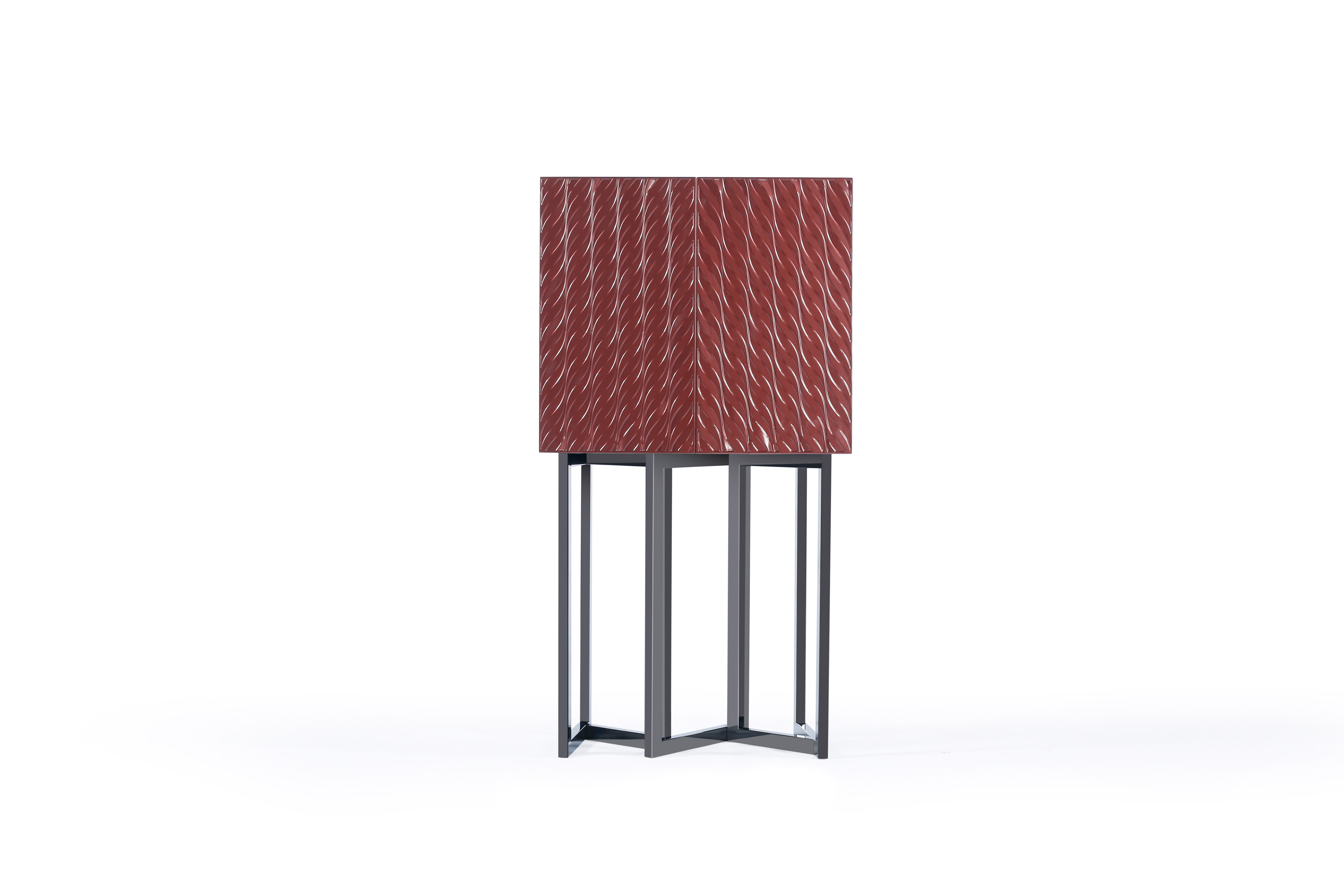 主材:海棠红炫彩漆+黑钛色不锈钢