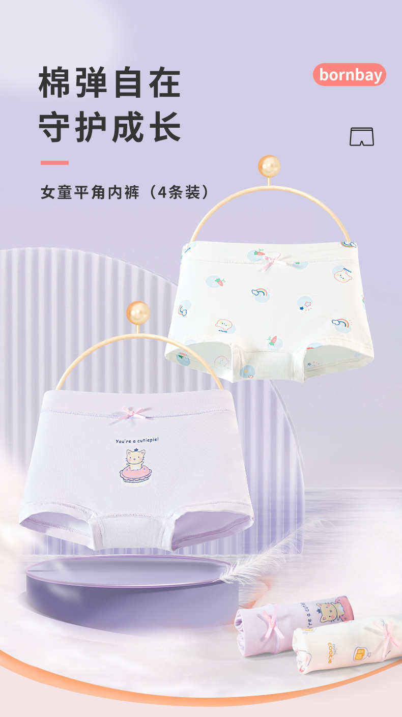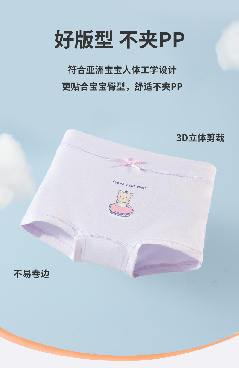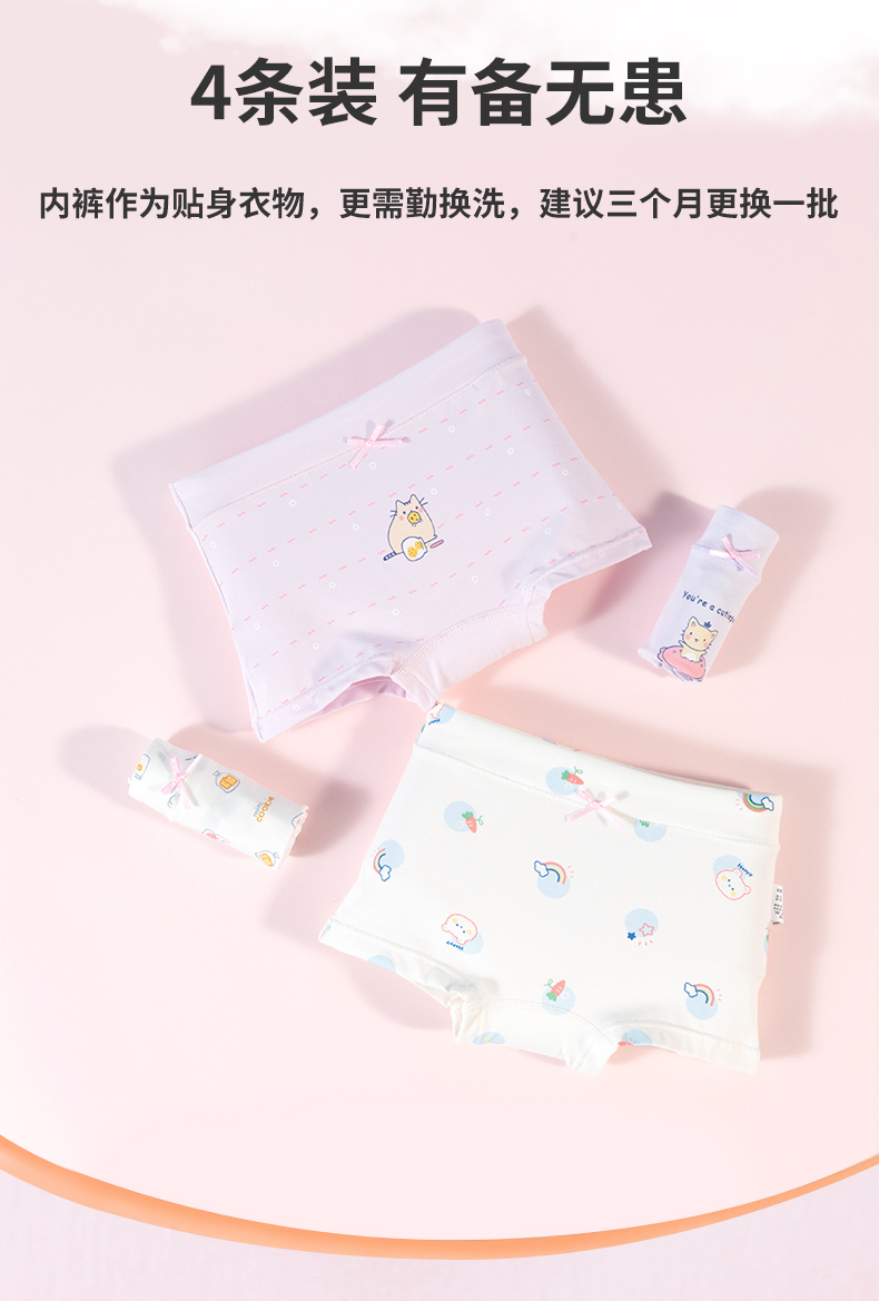 贝贝怡女童内裤女宝宝不夹PP短裤儿童内裤(4件装)