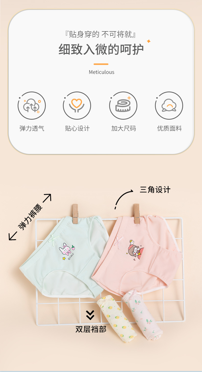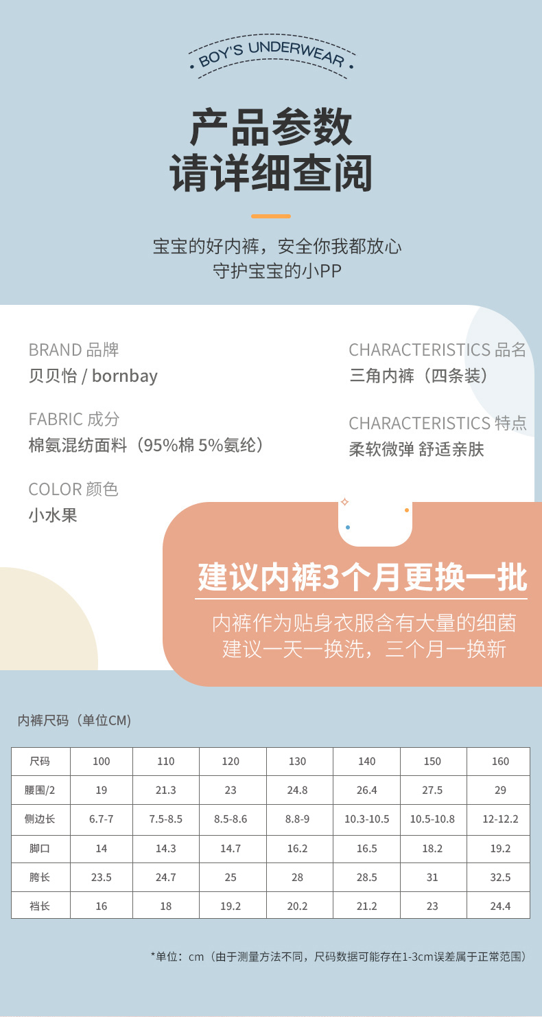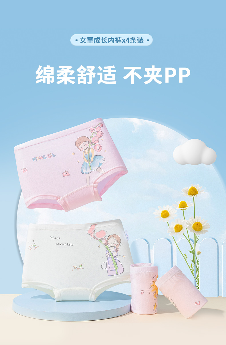 贝贝怡女童内裤女宝宝不夹PP短裤儿童内裤(4件装)