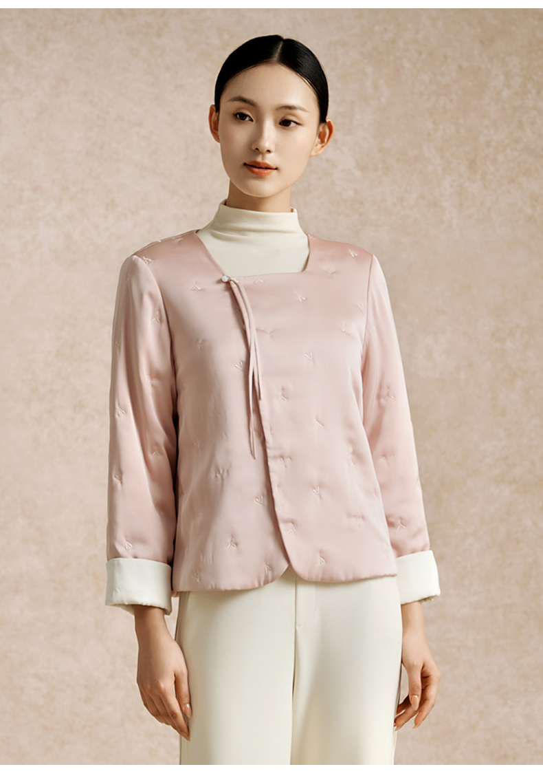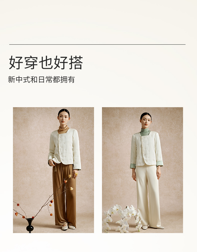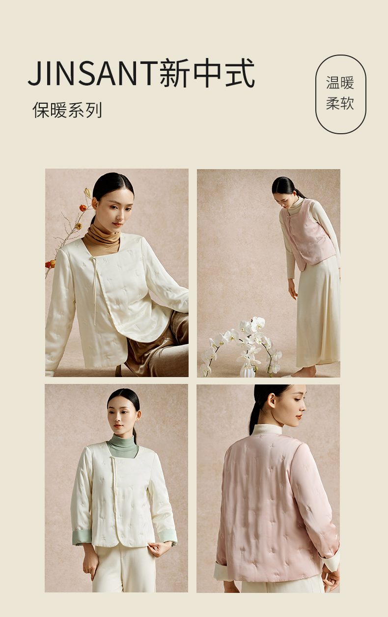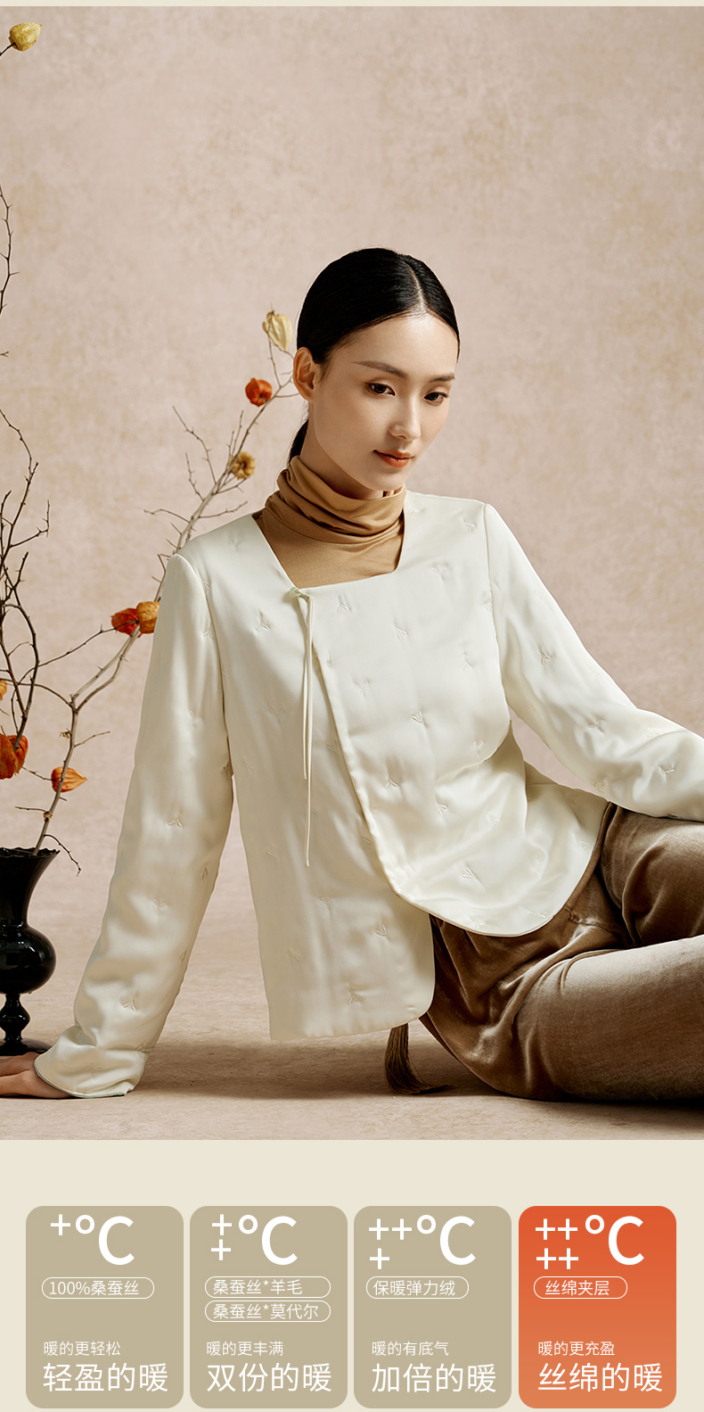 金三塔新中式桑蚕丝羊毛秋冬保暖外套优雅柔软加厚长袖家居服女(限价) NSFEC731