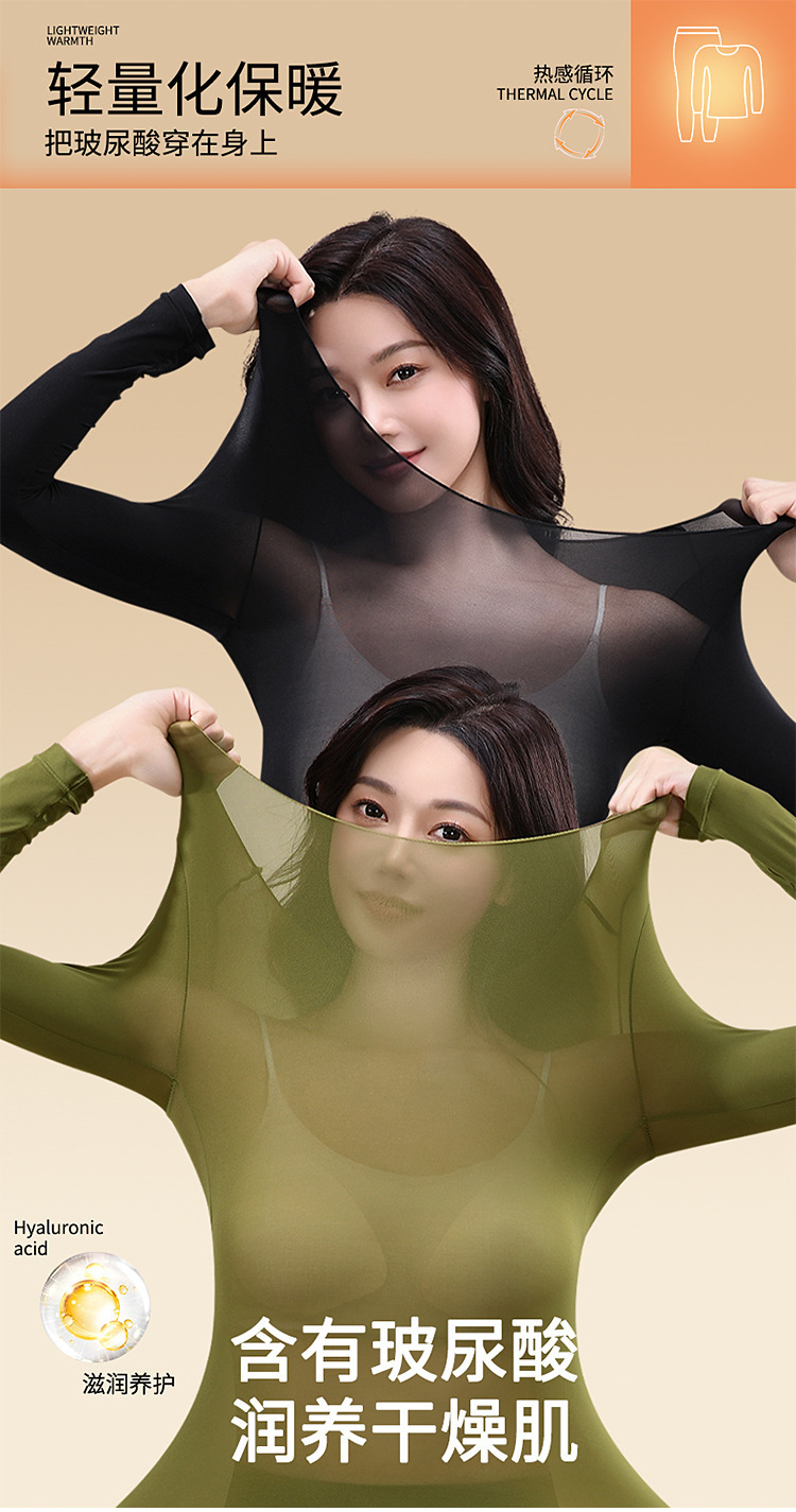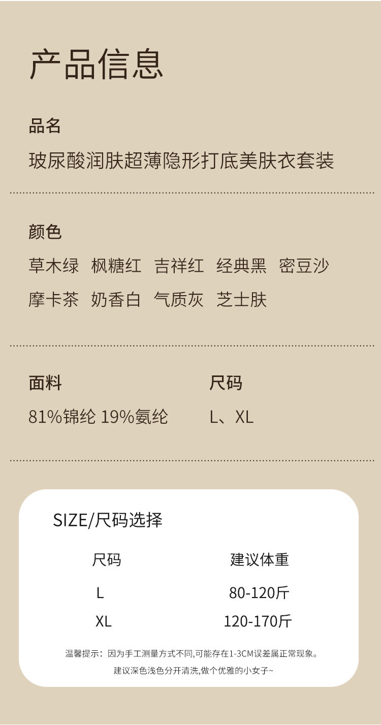 【玻尿酸润肤】很薄很暖和的皮肤衣!美肤衣/保暖套装女 超薄高弹无痕长裤长袖 6色可选