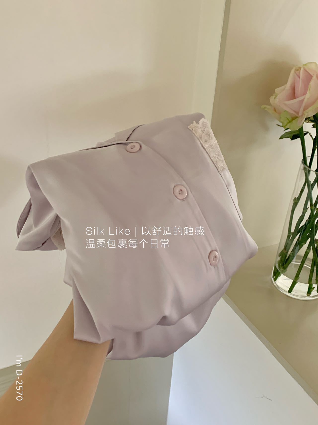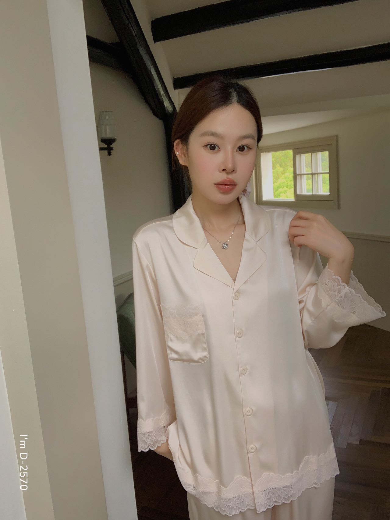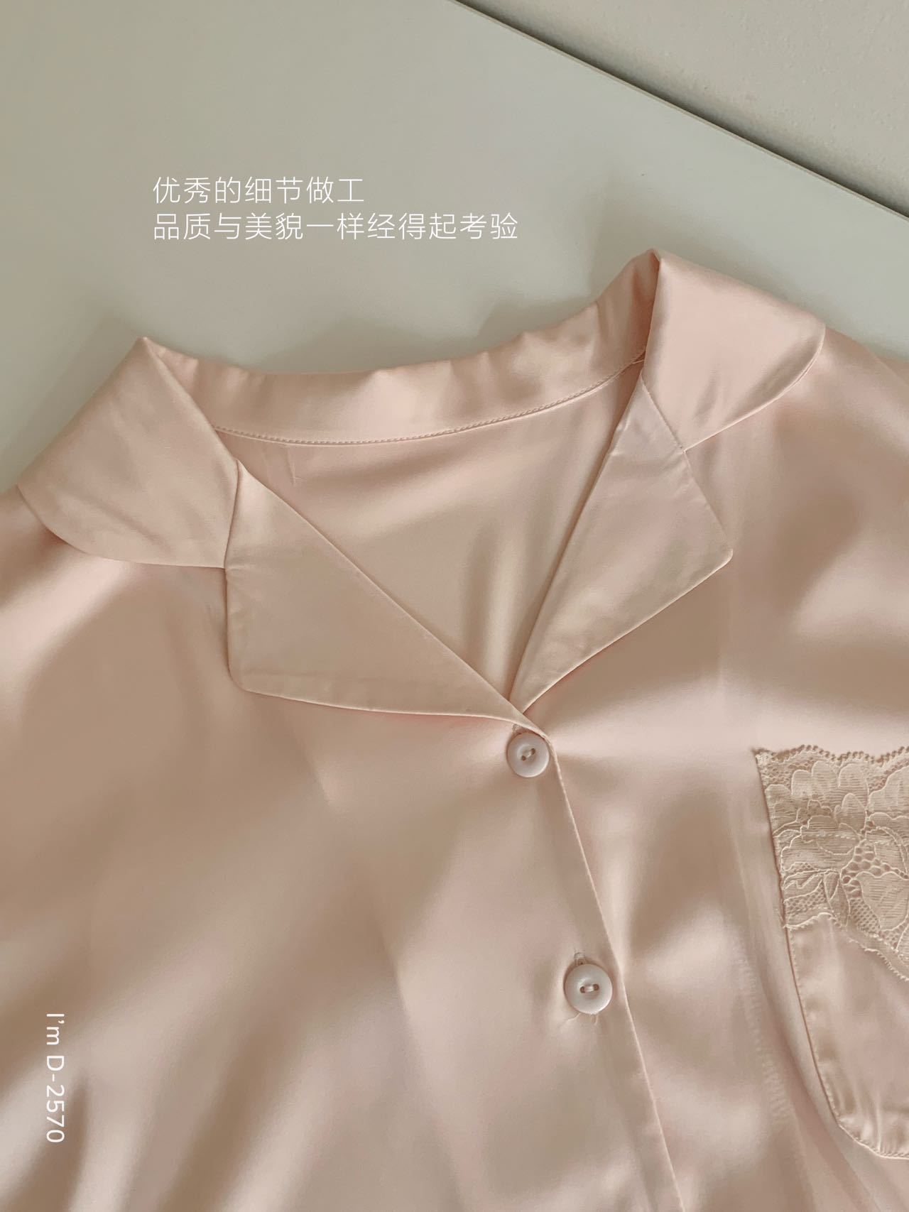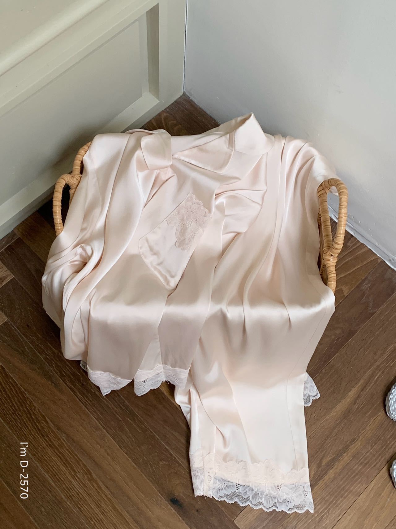 【柔滑垂顺舒适美貌 】2025新款微醺蕾丝仿真丝触感素颜衣长袖翻领家居服休闲两件套