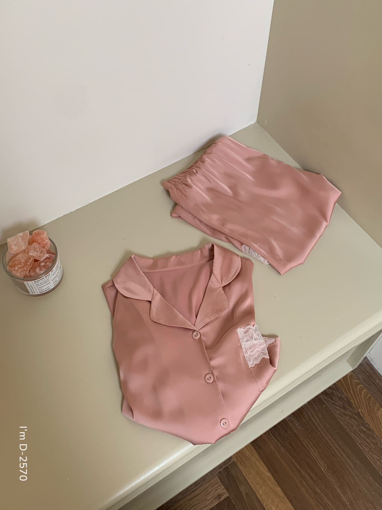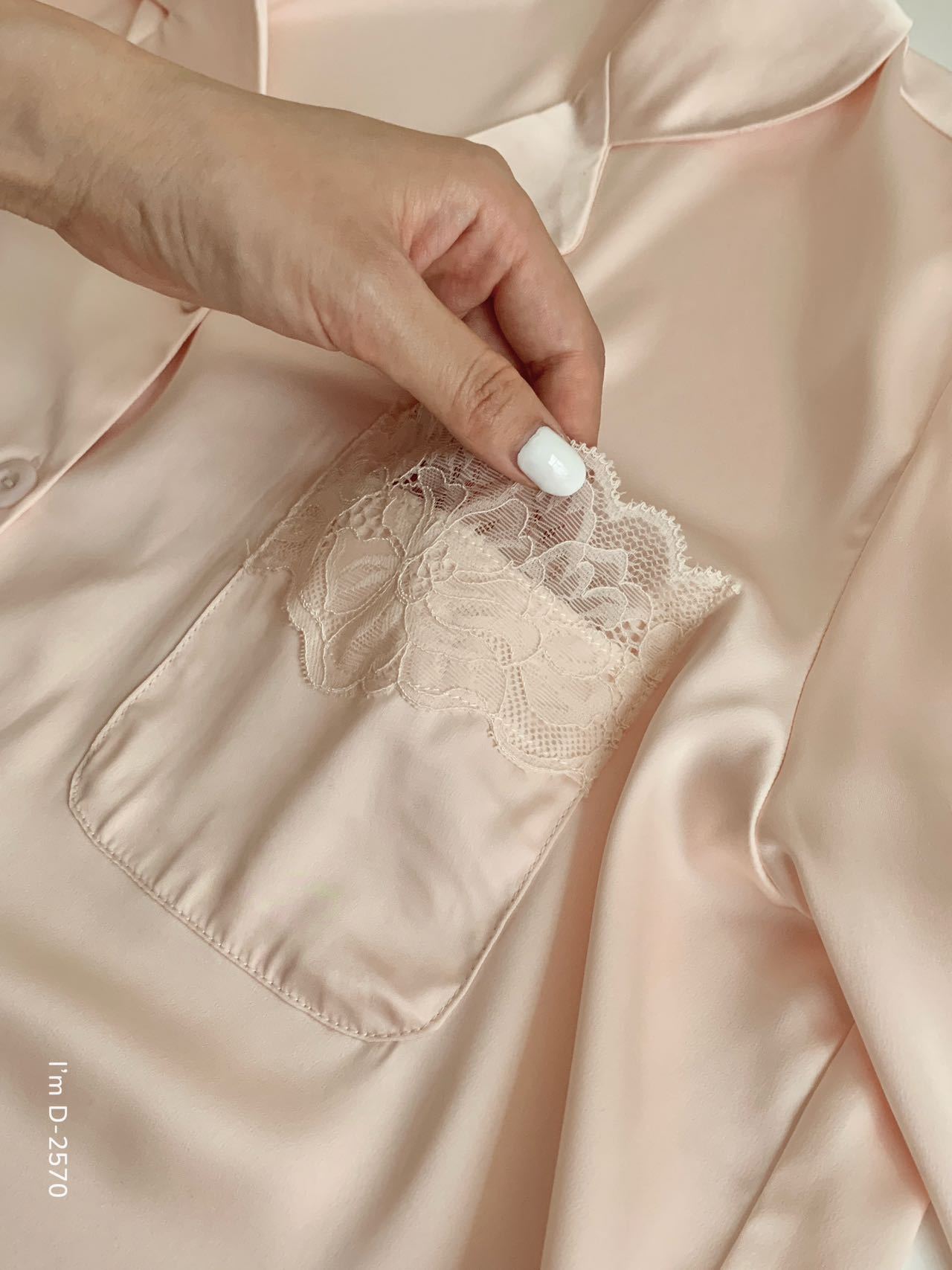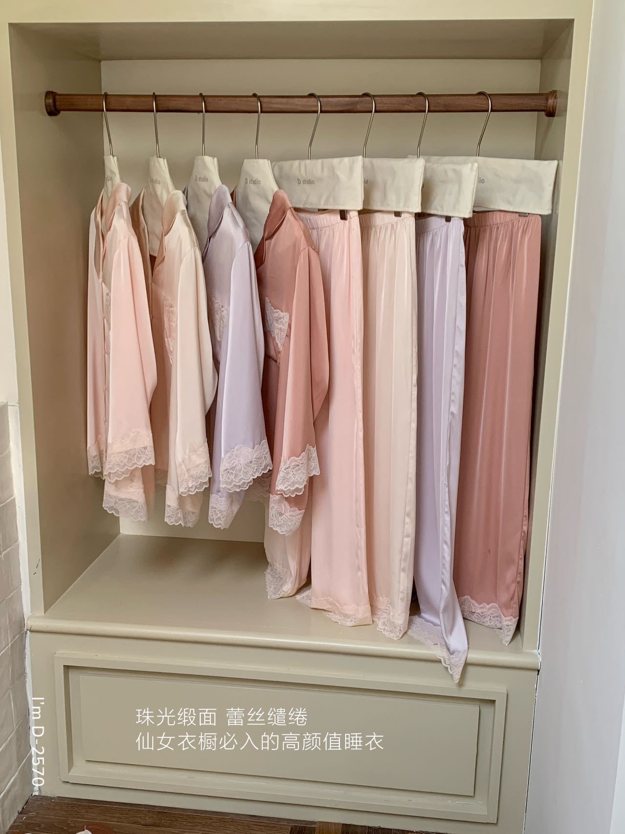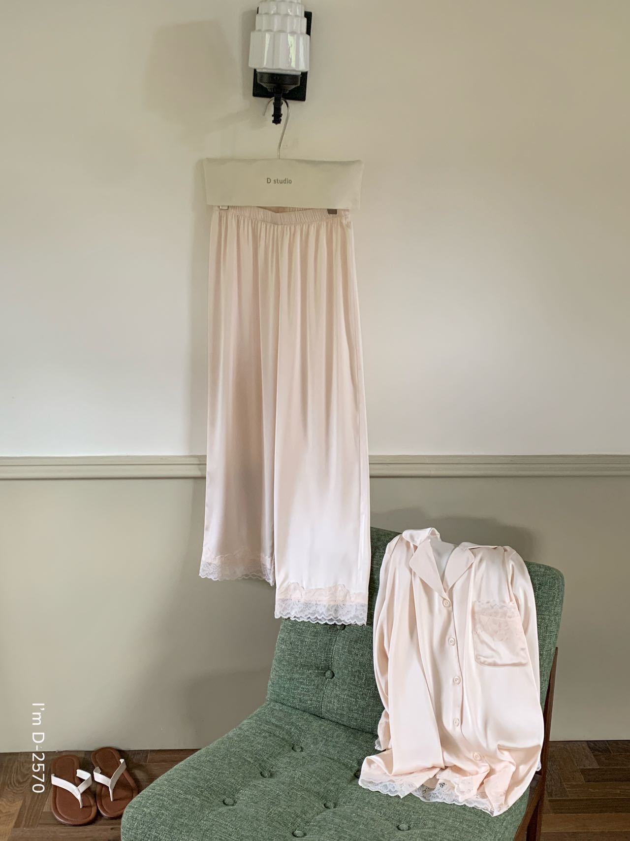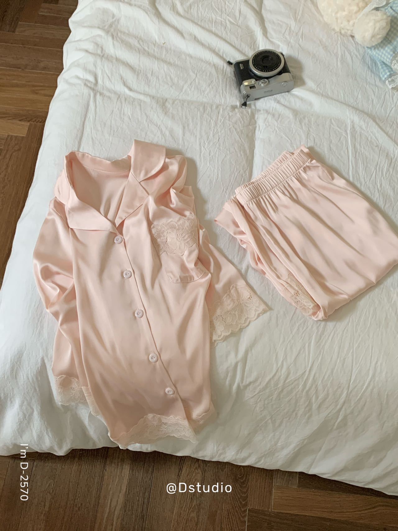 【柔滑垂顺舒适美貌 】2025新款微醺蕾丝仿真丝触感素颜衣长袖翻领家居服休闲两件套