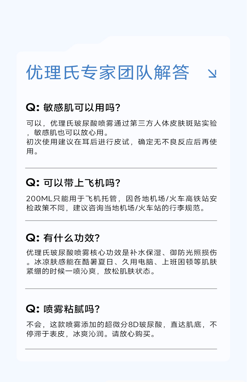 【保湿补水】优理氏玻尿酸补水喷雾舒缓爽肤水化妆水保湿二元雾化喷雾