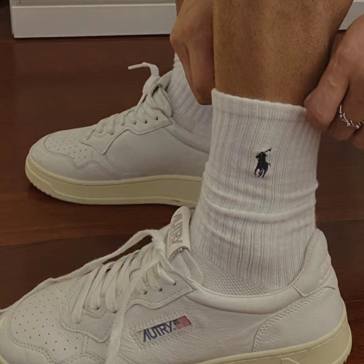 一卡三双!拉夫劳伦Polo Ralph男女同款经典刺绣中袜