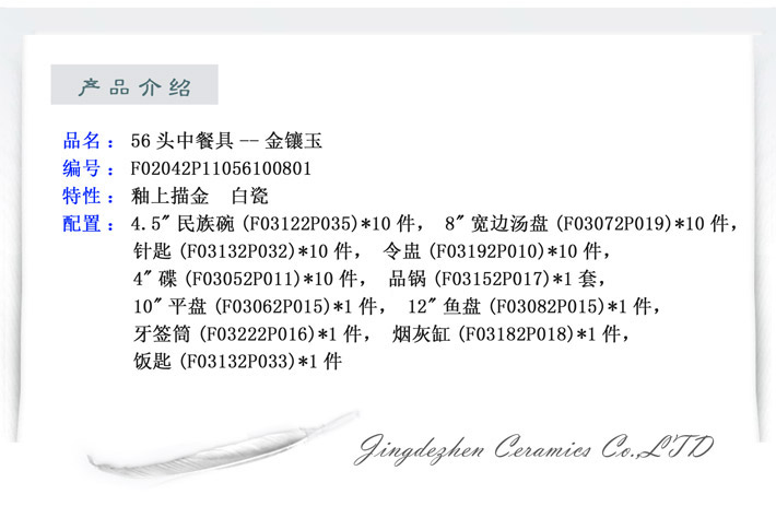 景德镇 陶瓷 国瓷红叶 56头中餐具-金镶玉