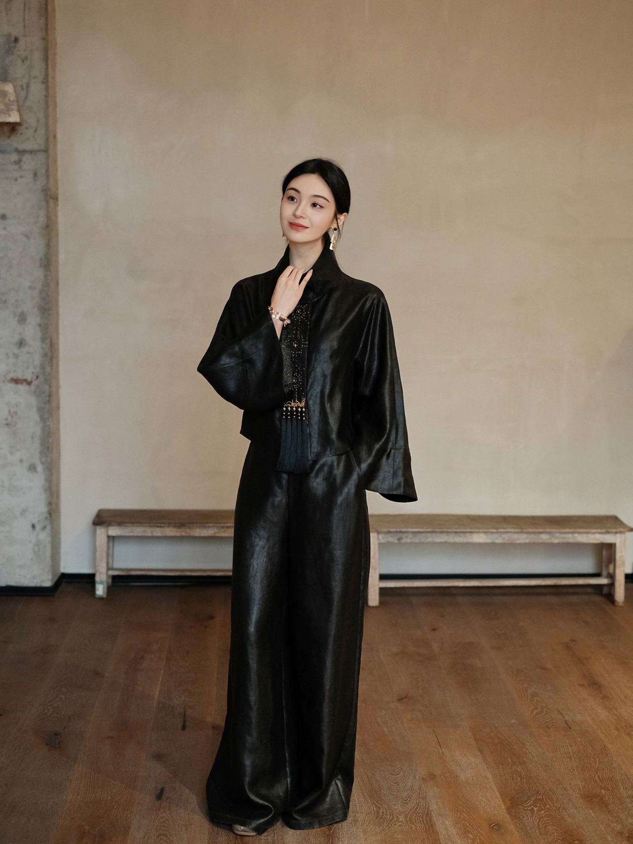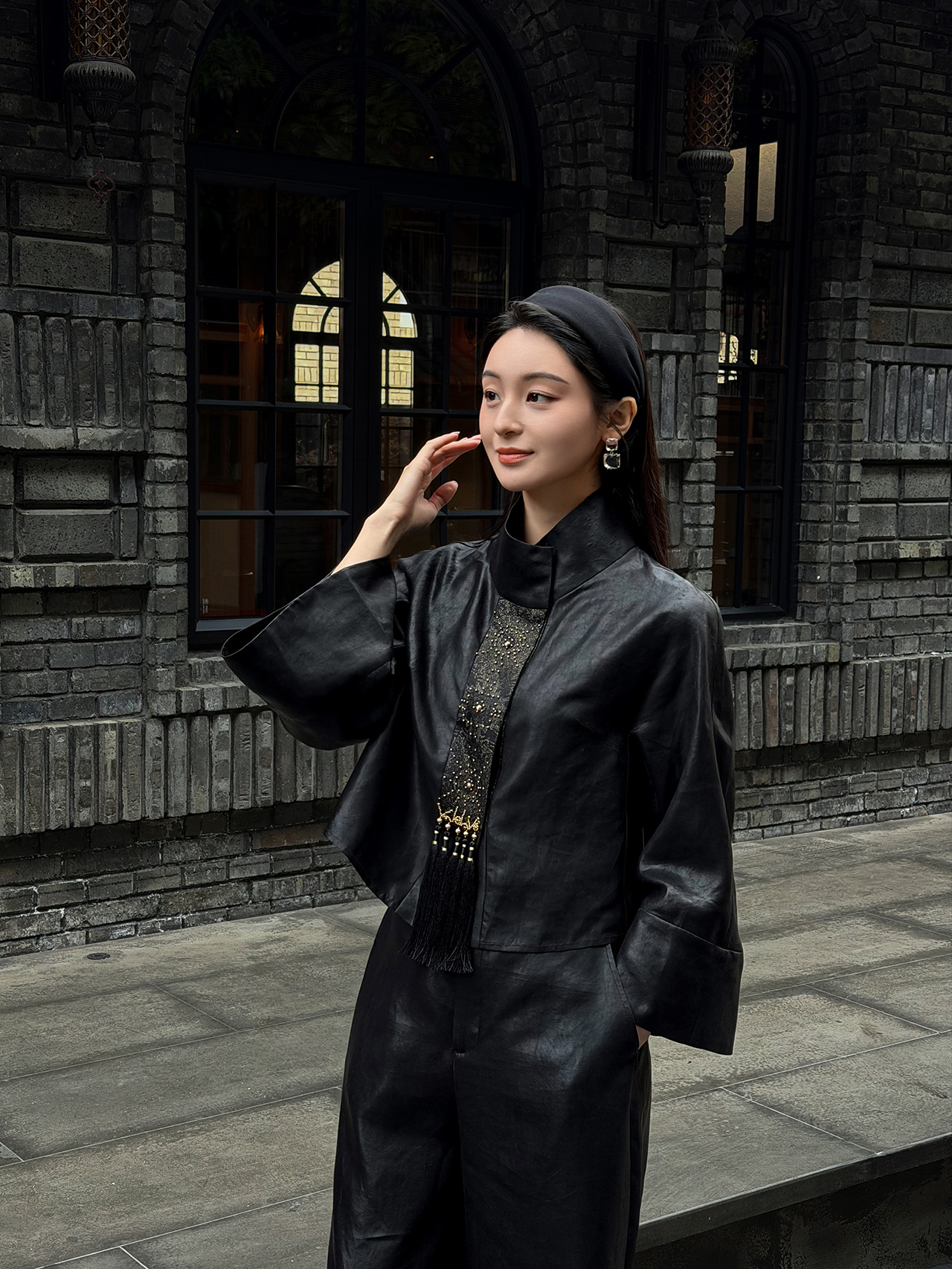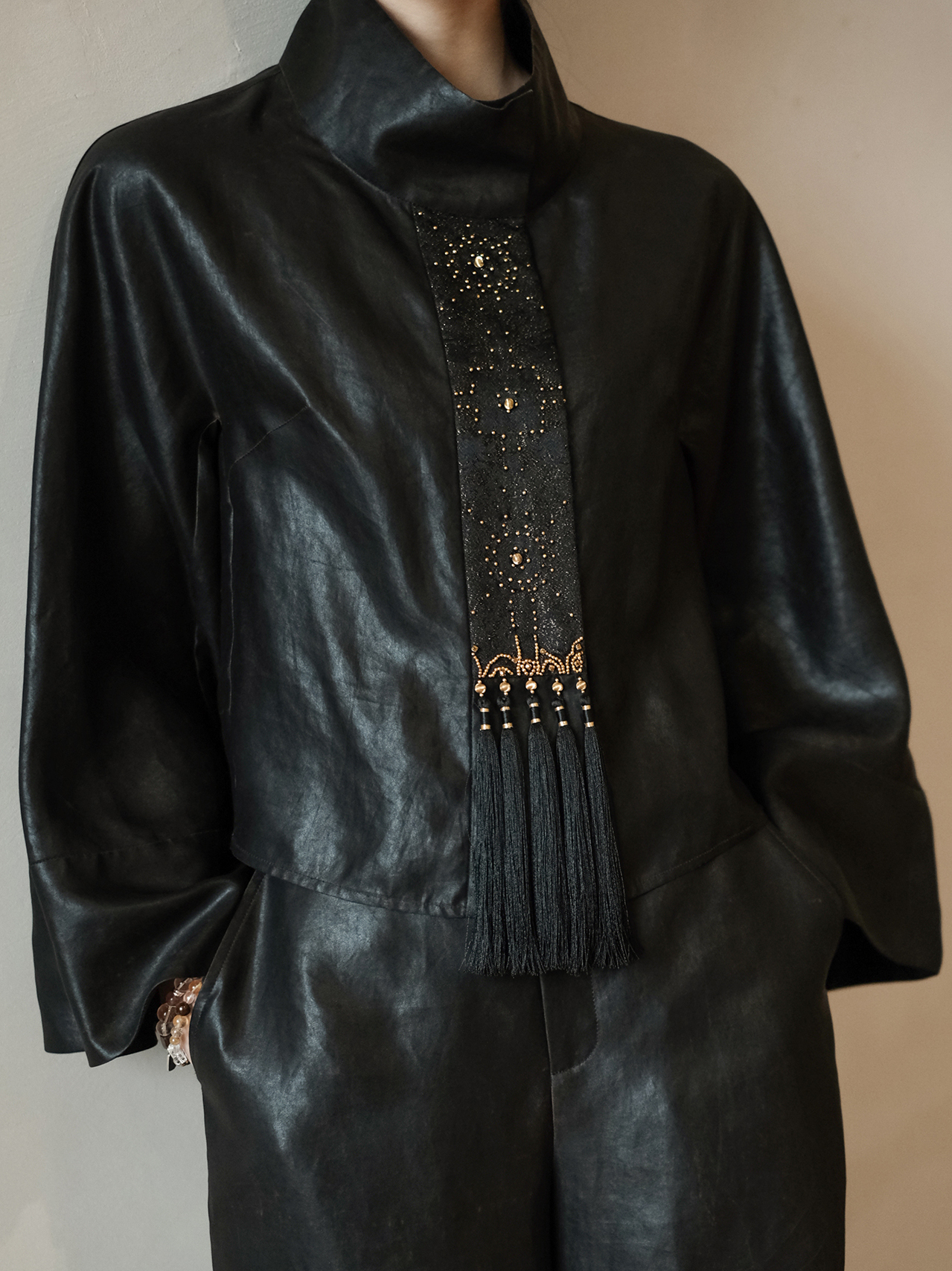 盛唐婧 | 本色行云重磅真丝香云纱立领钉珠小外套