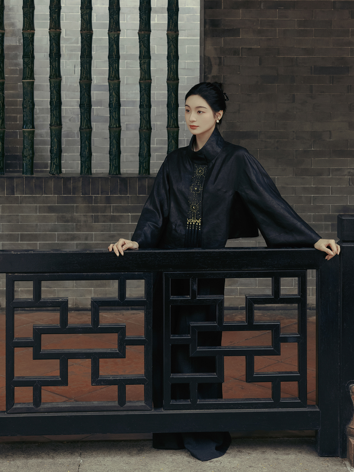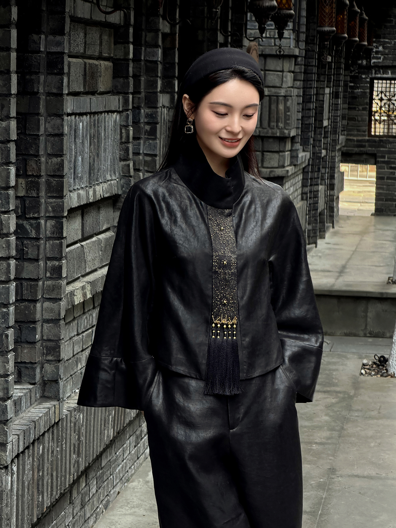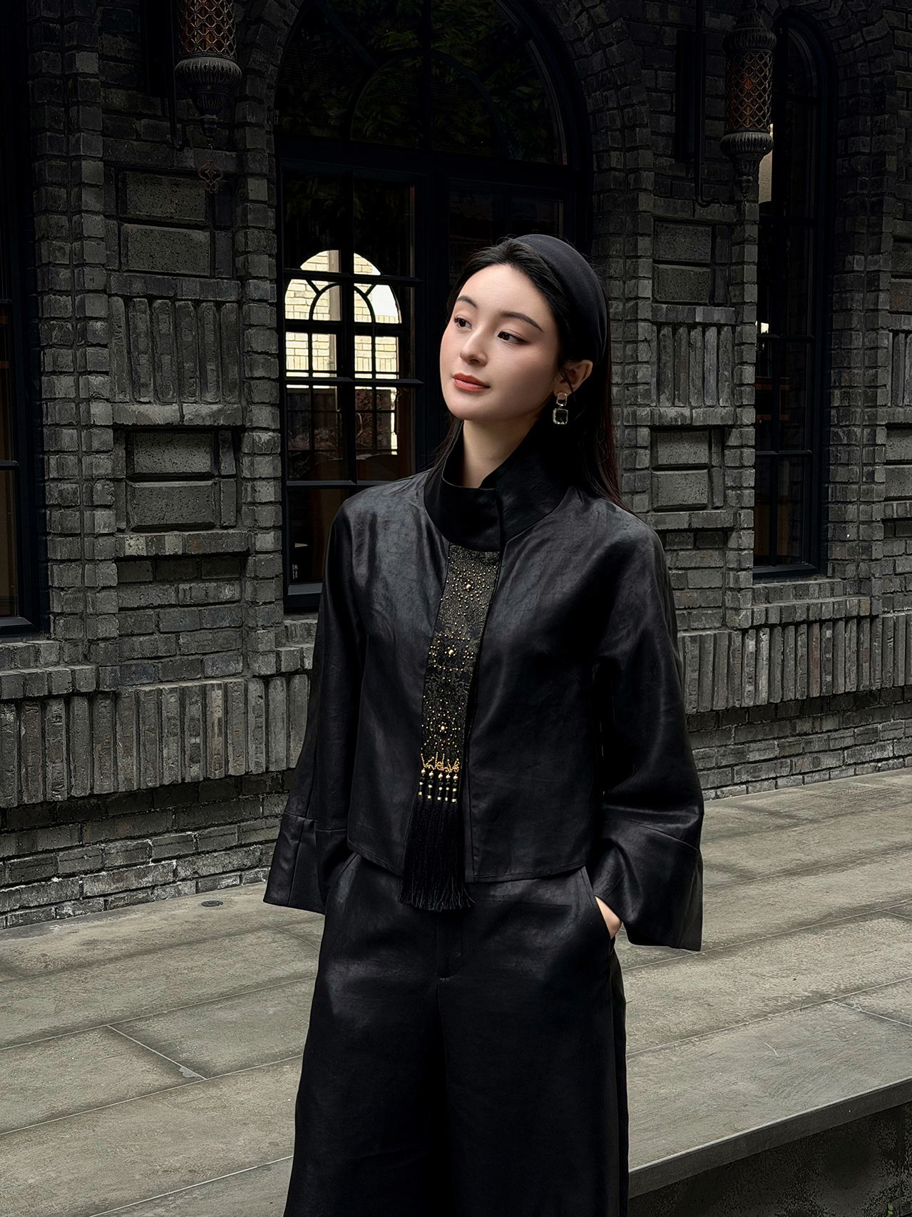 盛唐婧 | 本色行云重磅真丝香云纱立领钉珠小外套