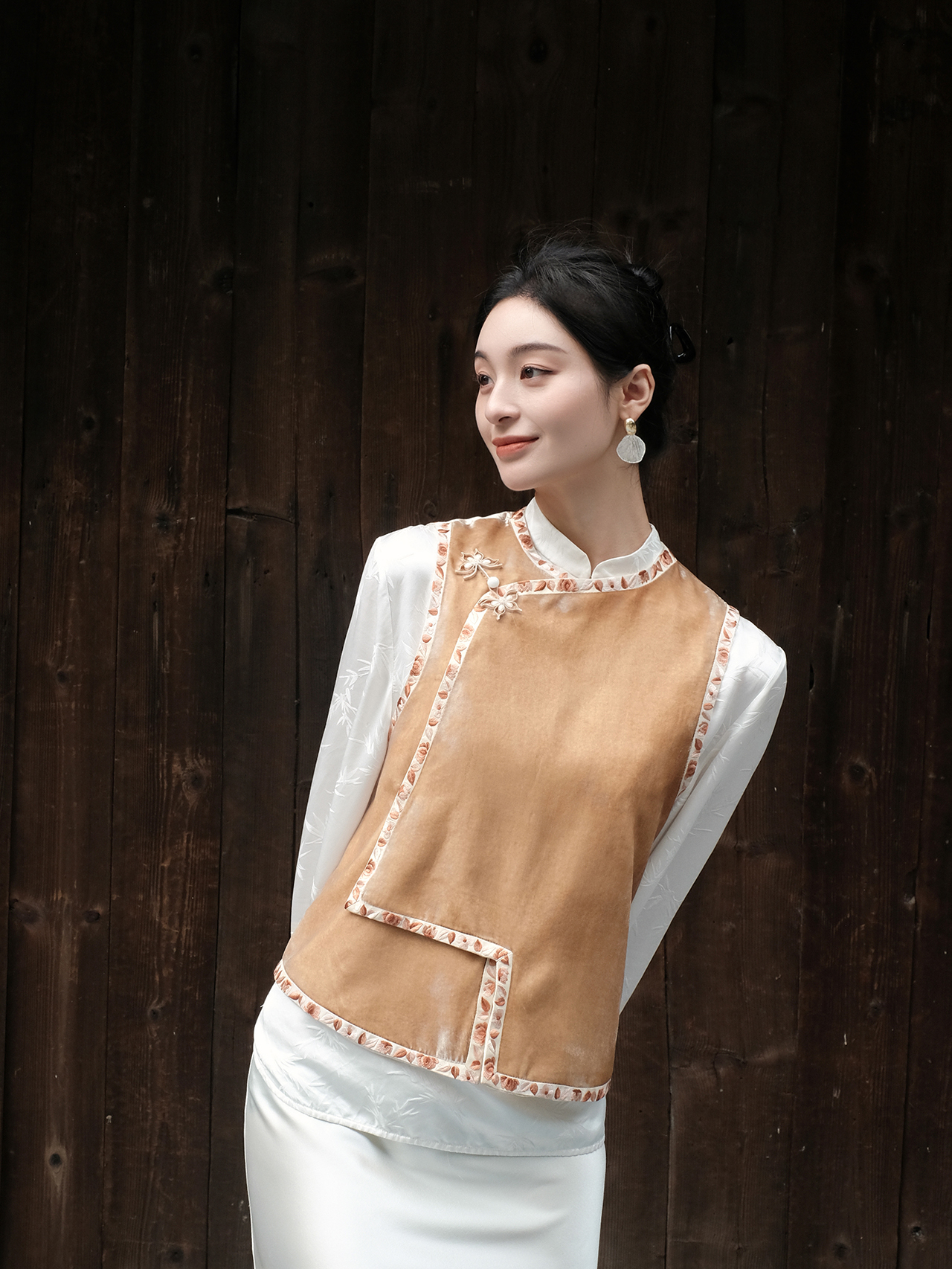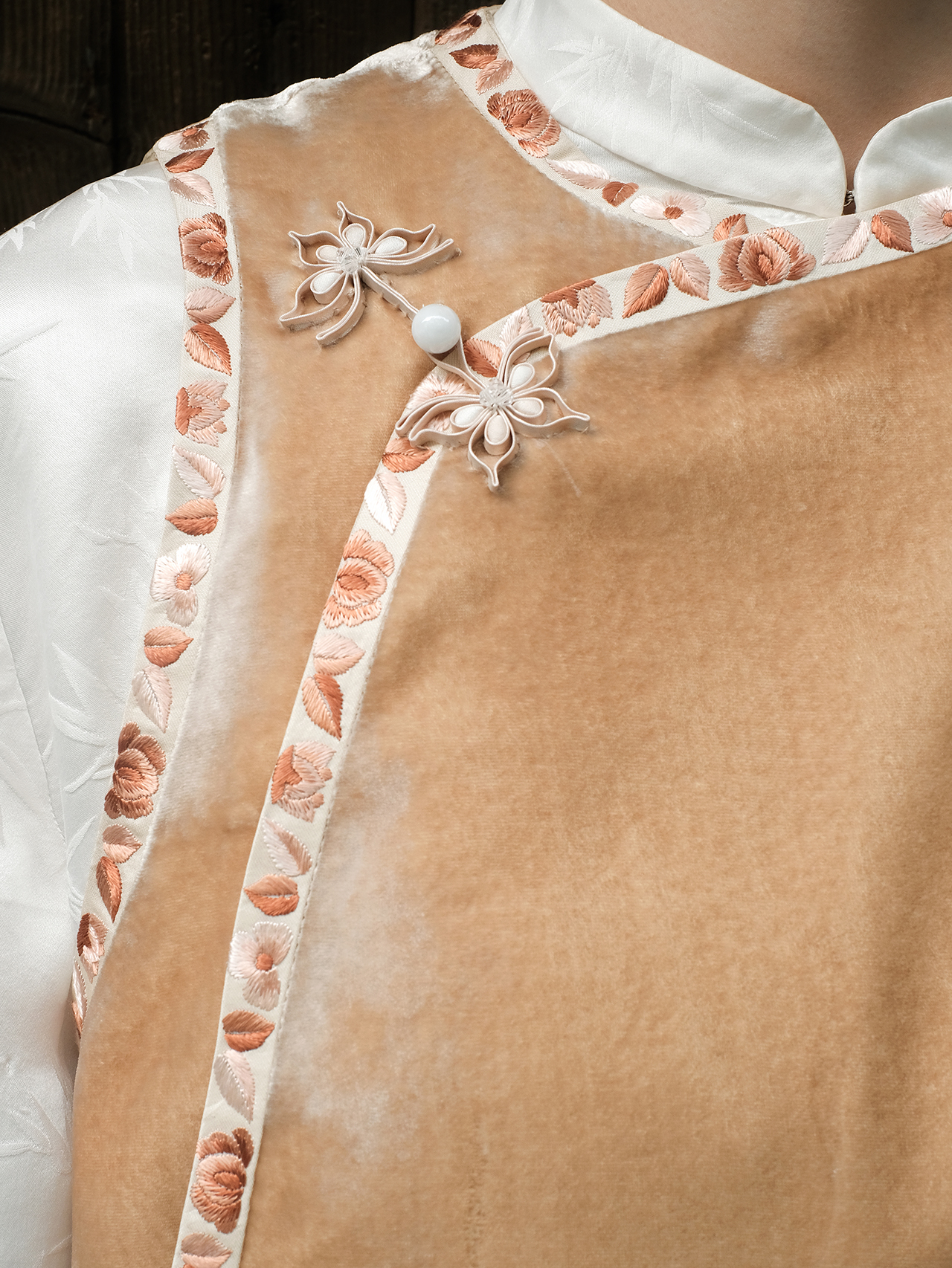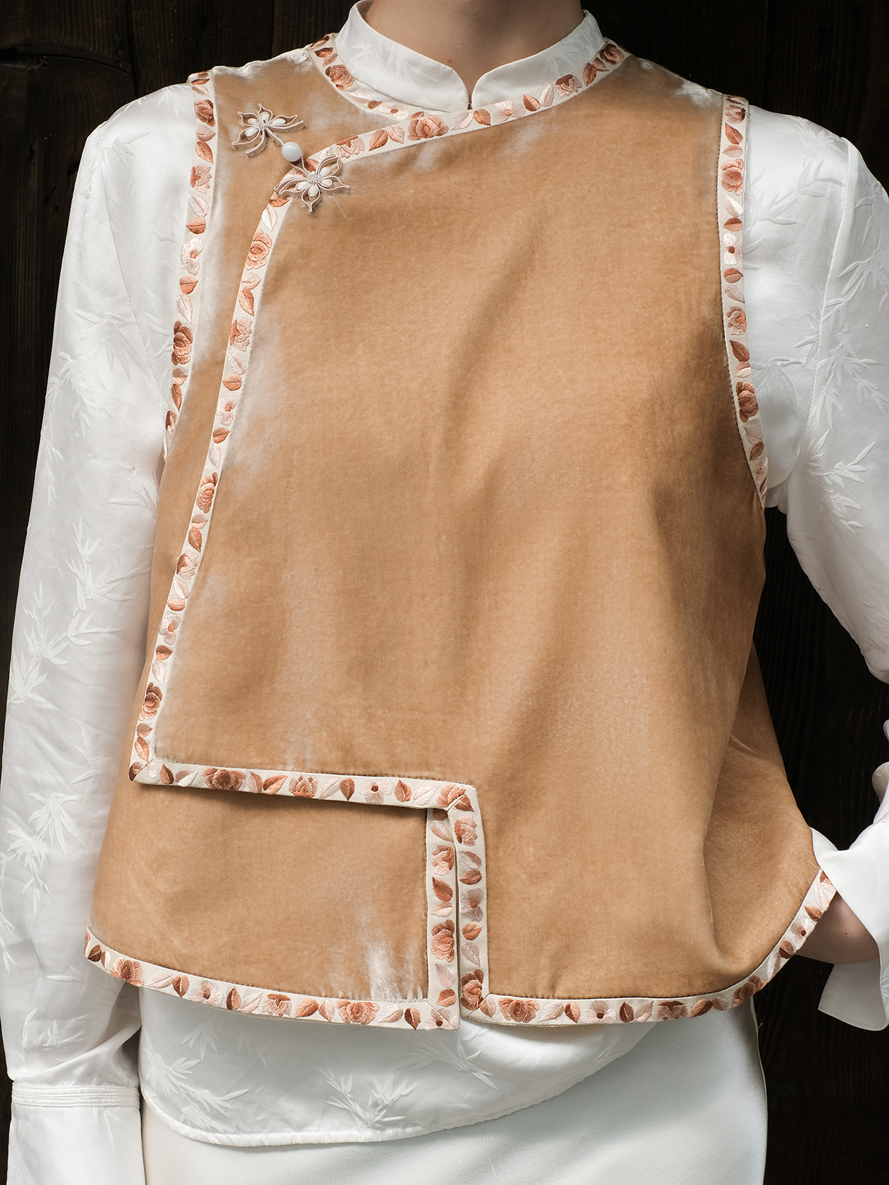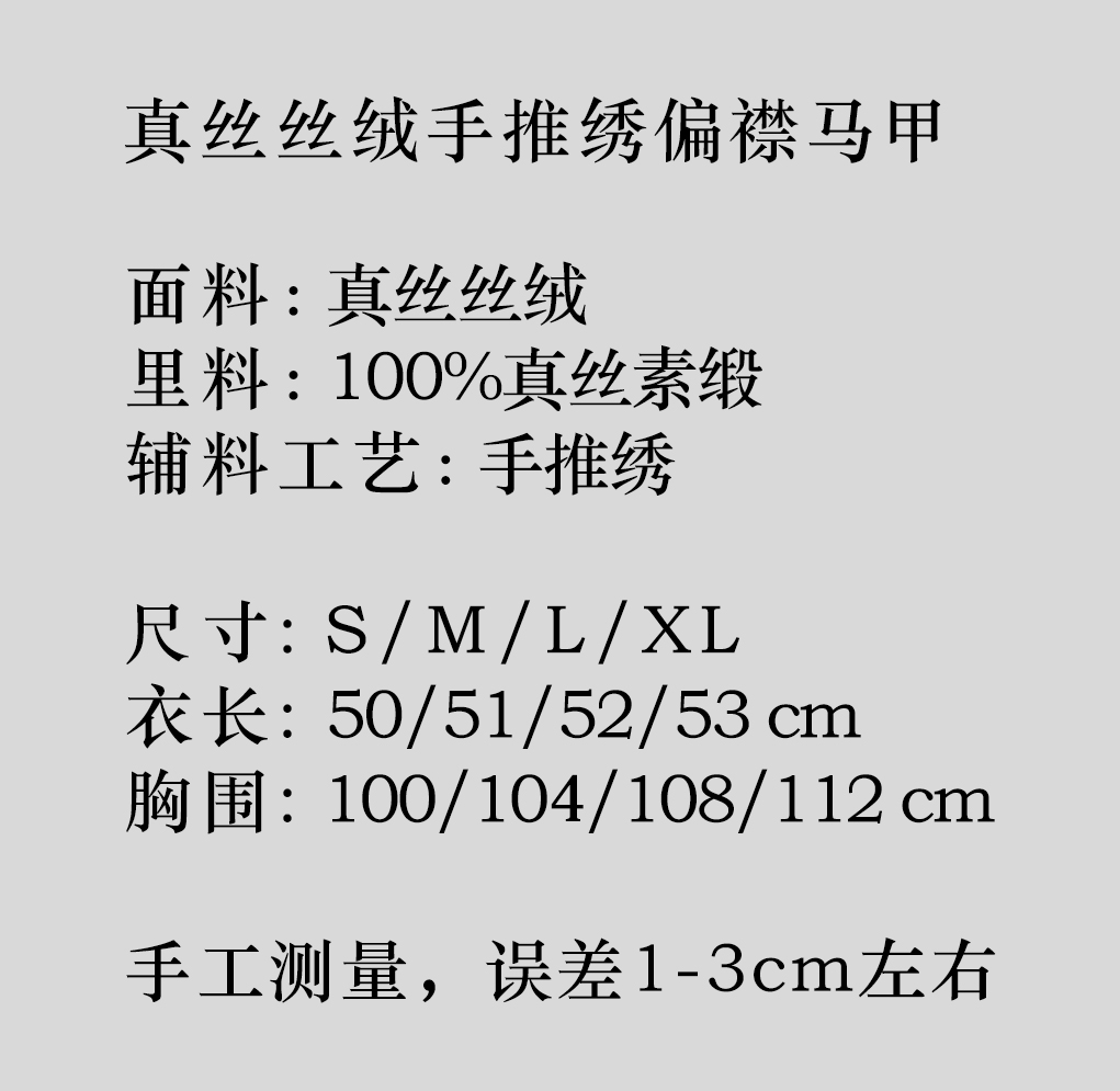 盛唐牡丹盛奢系列| 真丝丝绒手推绣偏襟马甲