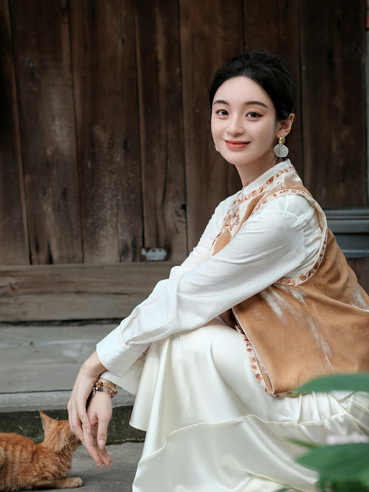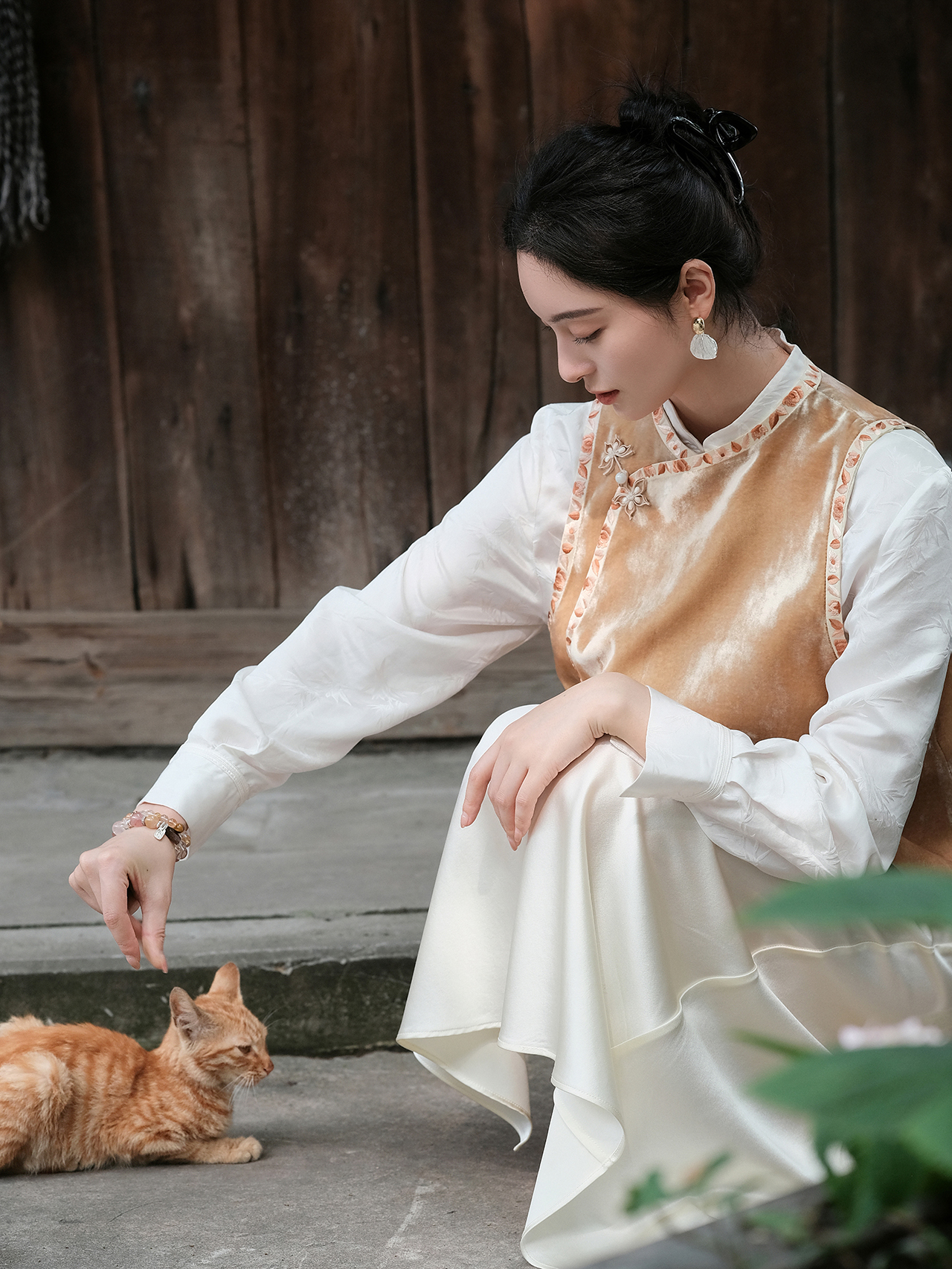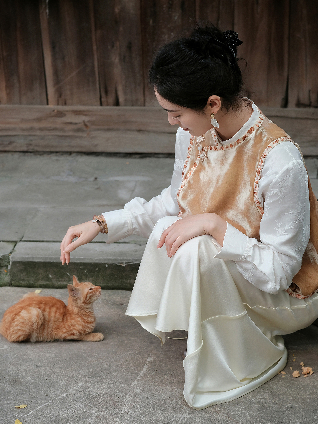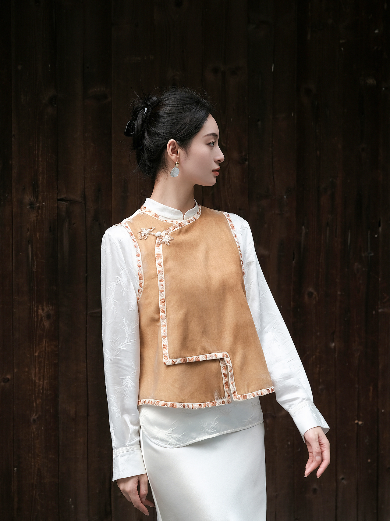 盛唐牡丹盛奢系列| 真丝丝绒手推绣偏襟马甲