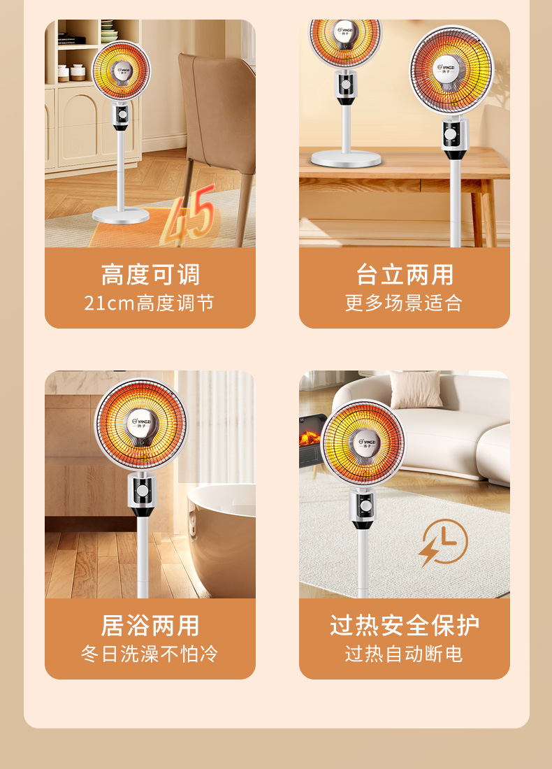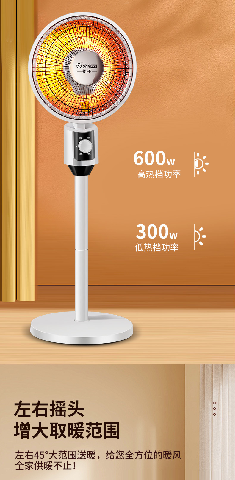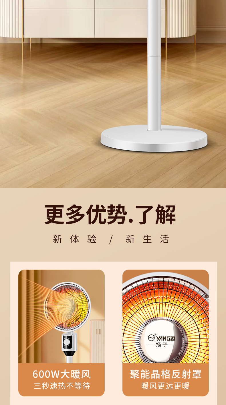【澎湃暖风❗️扬子立式取暖器】整屋升温 即开即热 晶格聚能防护网罩 舒适柔光 安全耐用 速热电暖气家用小太阳电热扇落地式电暖扇