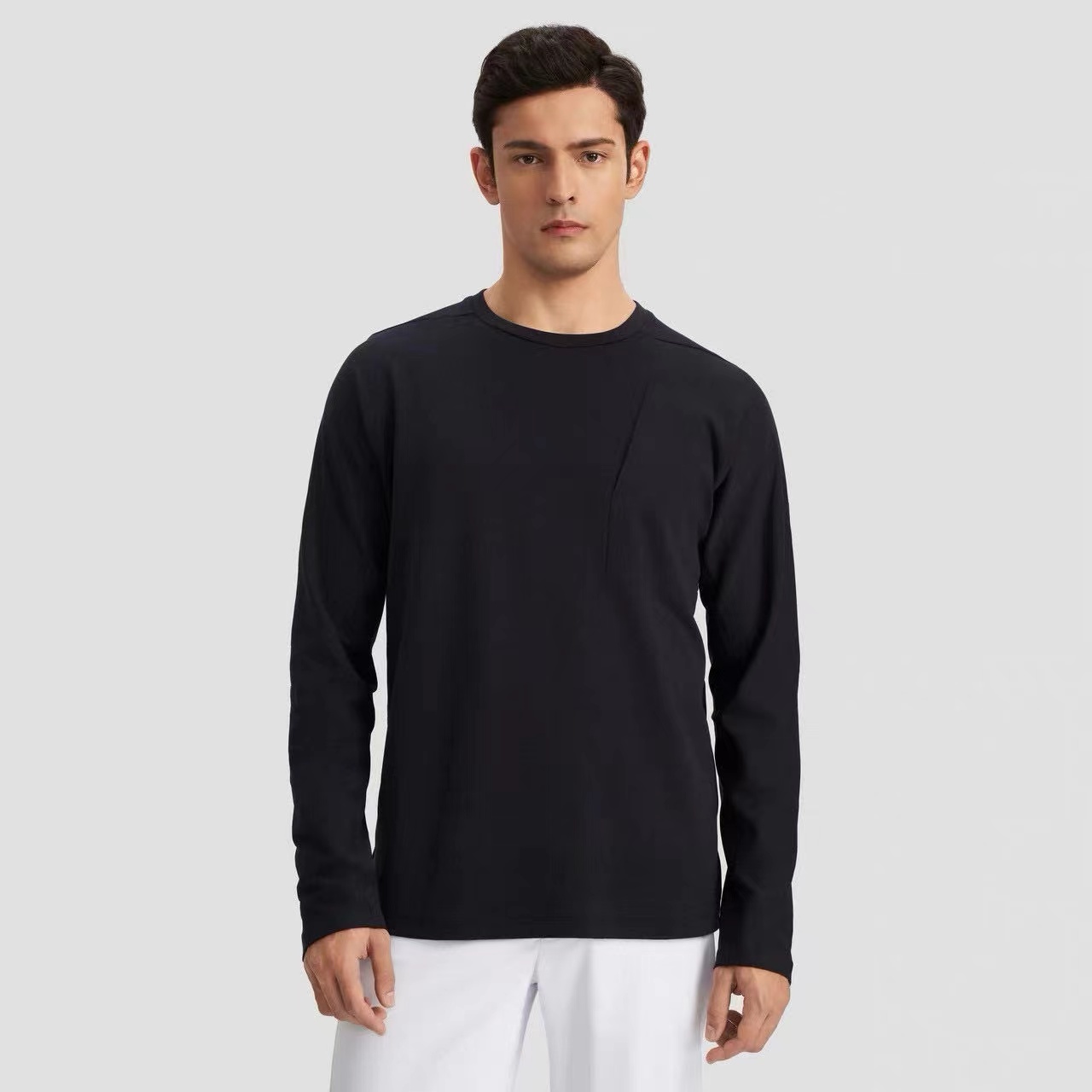 春季DUALIS系列都市通勤男士长袖内搭冬季 圆领内部采用隐藏式包边工艺,加强领口结构,经易过多洗变形,兼顾耐用性与贴肤舒适度。潮流型格加持,穿出运动高街范!胸前立体口袋设计,不仅实用可收纳小物,更注入机能风元素,提升整体造型层次感。袖子、下摆及后背采用立体胶浆印花,触感细腻,图案牢固不易裂纹,强力凸显专属运动身份,塑造醒目视觉焦点。面料暗藏玄机!内里布满透气微孔,促进空气内外循环,如同会呼吸一样;结合四面高弹特性,大幅度伸展也轻松无压力,活动范围更自由。精选100优质聚酯纤维,搭配先进速干科技。运动时产生的汗水能被面料迅速吸收、扩散并快速蒸发,告别闷热黏腻,时刻保持清爽干爽体感。